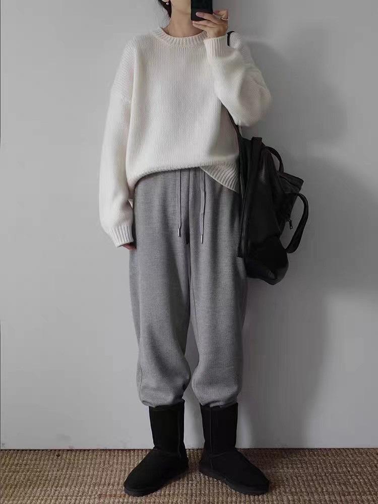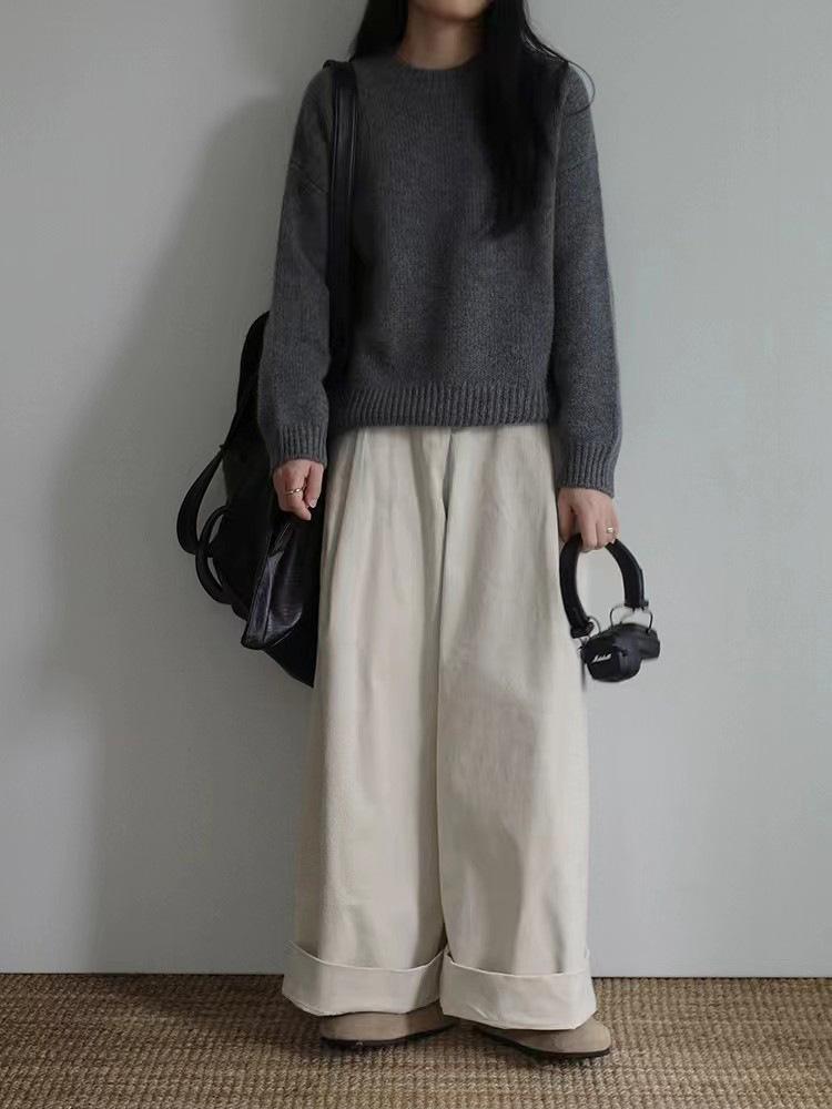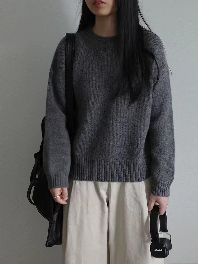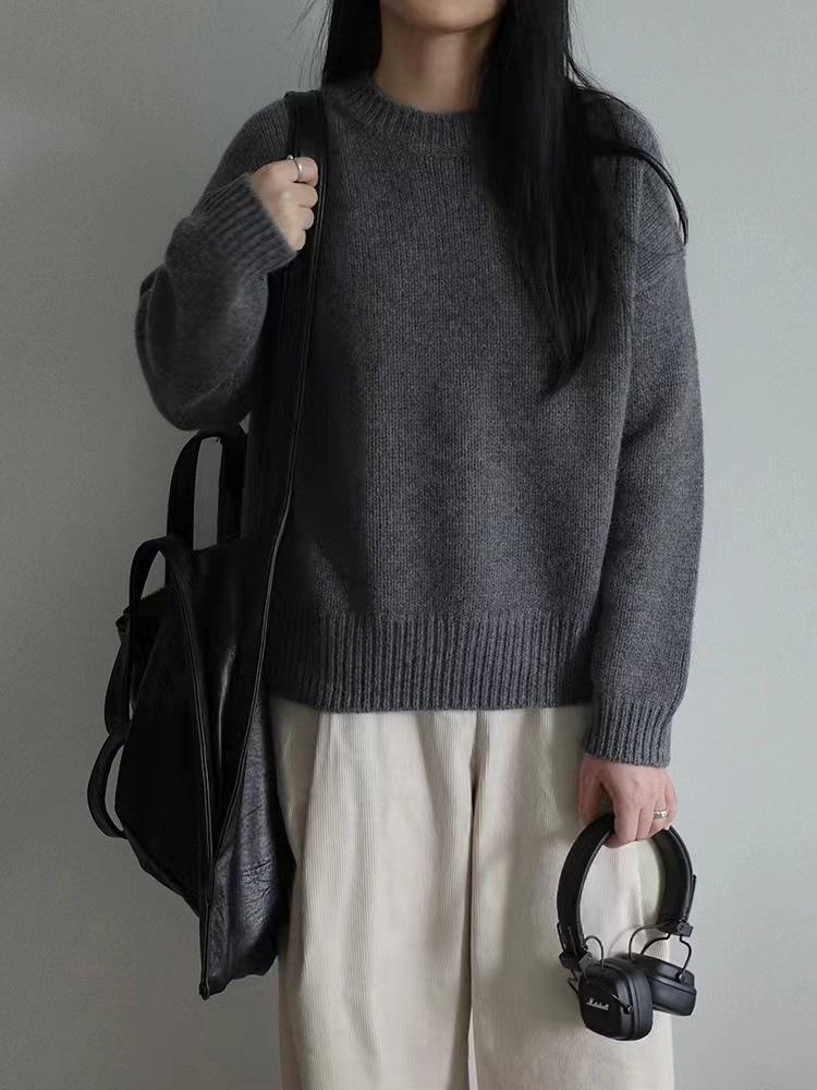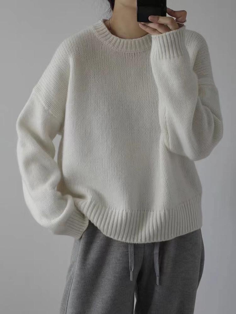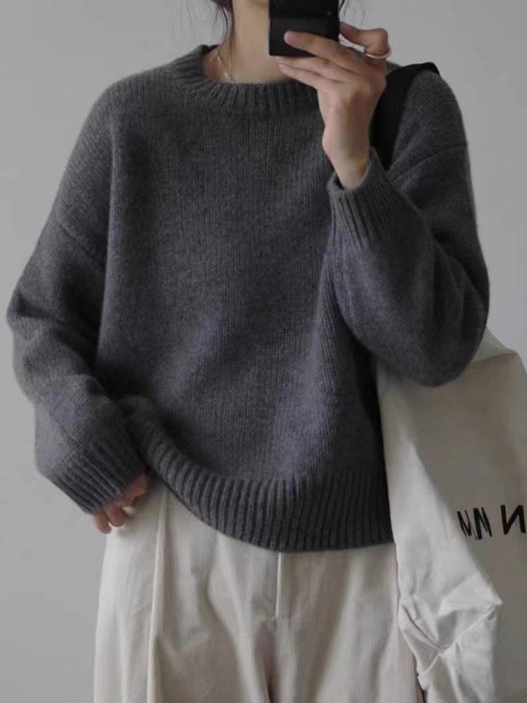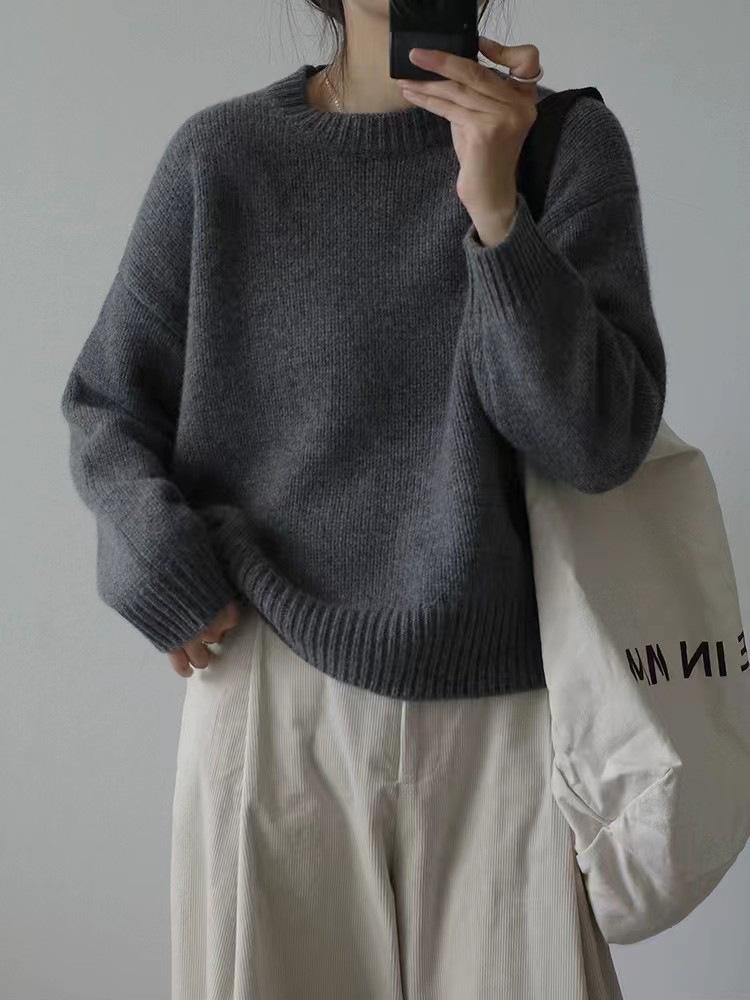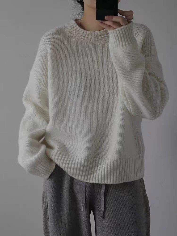Suéter de punto grueso con cuello redondo y todo combinado de estilo perezoso para mujer, otoño e invierno, jersey de alta calidad fabricado en Europa, top de manga larga a la moda