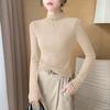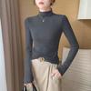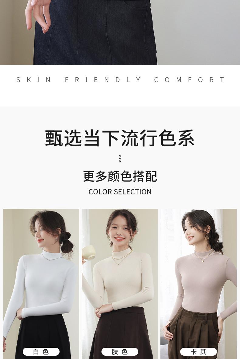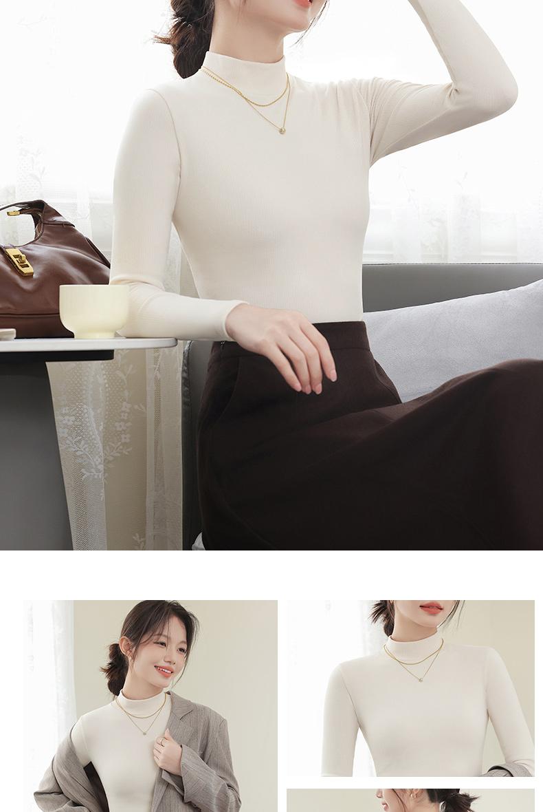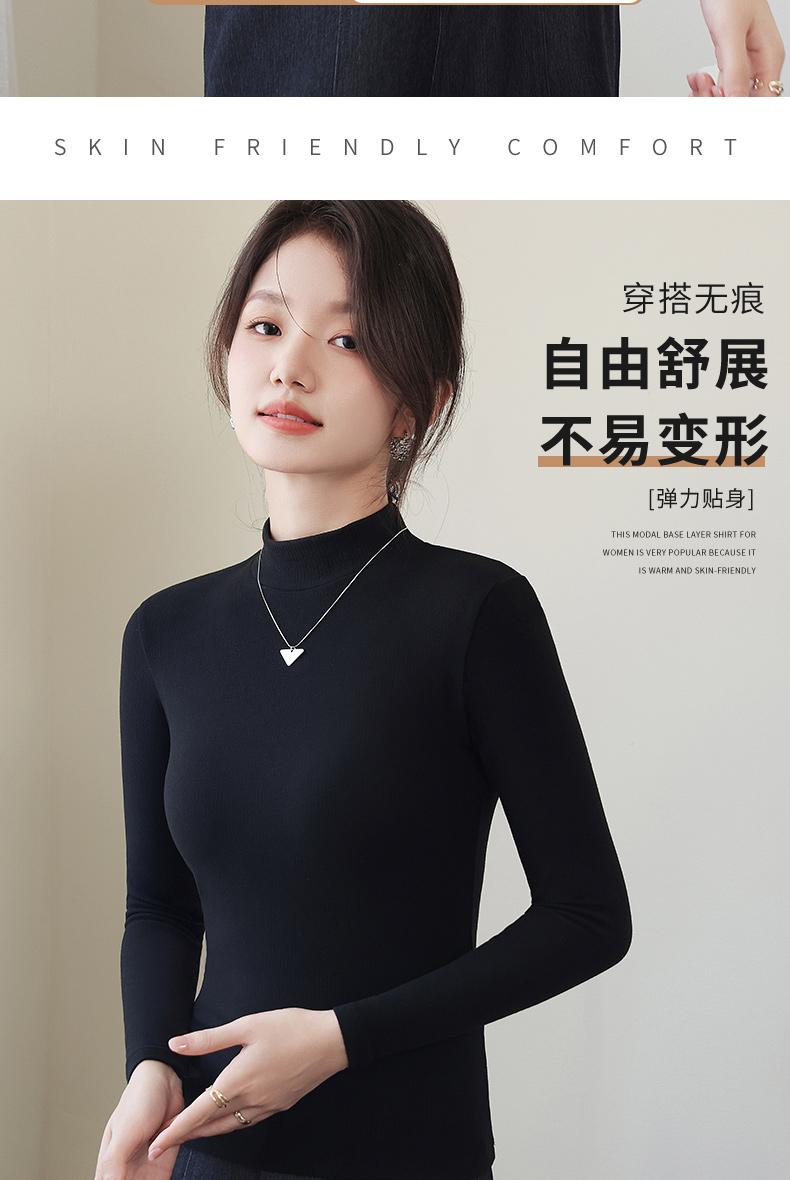 Camiseta Base de Manga Larga con Cuello Medio Alto de Felpa Hilo de Alta Elasticidad para Mujer Otoño e Invierno Talla Grande Interior Ajustado Slim Top Cálido