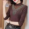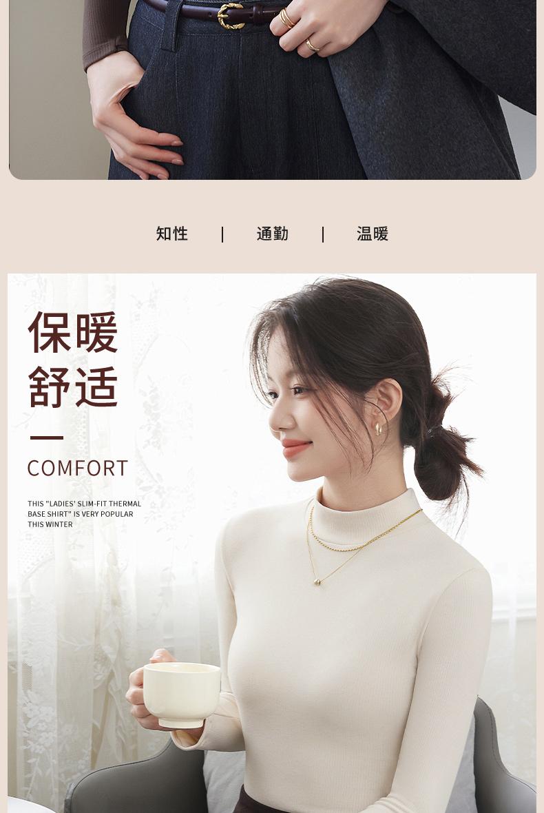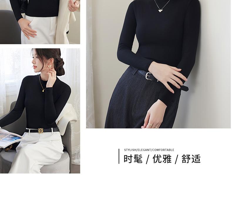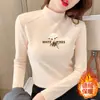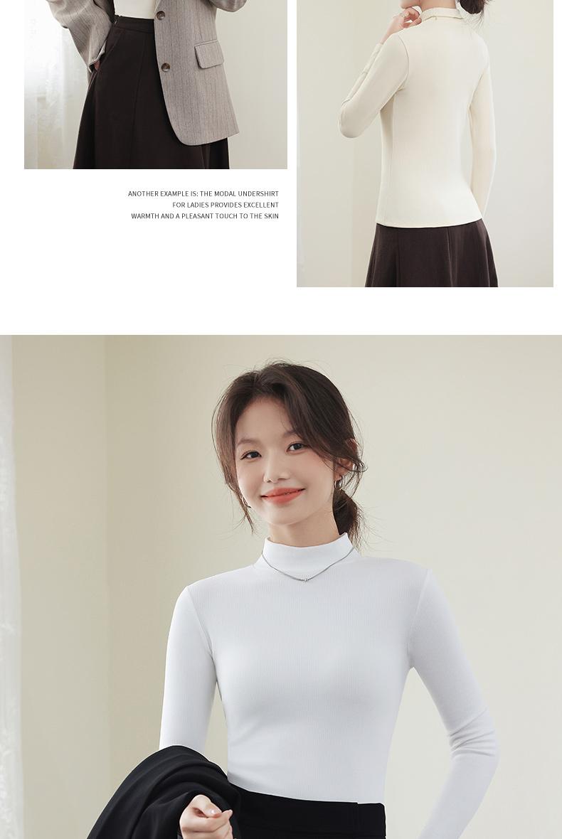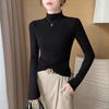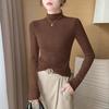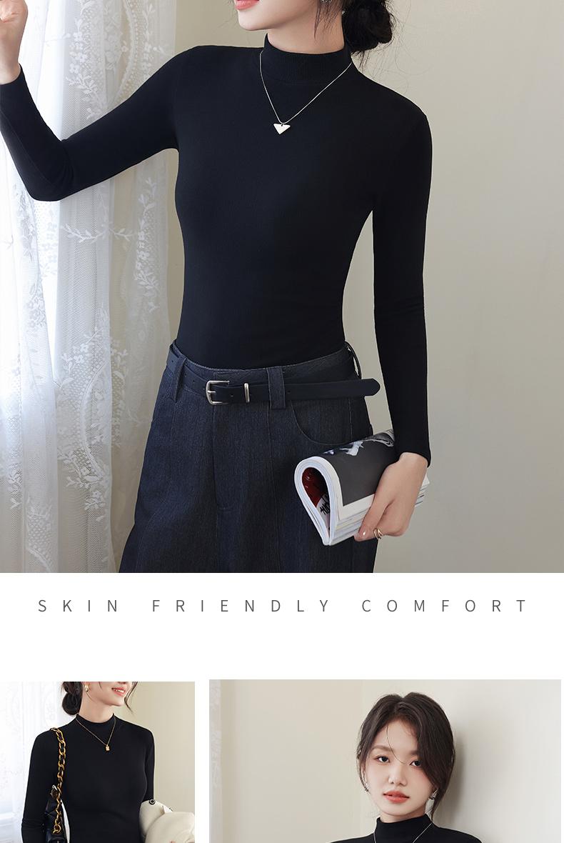 Camiseta Base de Manga Larga con Cuello Medio Alto de Felpa Hilo de Alta Elasticidad para Mujer Otoño e Invierno Talla Grande Interior Ajustado Slim Top Cálido
