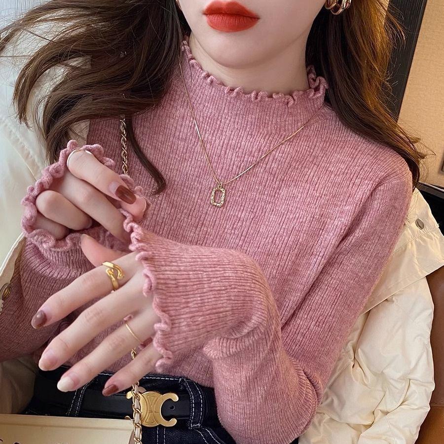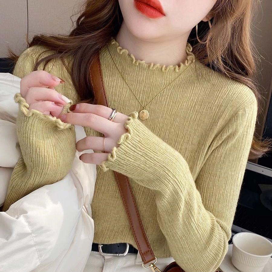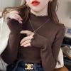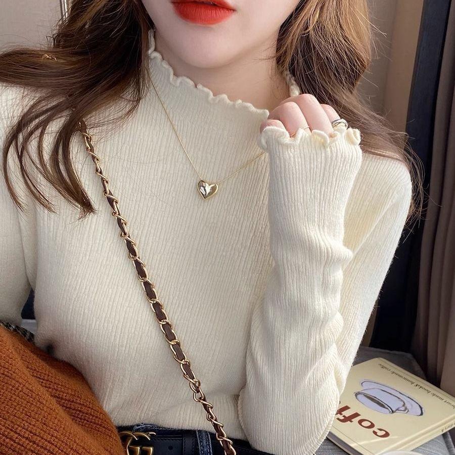 Suéter Ropa de Mujer Otoño e Invierno 2024 Nuevo Cuello Alto Medio Parte Inferior Camisa de Punto Diseño de Interiores Nicho Principios de Otoño Top