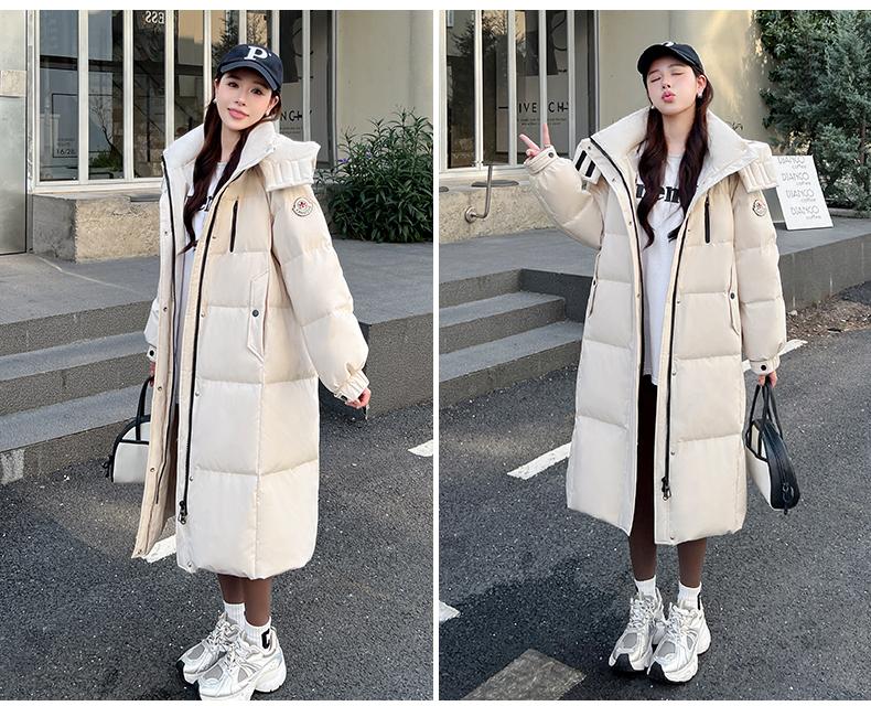 Chaqueta de plumón de pato para mujer 2024 Invierno Nuevo Largo medio Moda Más fácil de combinar Con capucha Cálida 90 Plumón de pato Chaqueta gruesa