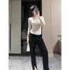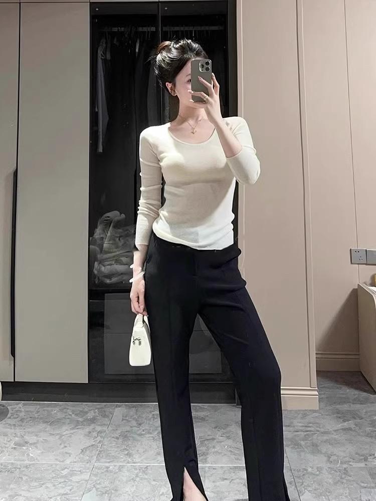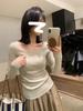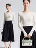 Suéter de cachemira de alta gama para mujer, camisa de manga larga, color blanco, suave y encerado, para otoño e invierno