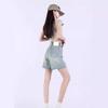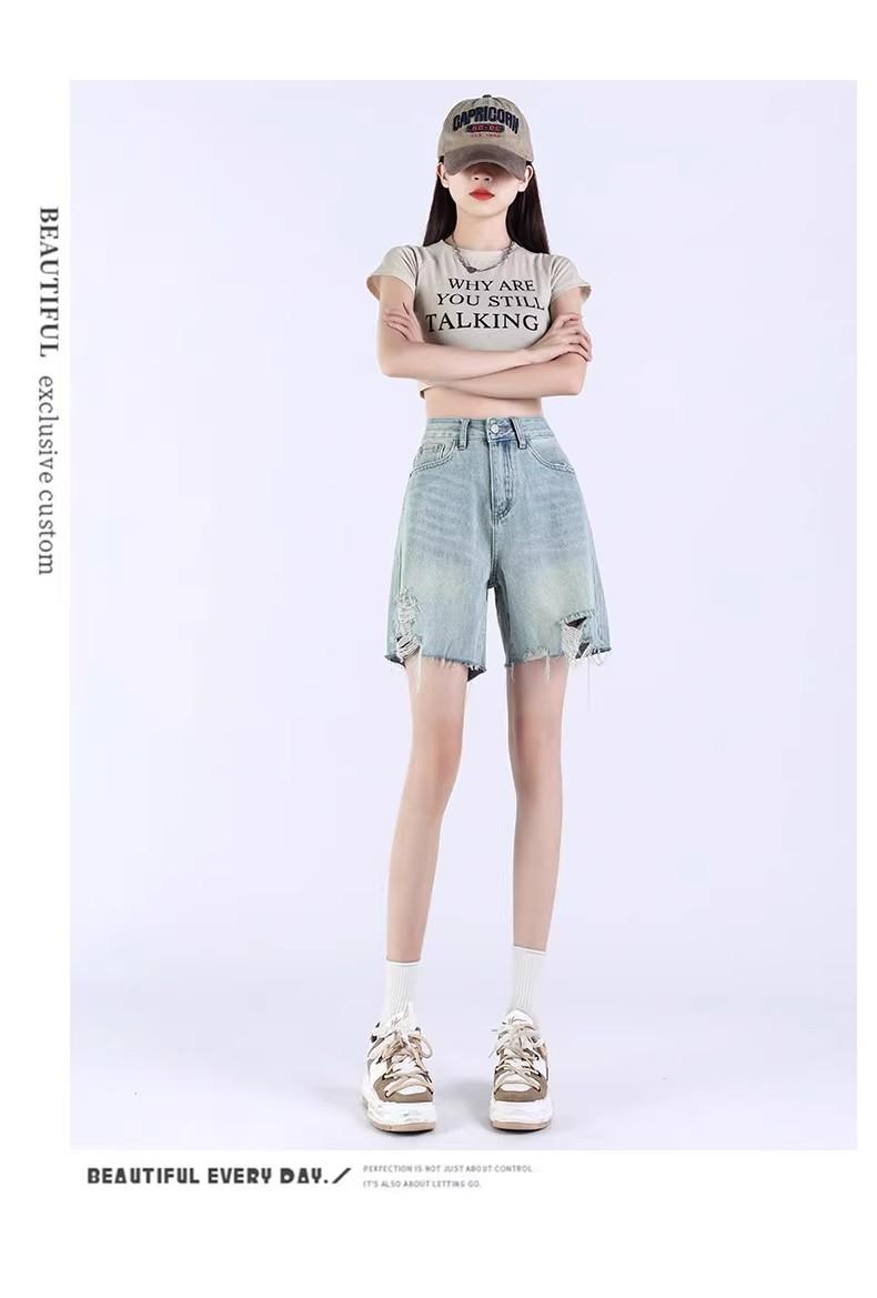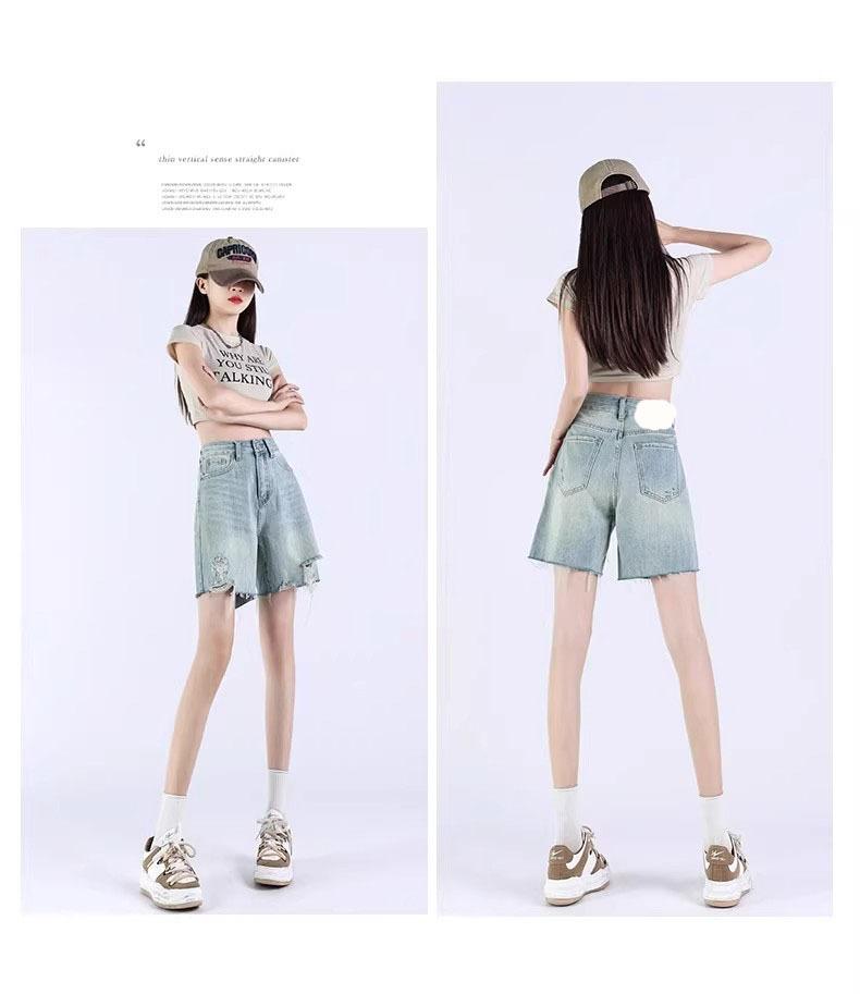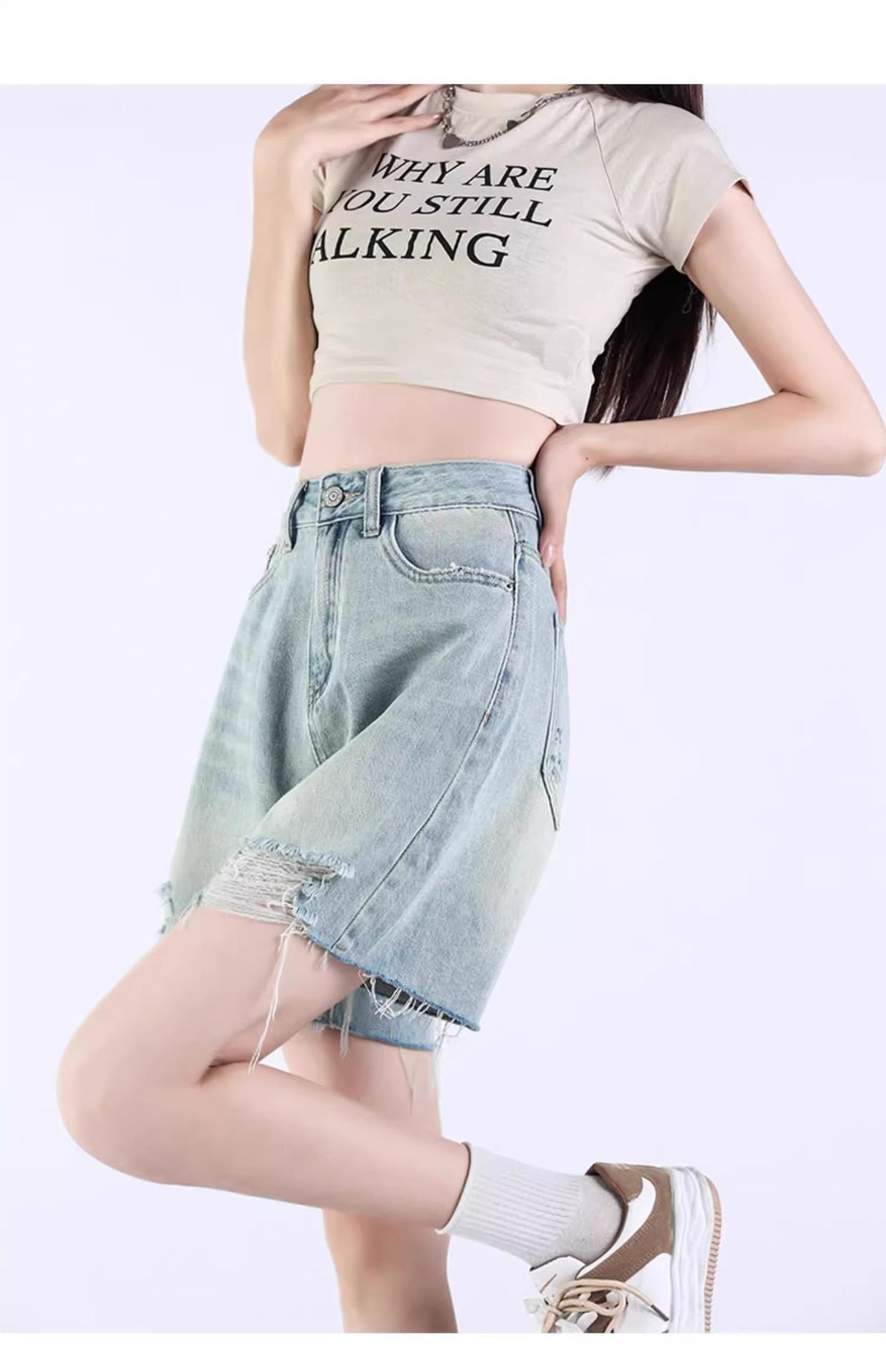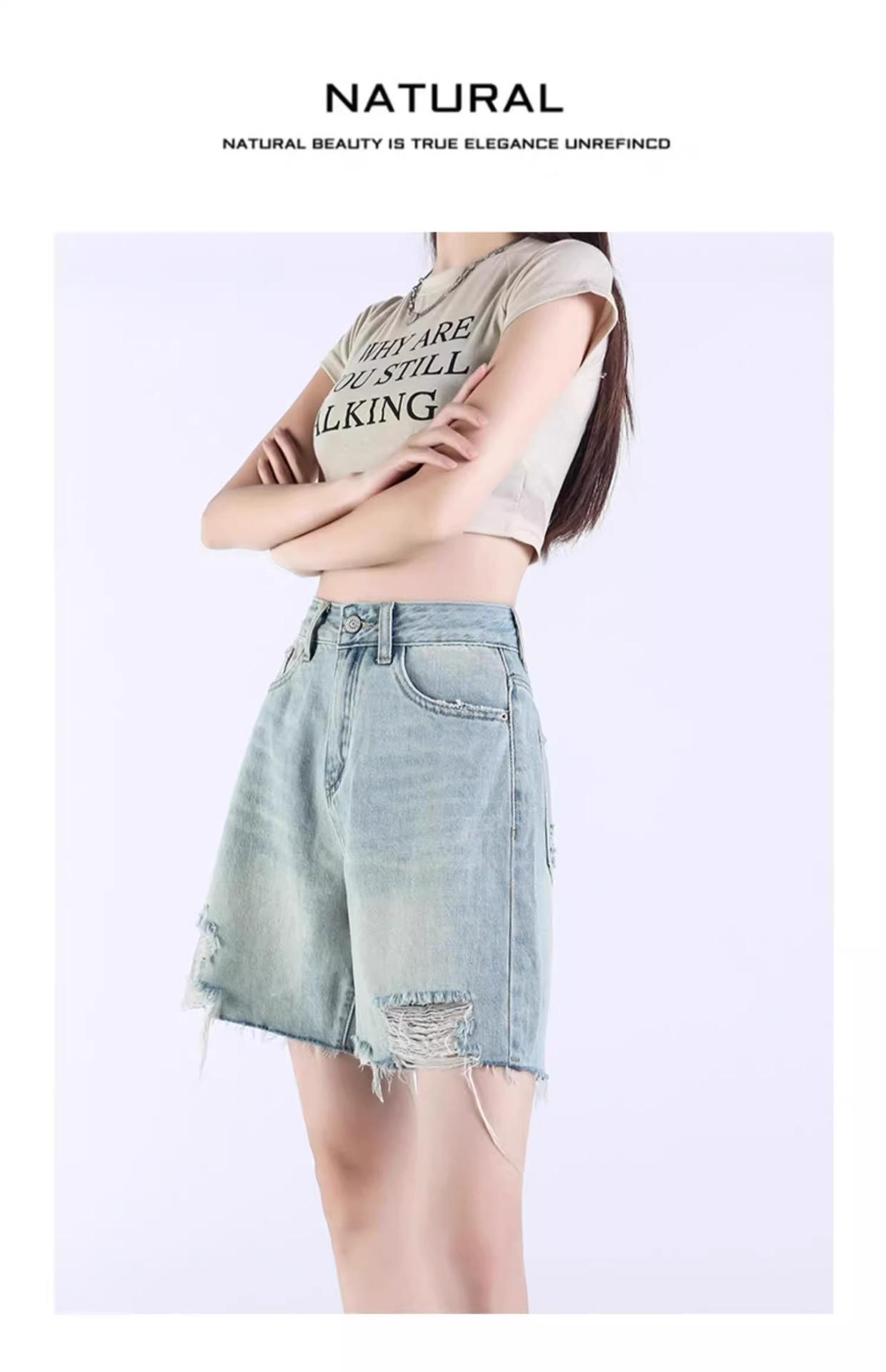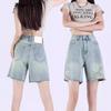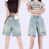 Pantalones cortos vaqueros Tencel azul claro para mujer, novedad de verano 2024, cintura alta, sueltos, adelgazantes, casuales, rectos
