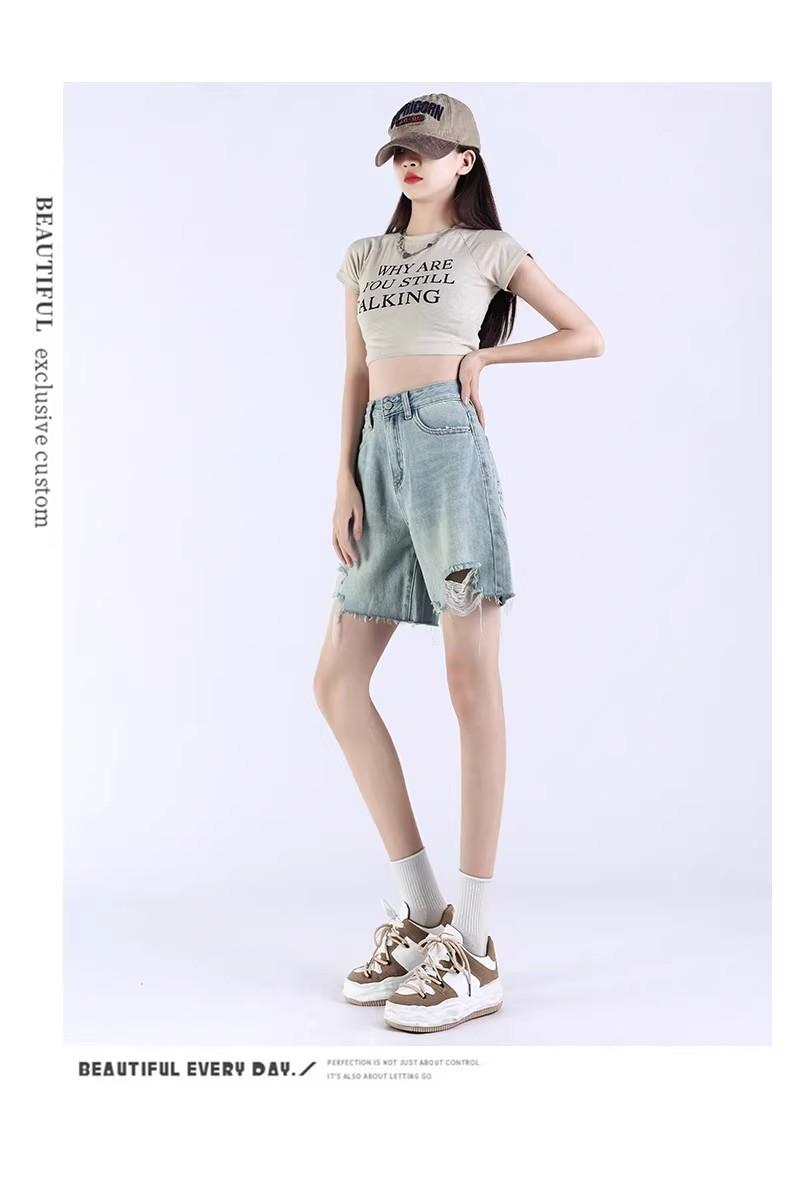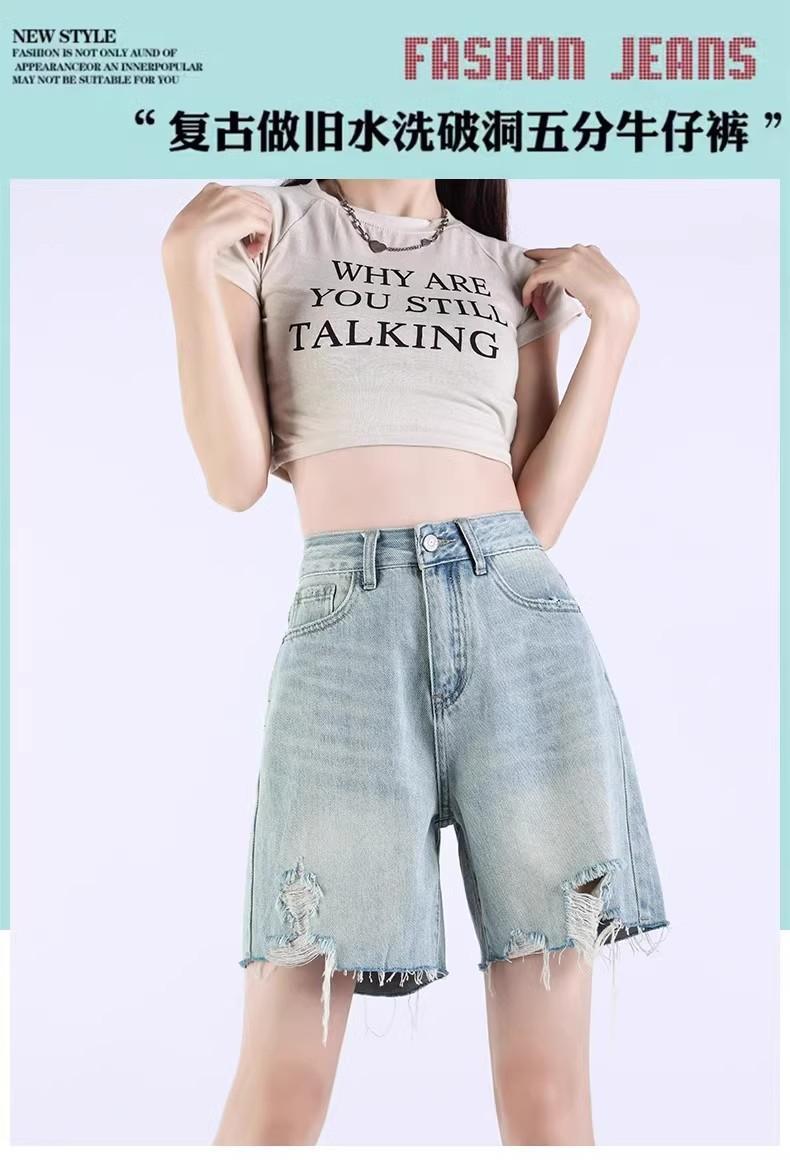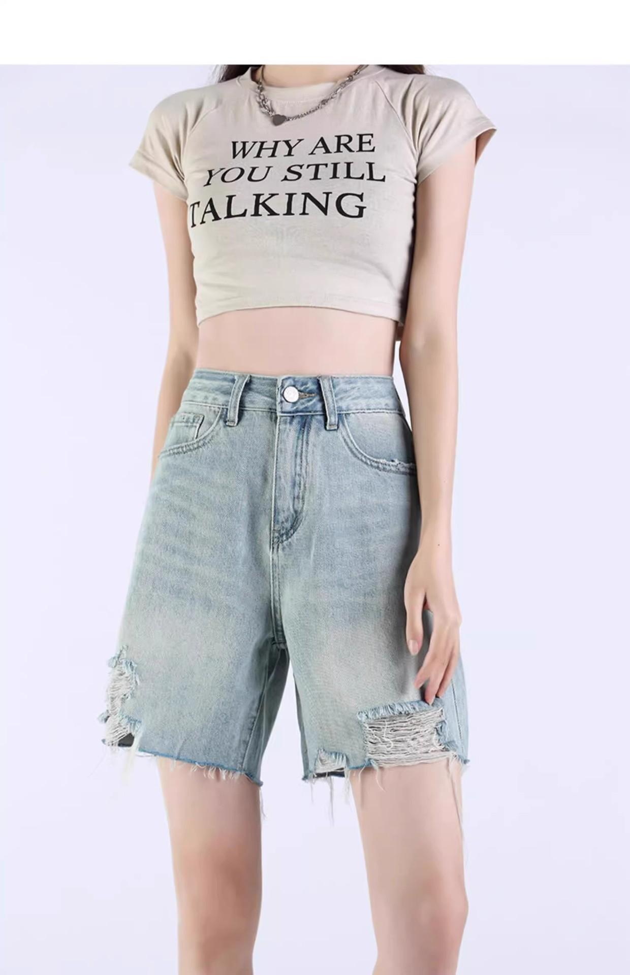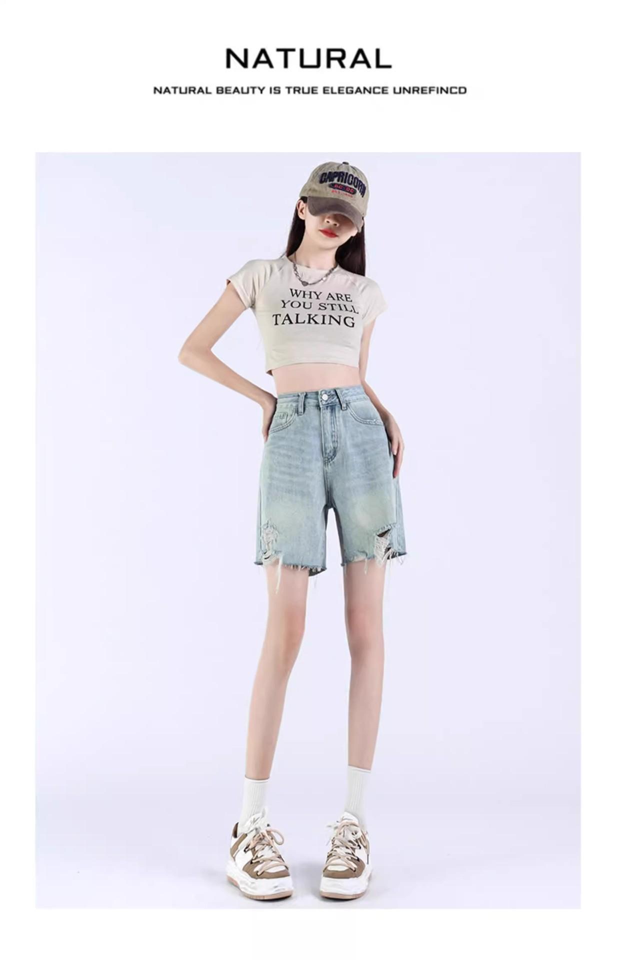 Pantalones cortos vaqueros Tencel azul claro para mujer, novedad de verano 2024, cintura alta, sueltos, adelgazantes, casuales, rectos