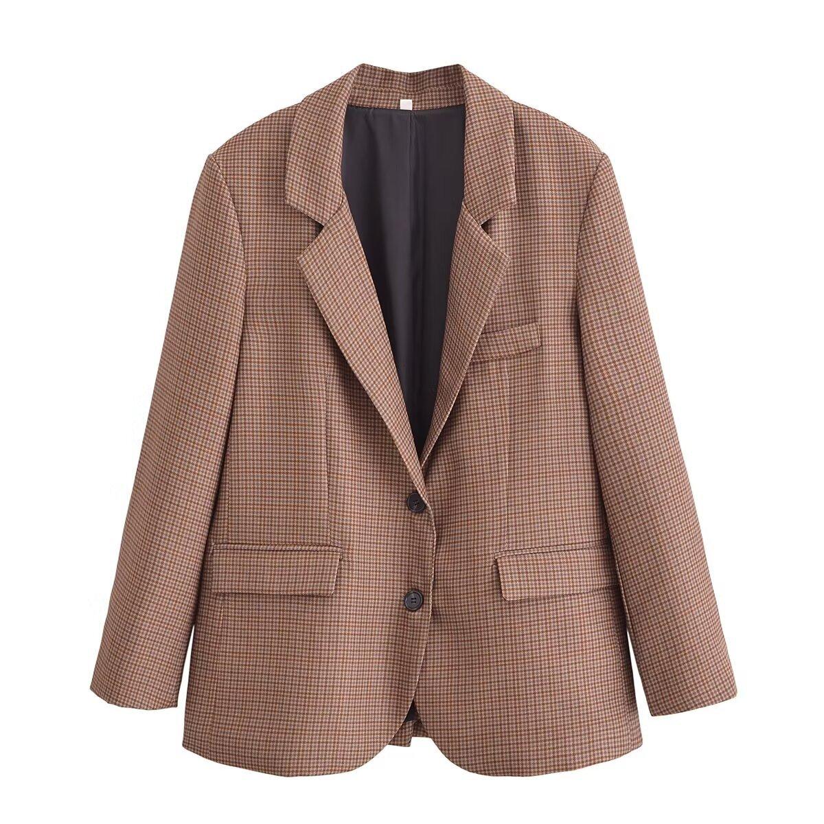 Chaqueta de traje de manga larga a cuadros con botones, moda de invierno 2024, Amazon, para mujer, A769116
