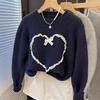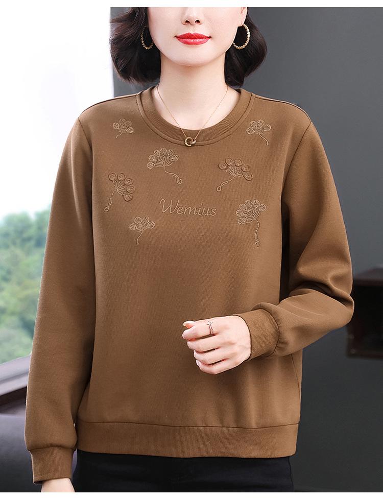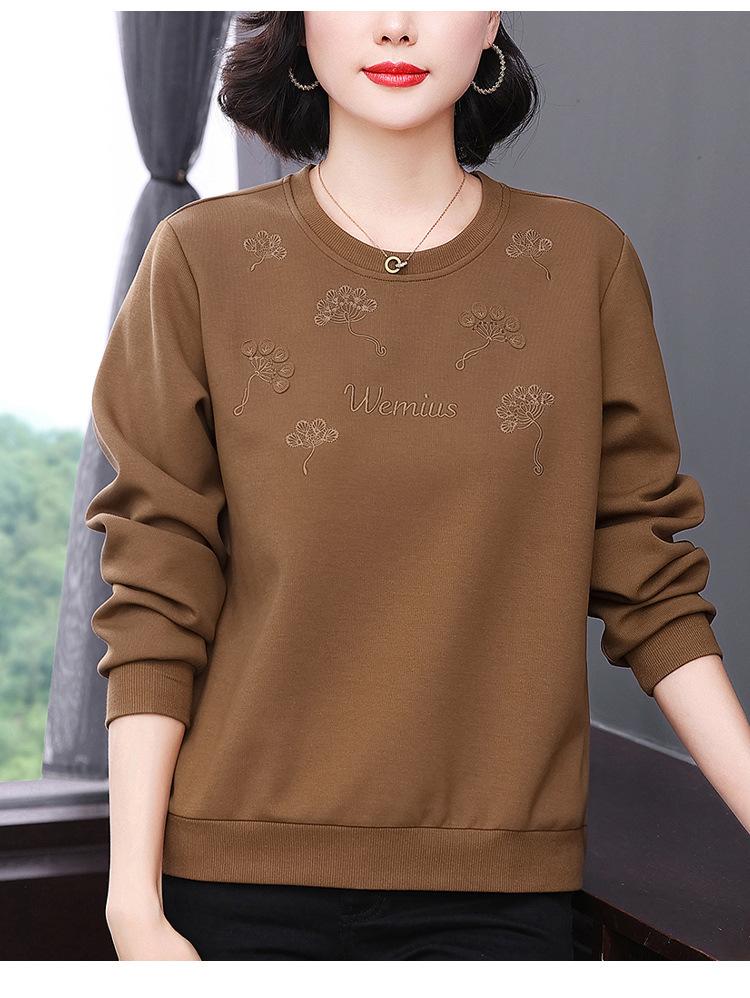 2024 Nuevo Invierno Ropa de Madre Sudadera de Manga Larga Diseño Nicho Holgada Bordada Empalmada Top para Mujer