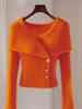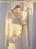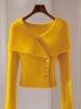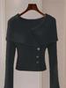 Otoño Nuevo Temperamento Estilo Chanel Pequeño Color Sólido Suéter de Punto Top Diseño Nicho Alto Sentido Cintura Manga Larga Suéter