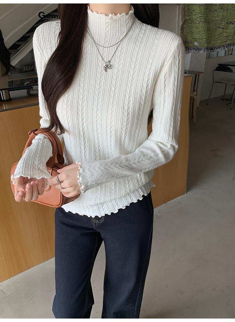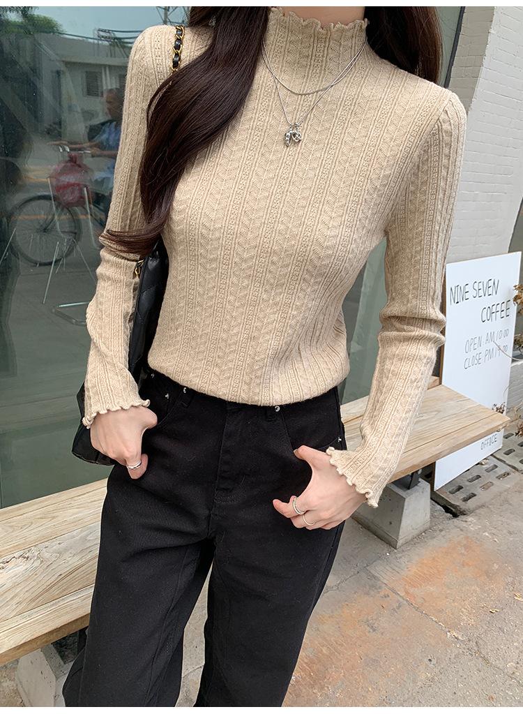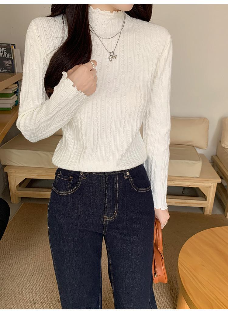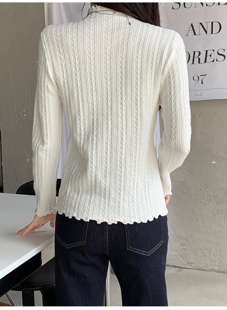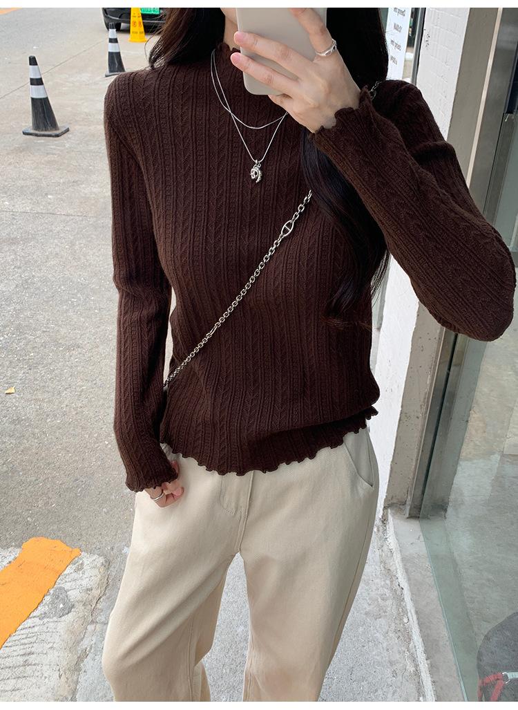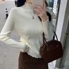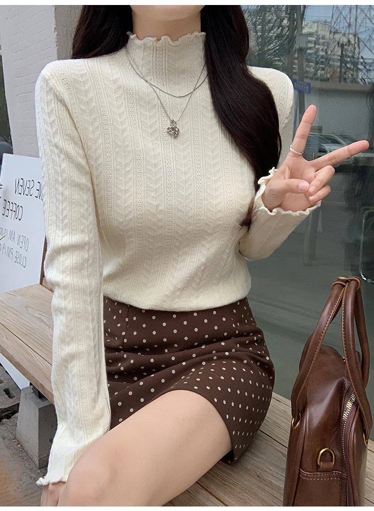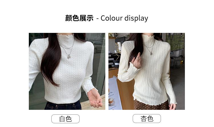 Suéter de Crochet de Cuello Alto Francés de Manga Larga para Mujer Otoño Ajustado Camiseta Base Ajustada Top de Corte Suave