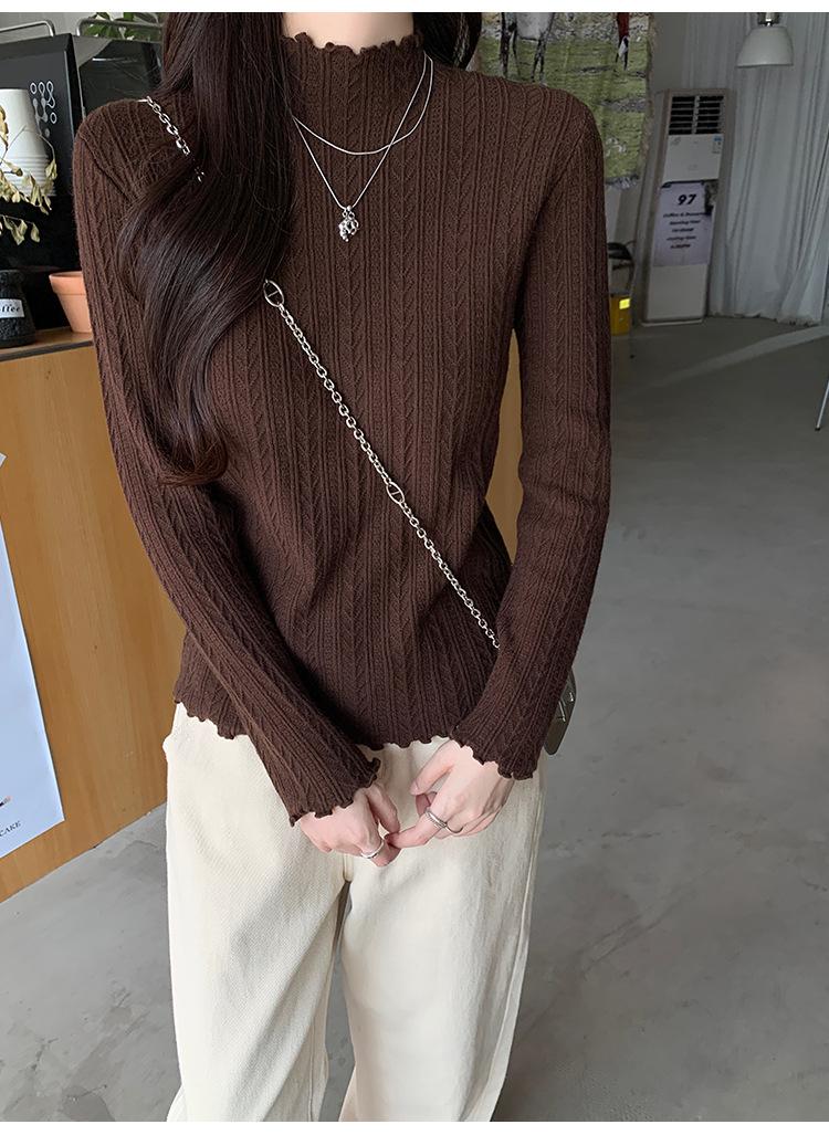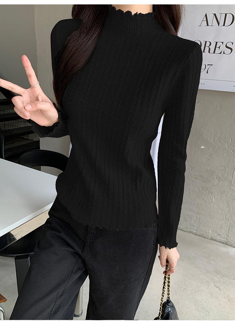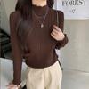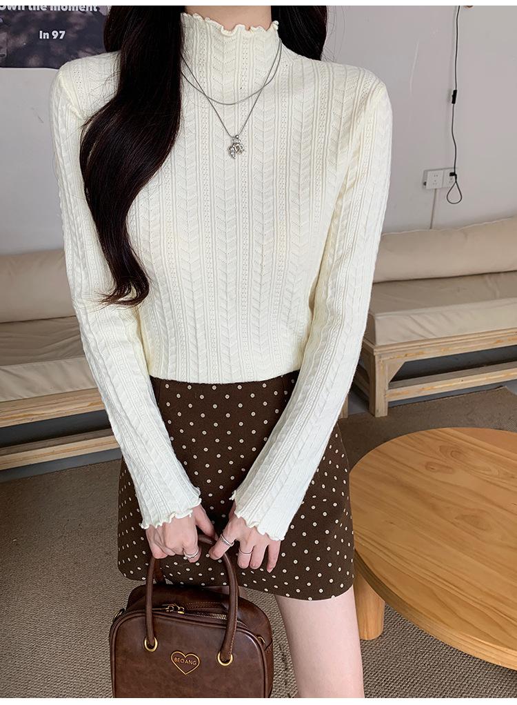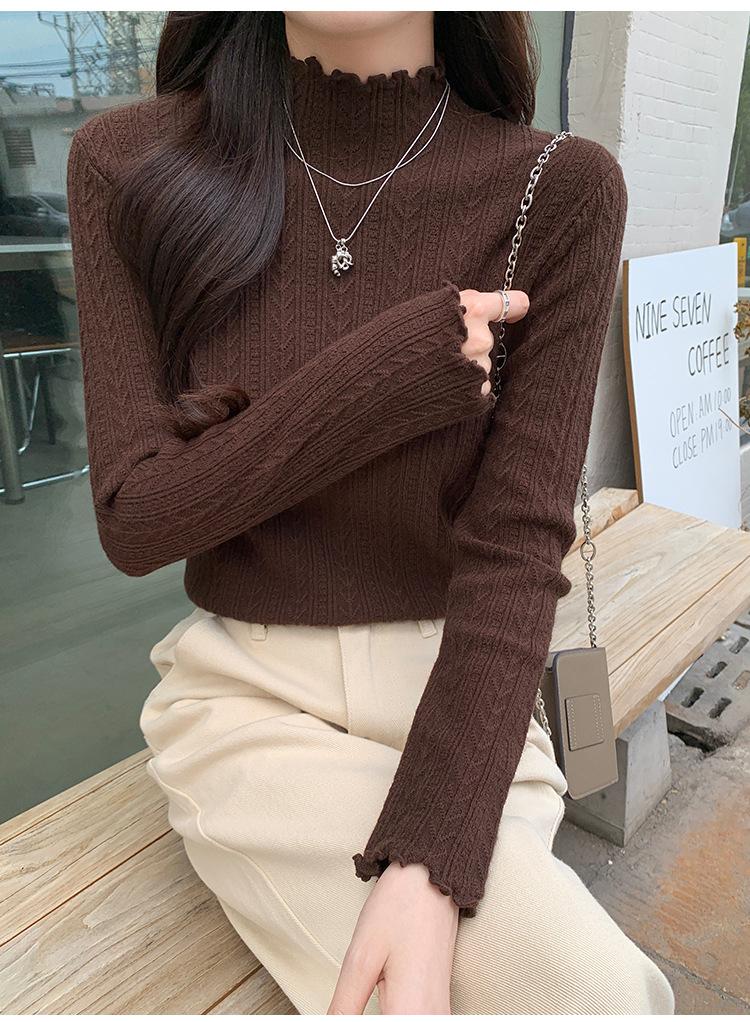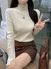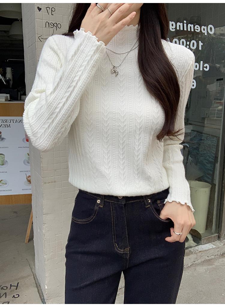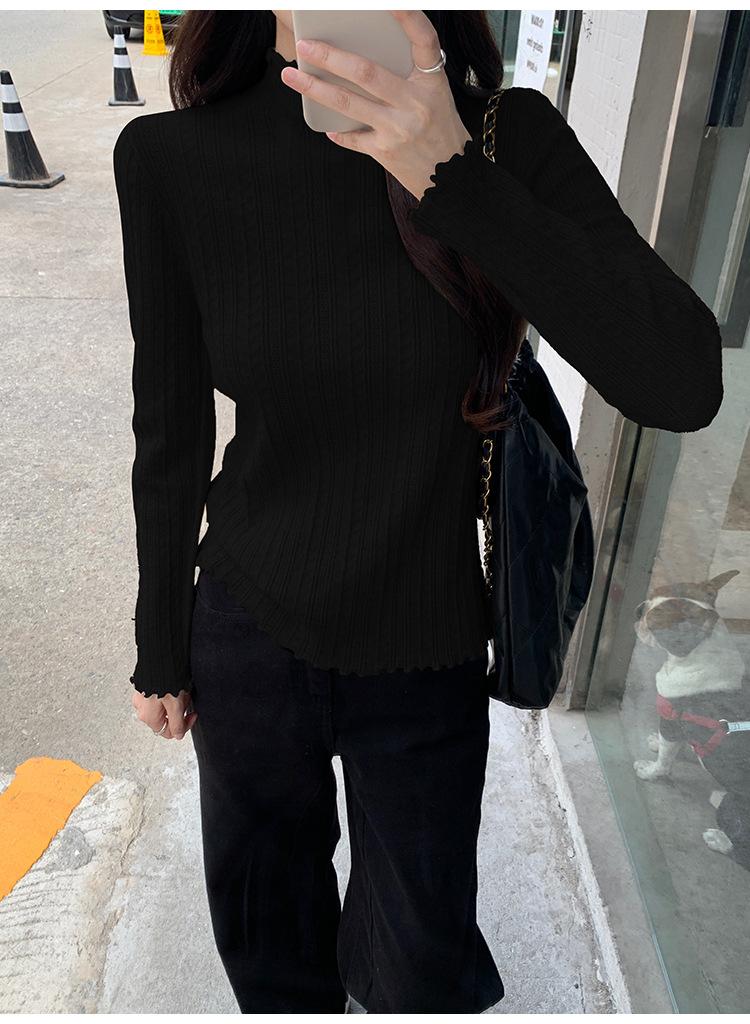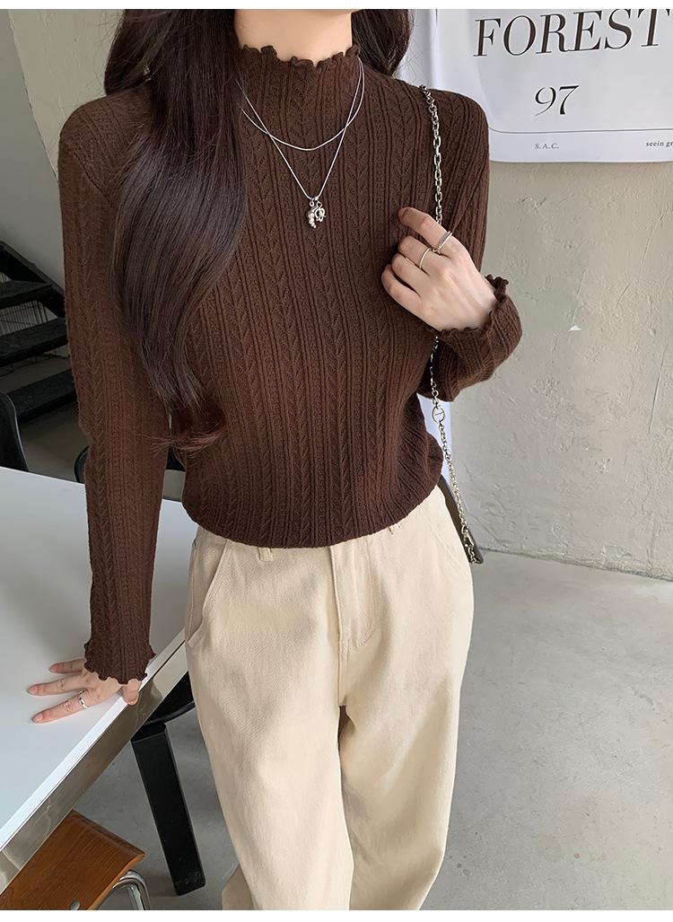 Suéter de Crochet de Cuello Alto Francés de Manga Larga para Mujer Otoño Ajustado Camiseta Base Ajustada Top de Corte Suave
