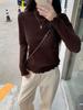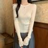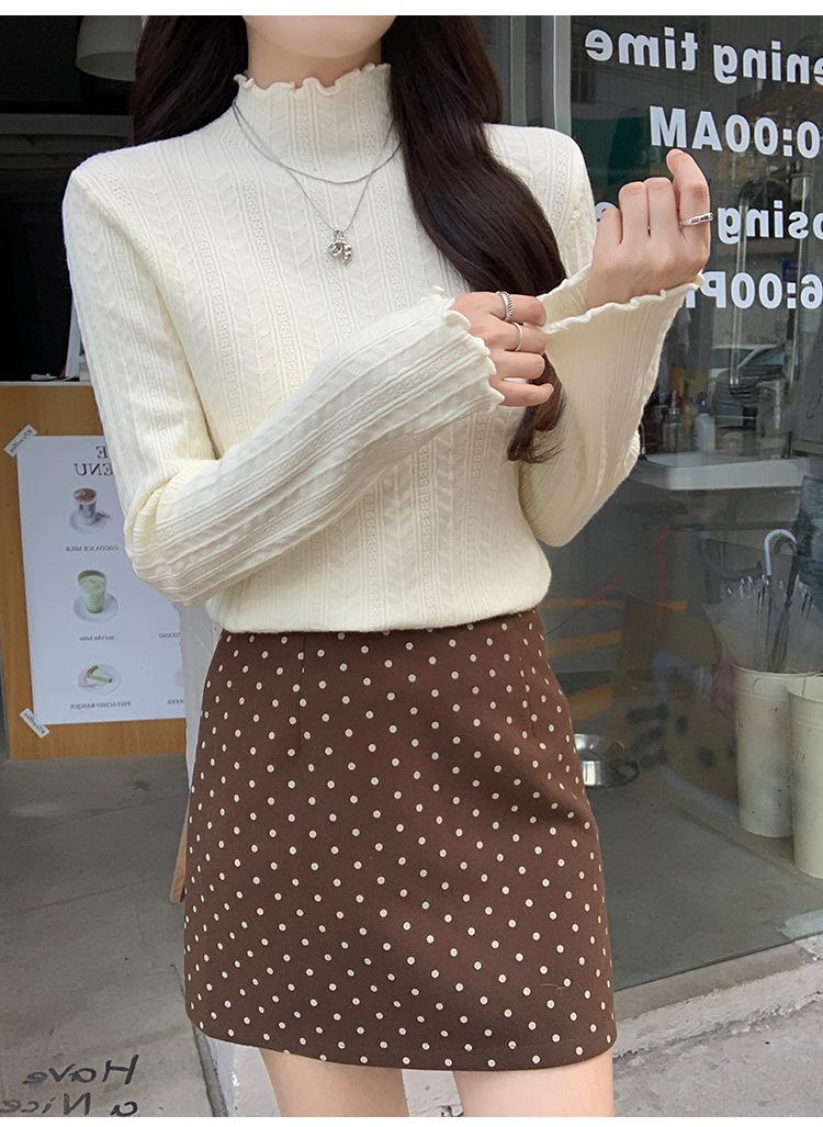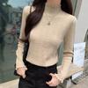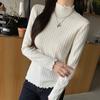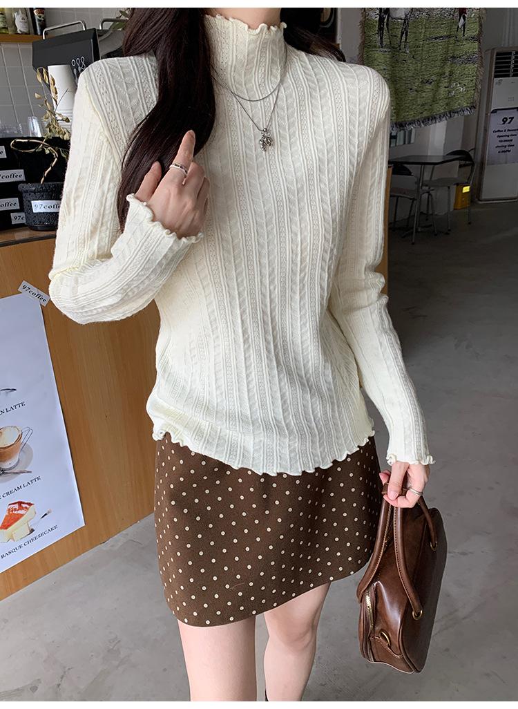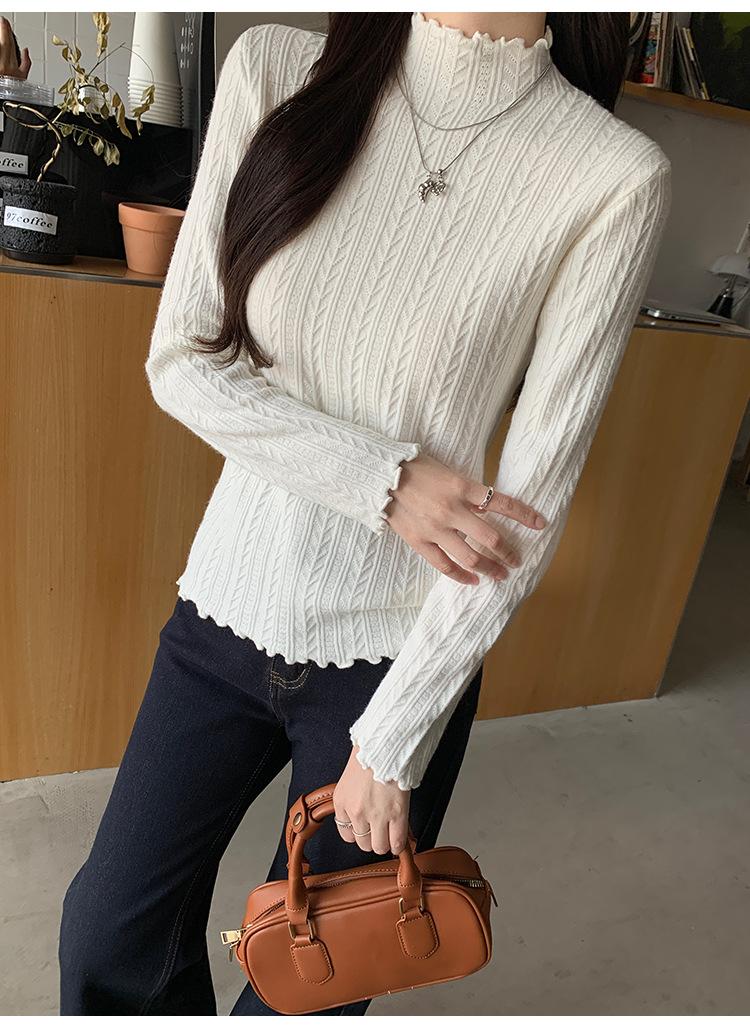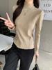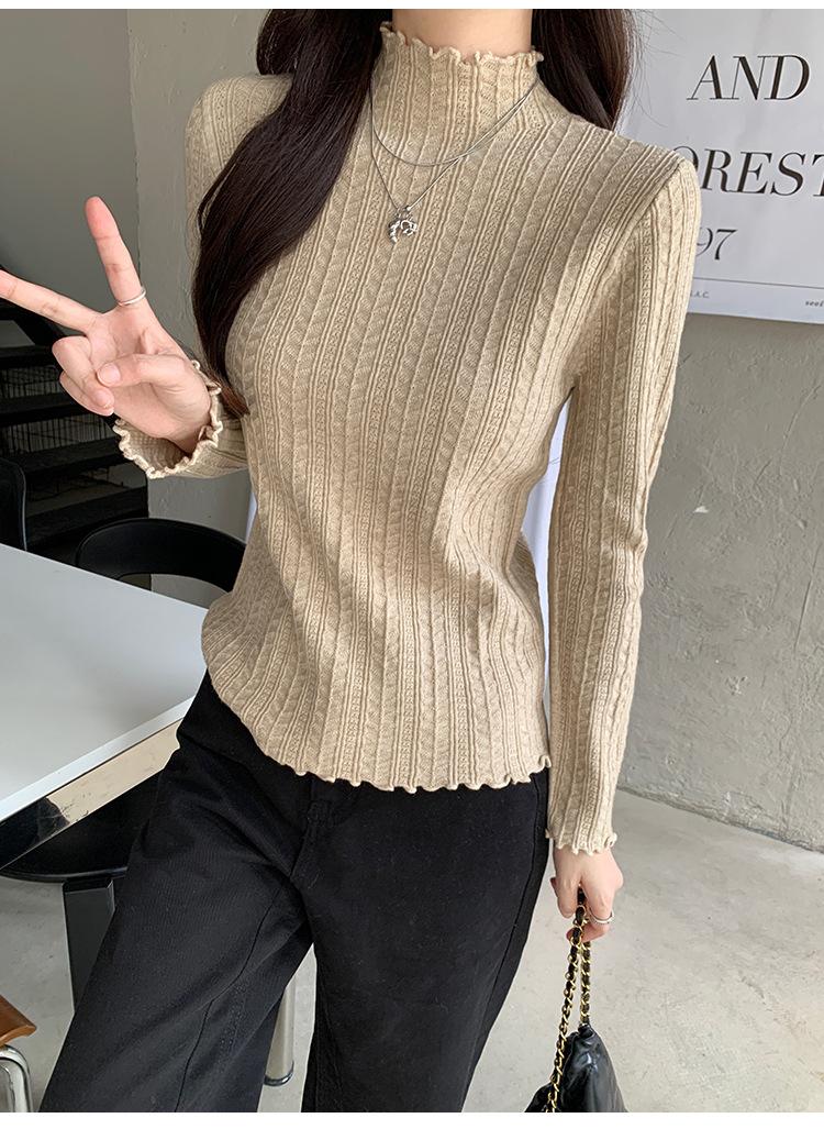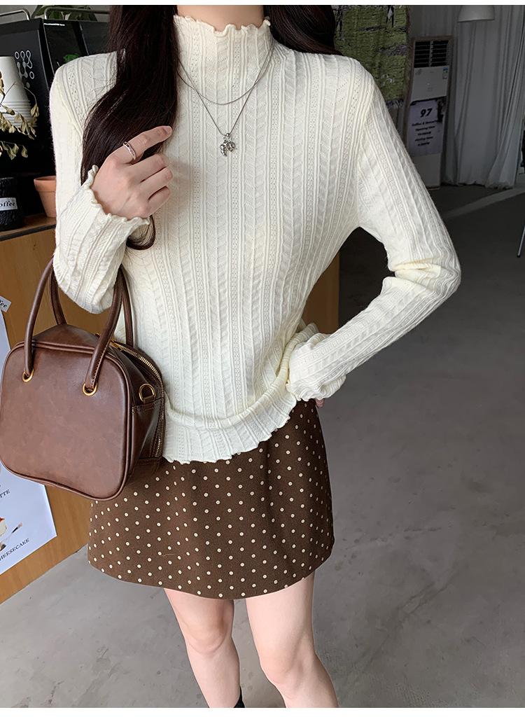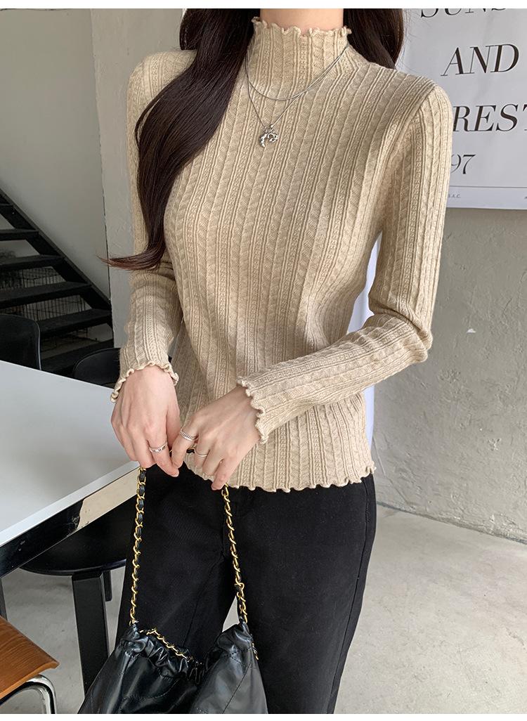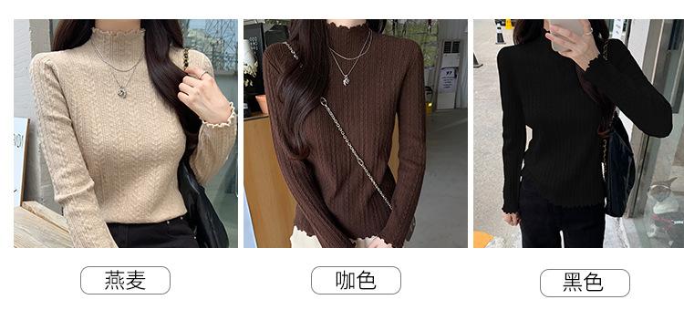 Suéter de Crochet de Cuello Alto Francés de Manga Larga para Mujer Otoño Ajustado Camiseta Base Ajustada Top de Corte Suave