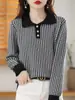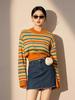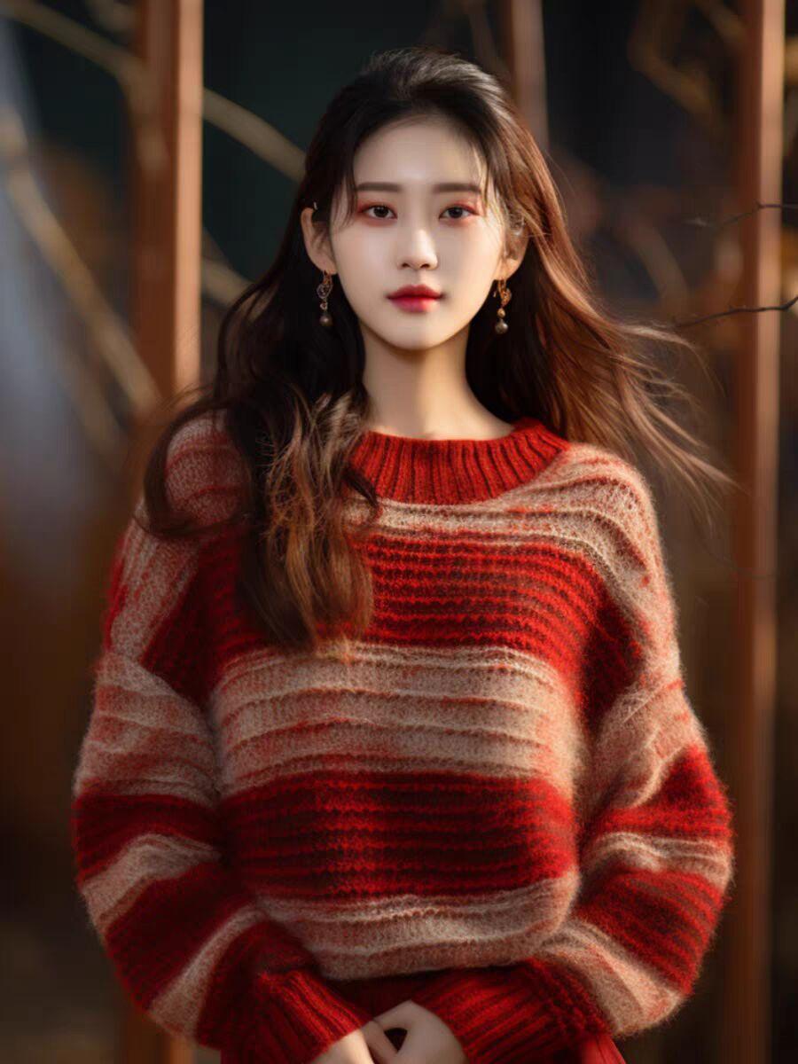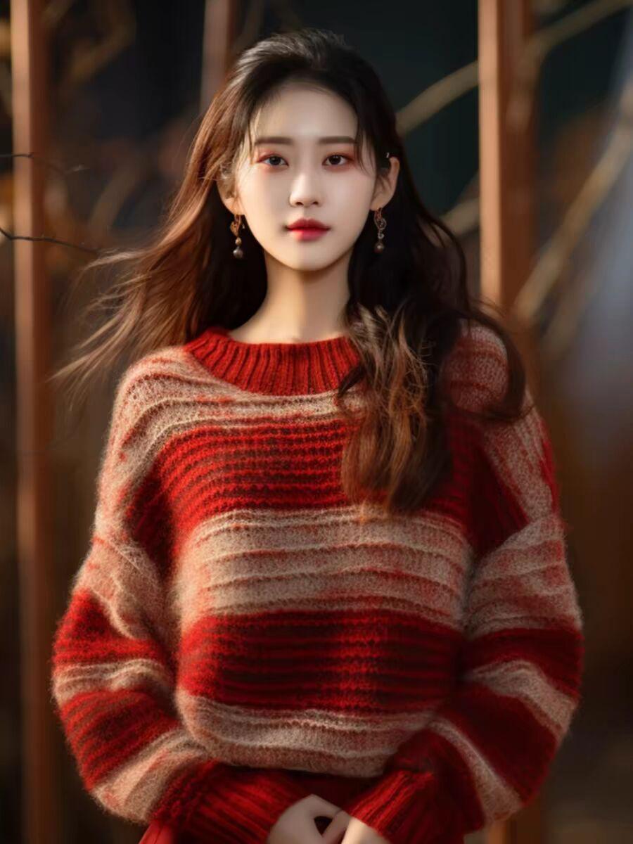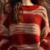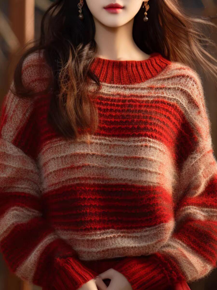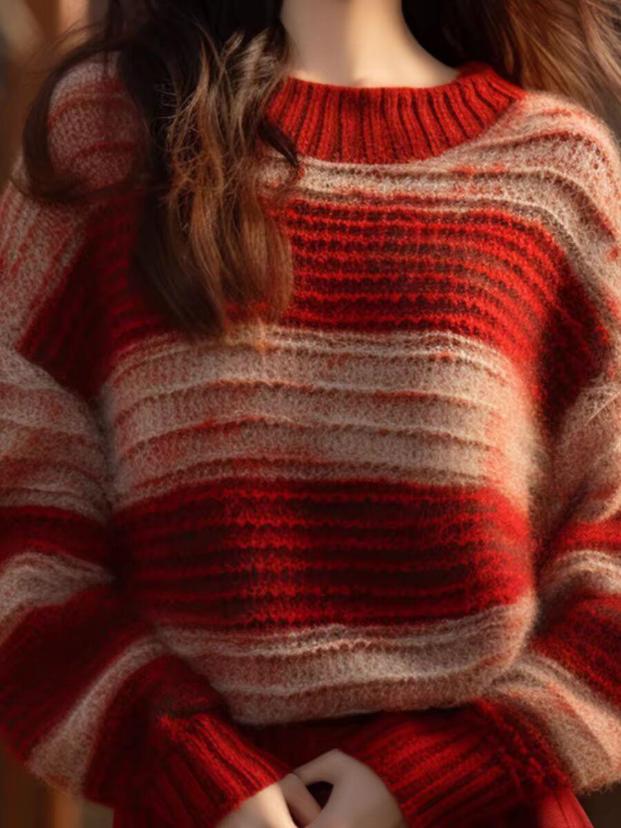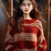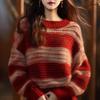 Suéter de rayas rojas contrastantes para mujer, otoño e invierno 2024, nuevo estilo Chanel, top de punto grueso y suelto