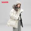 Chaqueta de plumón de pato para mujer 2025 Invierno Nuevo Largo medio con capucha Cuello de piel de zorro Cálida y a la moda Chaqueta de plumón de pato