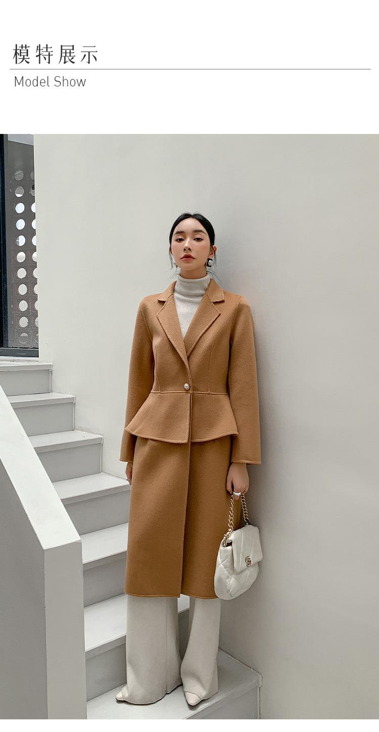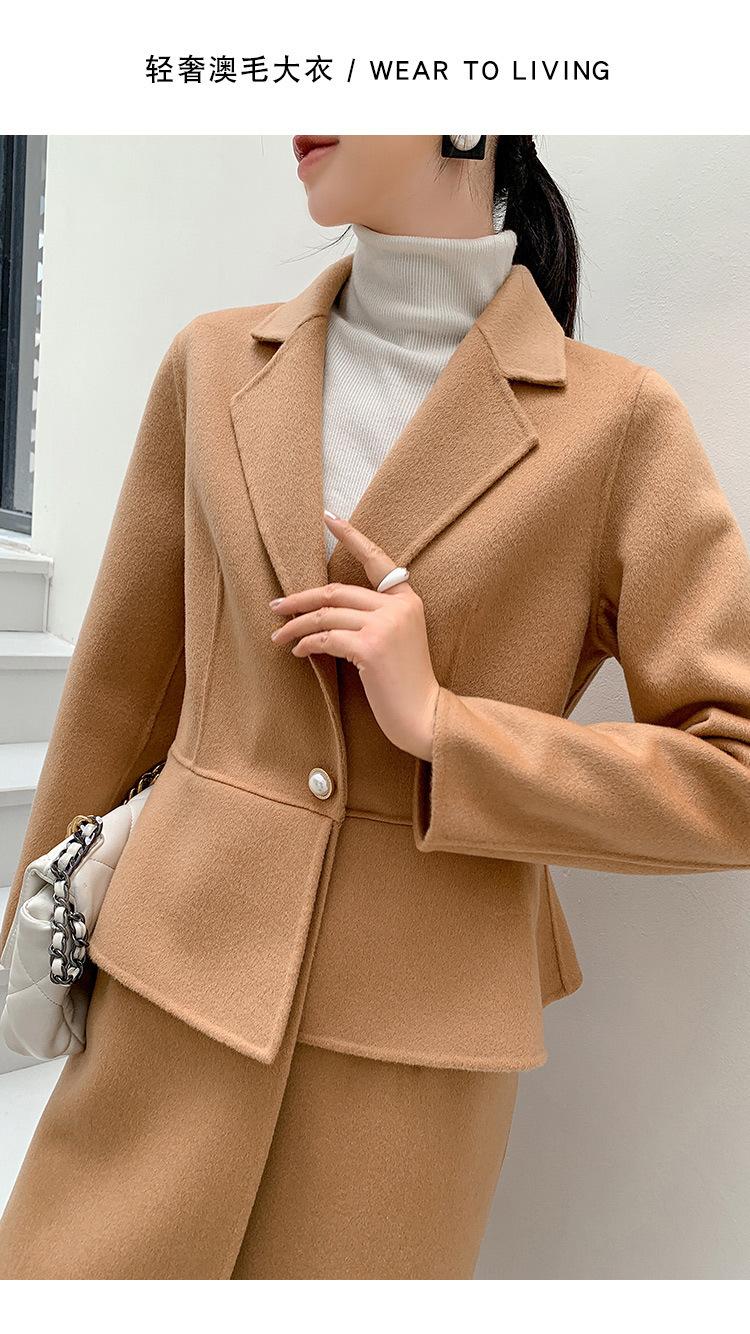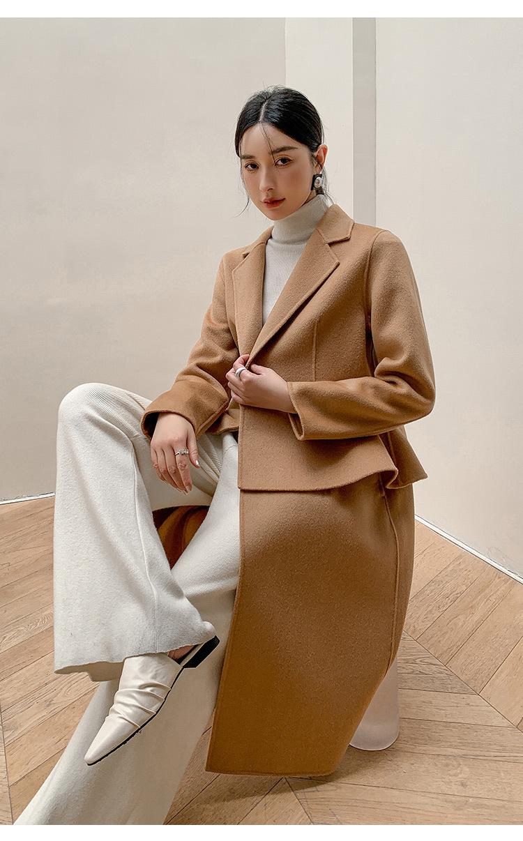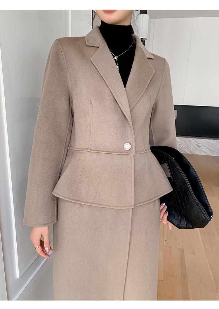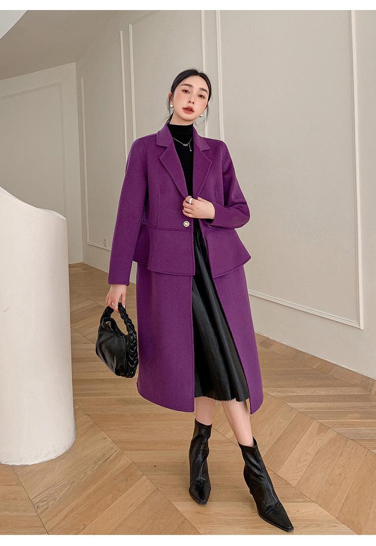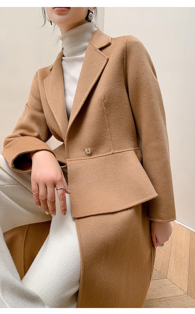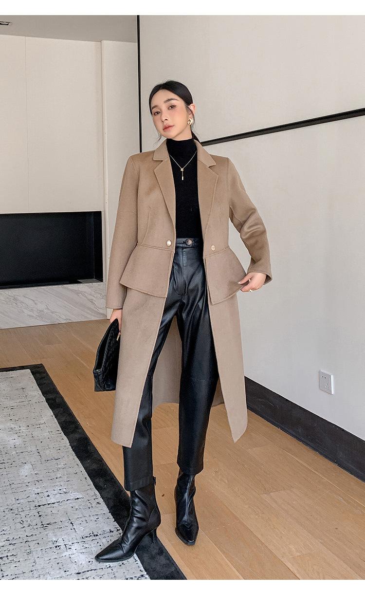 Abrigo nuevo de otoño e invierno de lana pura de doble faz para mujer, cuello de traje falso de dos piezas abotonado casual temperamento abrigo de manga larga