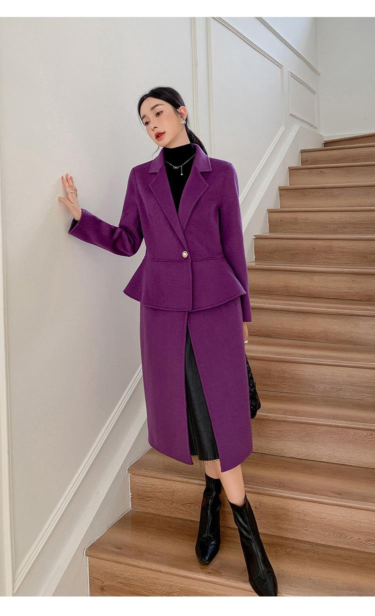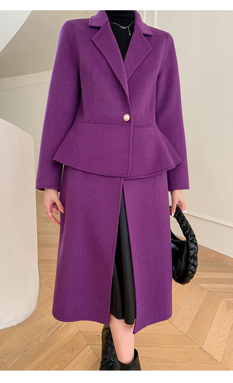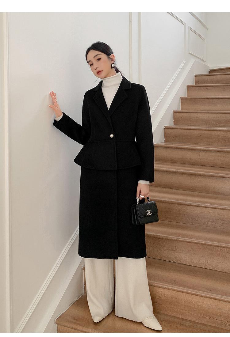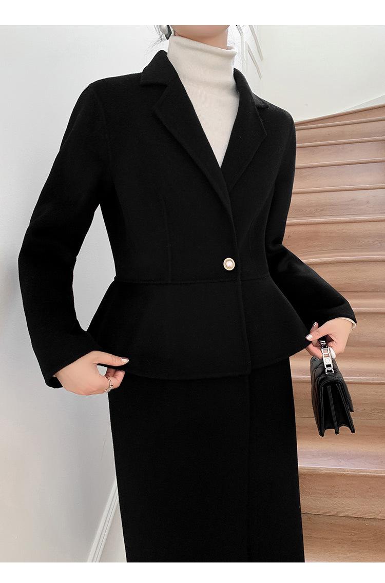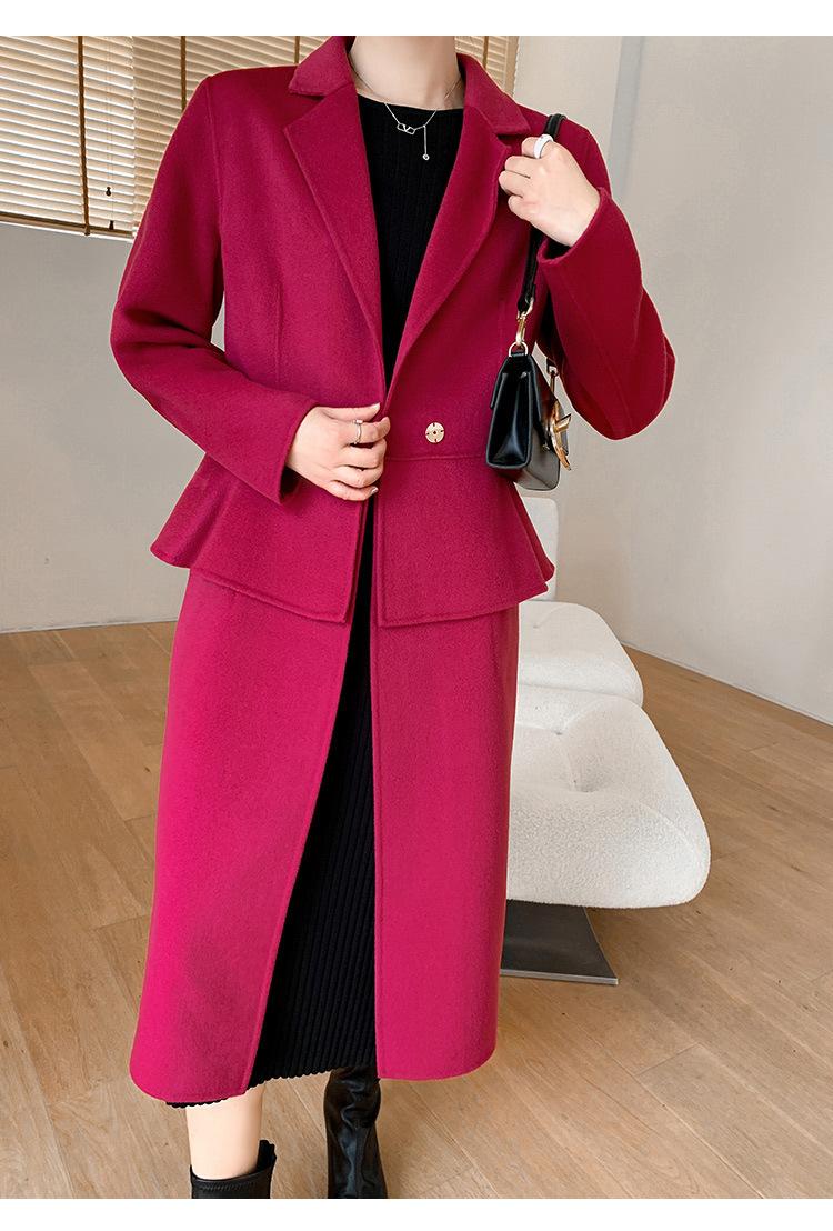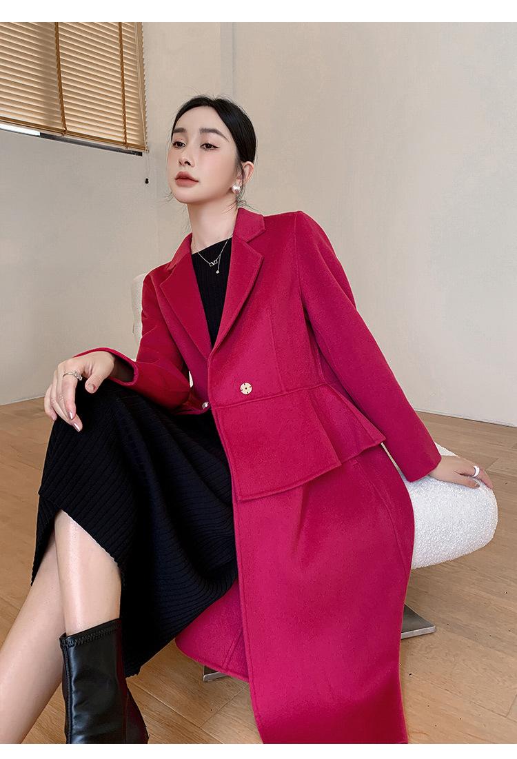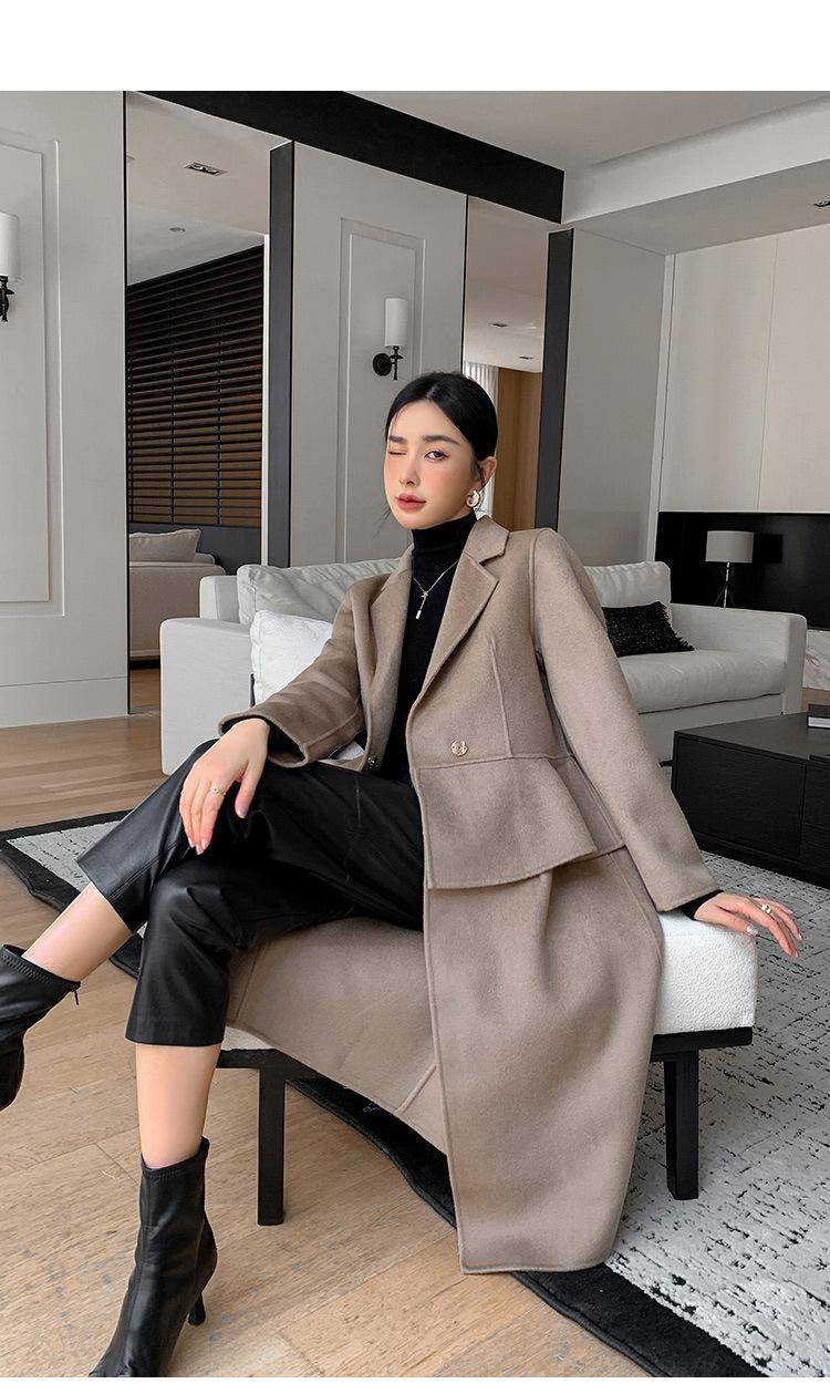 Abrigo nuevo de otoño e invierno de lana pura de doble faz para mujer, cuello de traje falso de dos piezas abotonado casual temperamento abrigo de manga larga