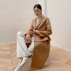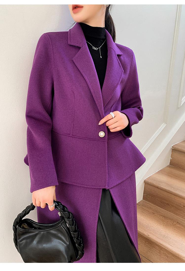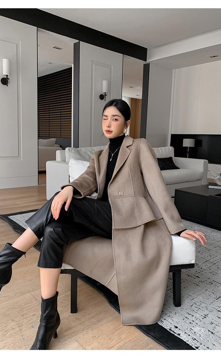 Otoño e Invierno Nuevo Abrigo de Lana de Doble Vista Hecho a Mano Puro Cuello Sastre Cárdigan Coreano Cálido de Dos Piezas Falsas para Mujer