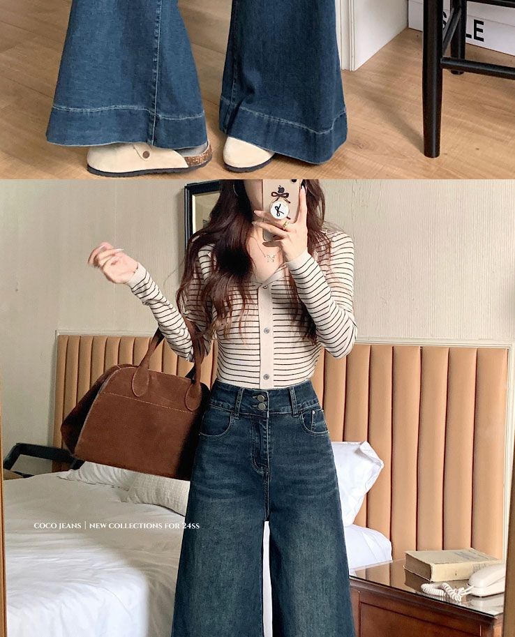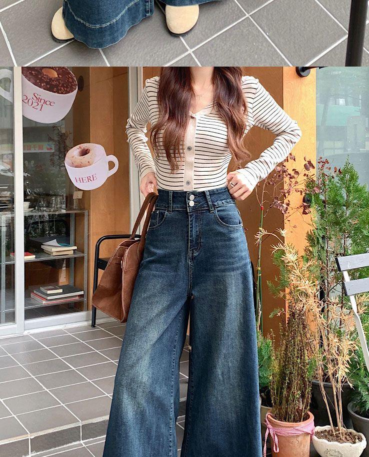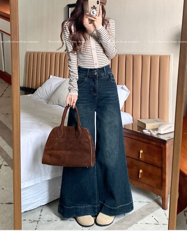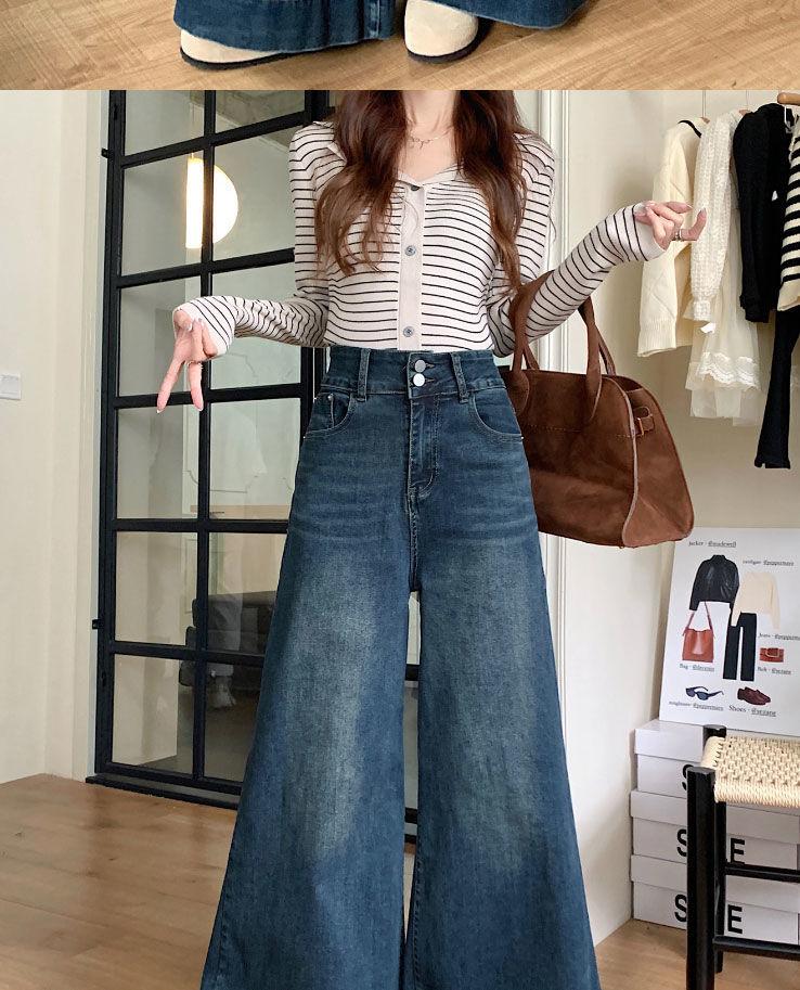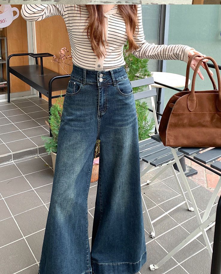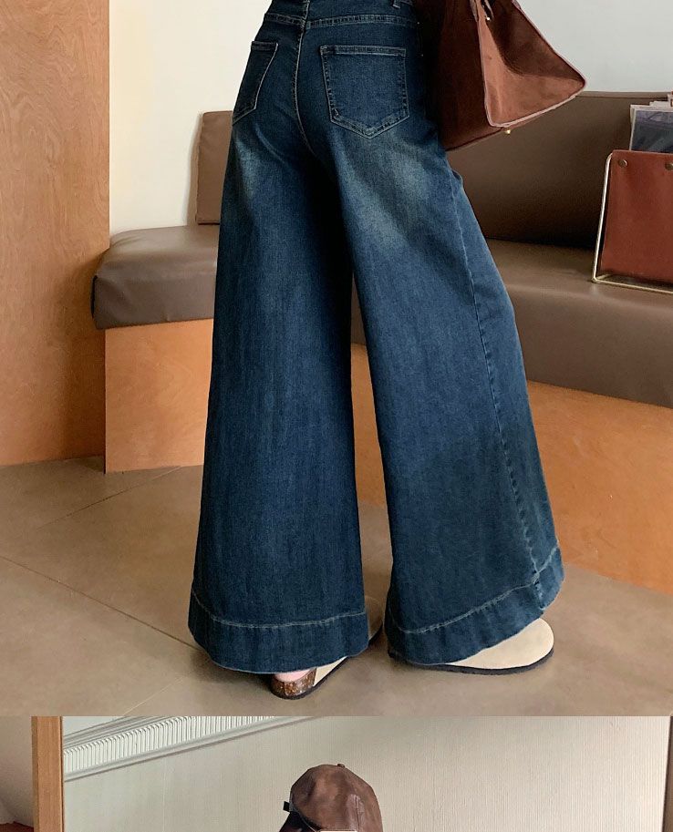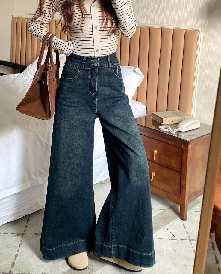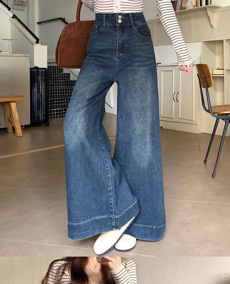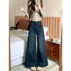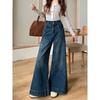 Pantalones de mezclilla de pierna ancha en forma de pera Nuevo para mujer 2024 Cintura alta pequeña Elásticos Pantalones elásticos Aspecto delgado