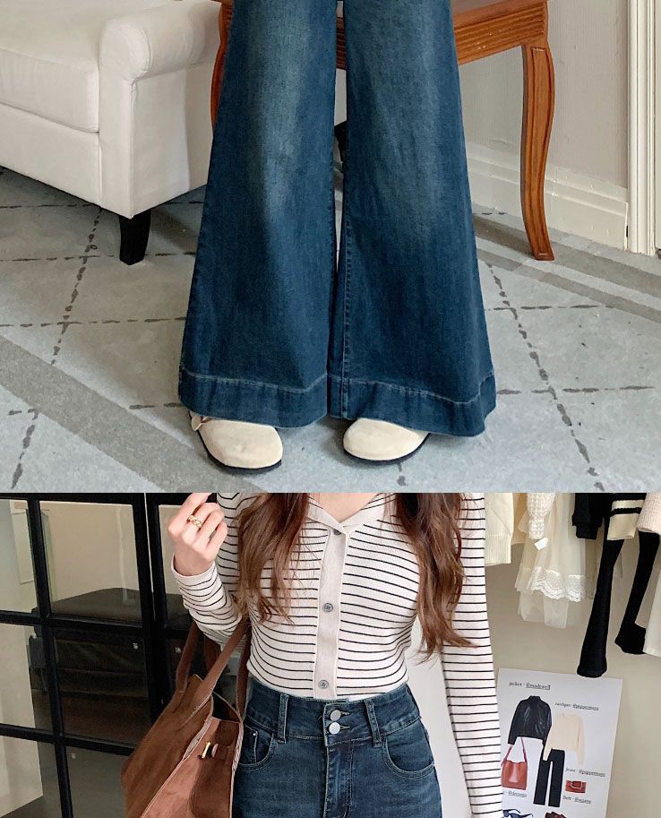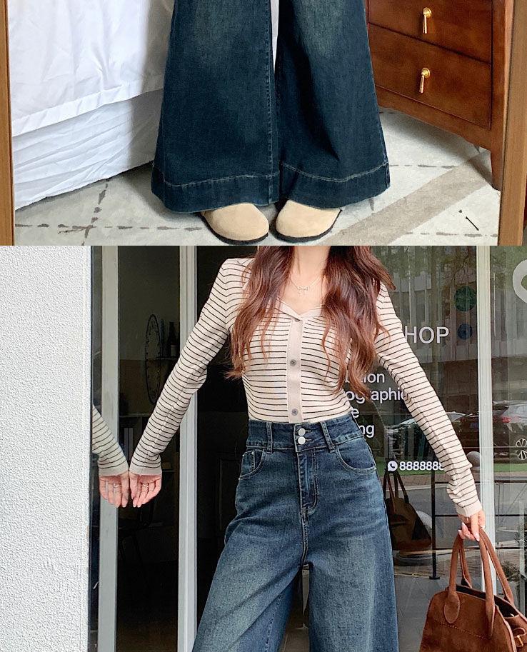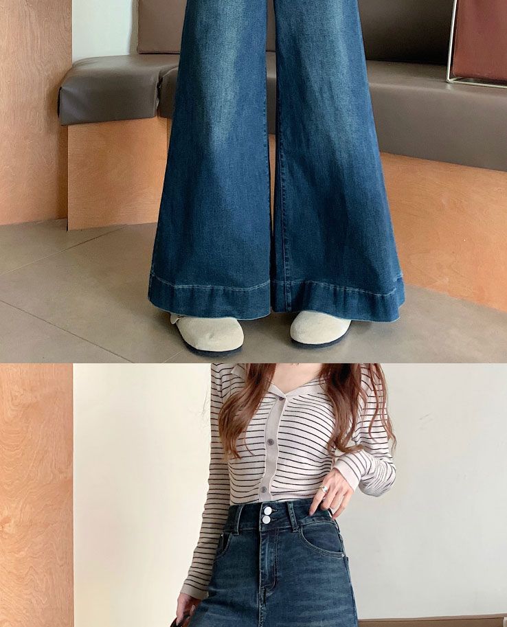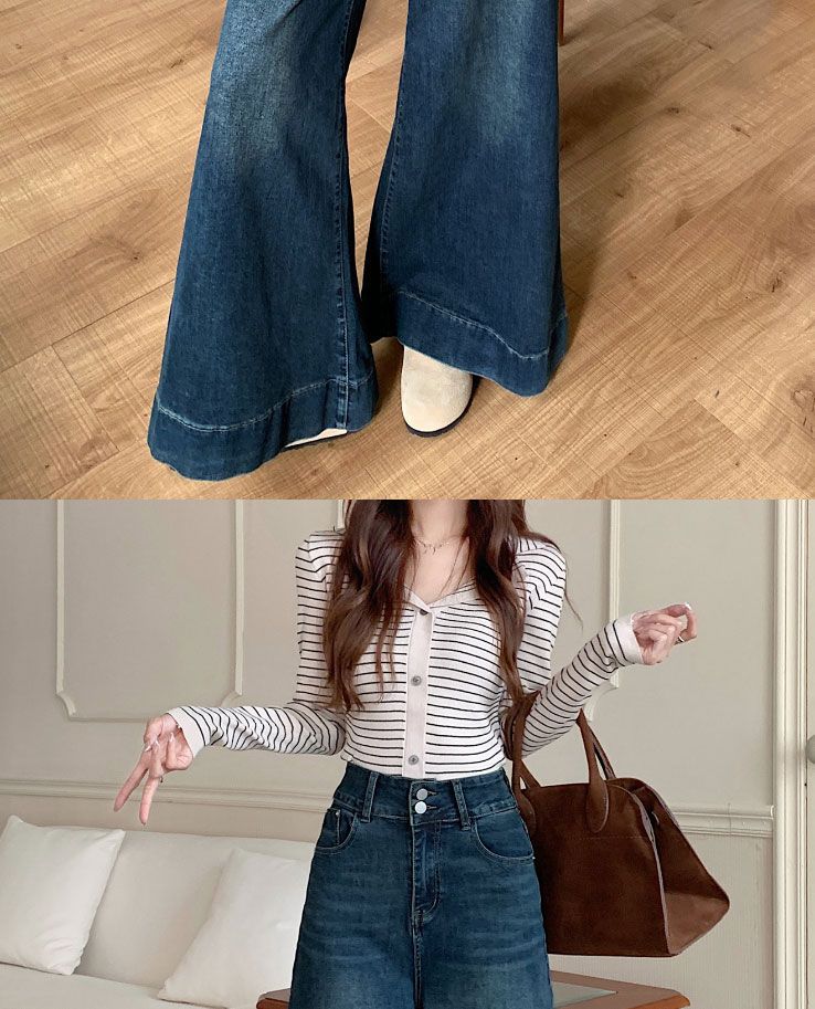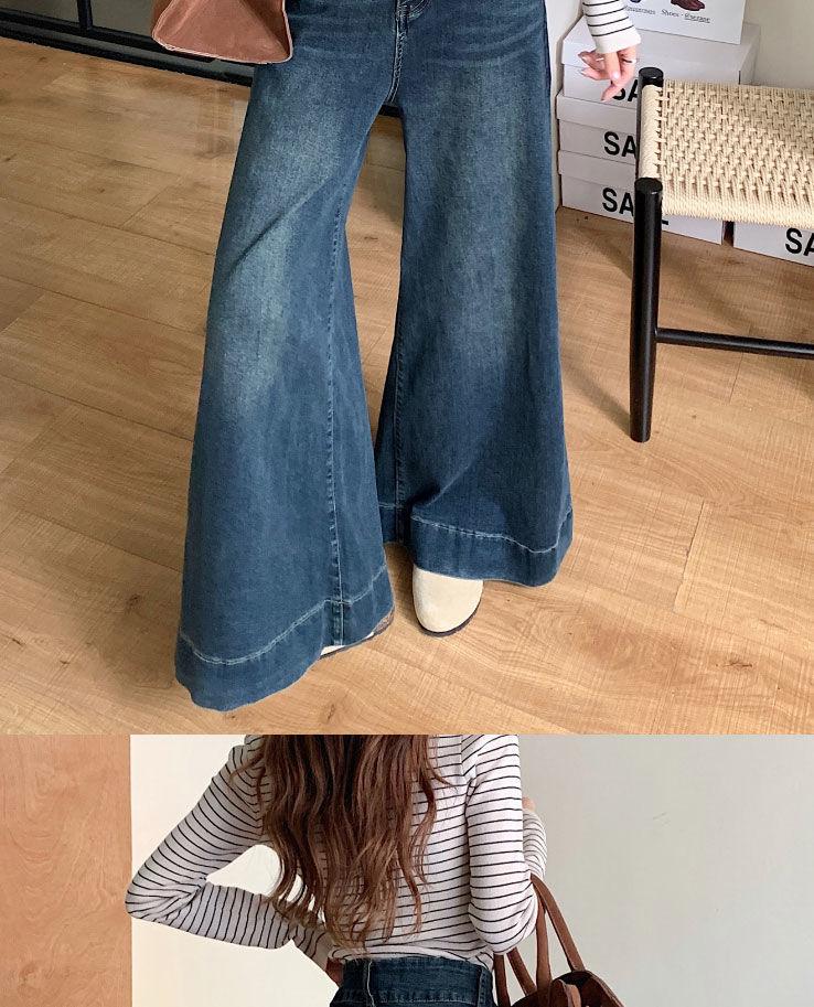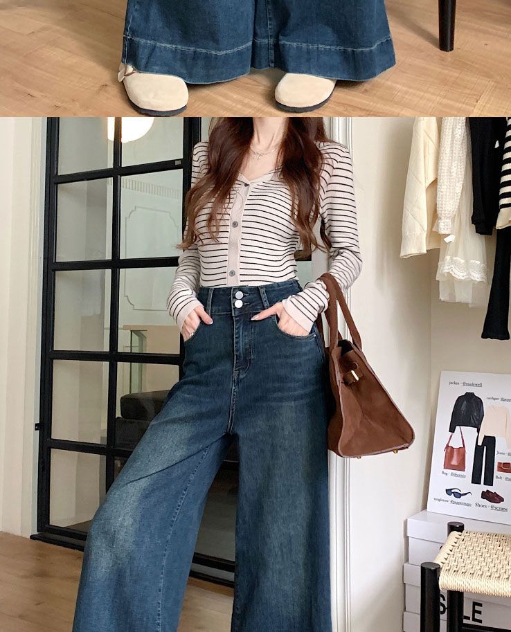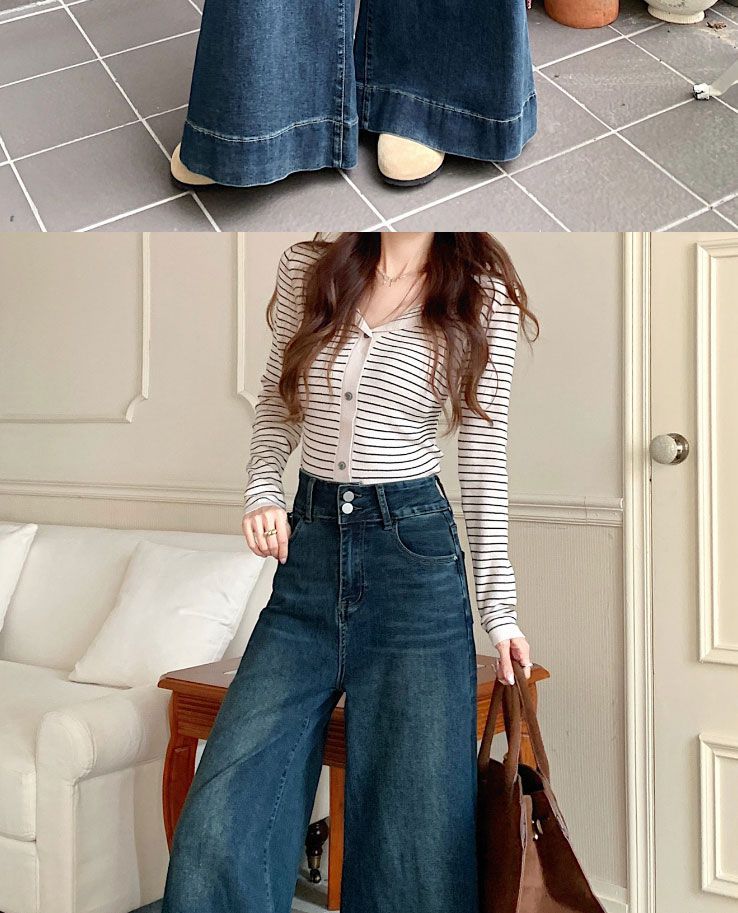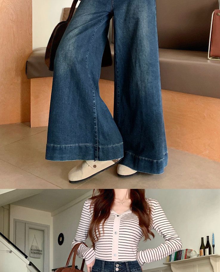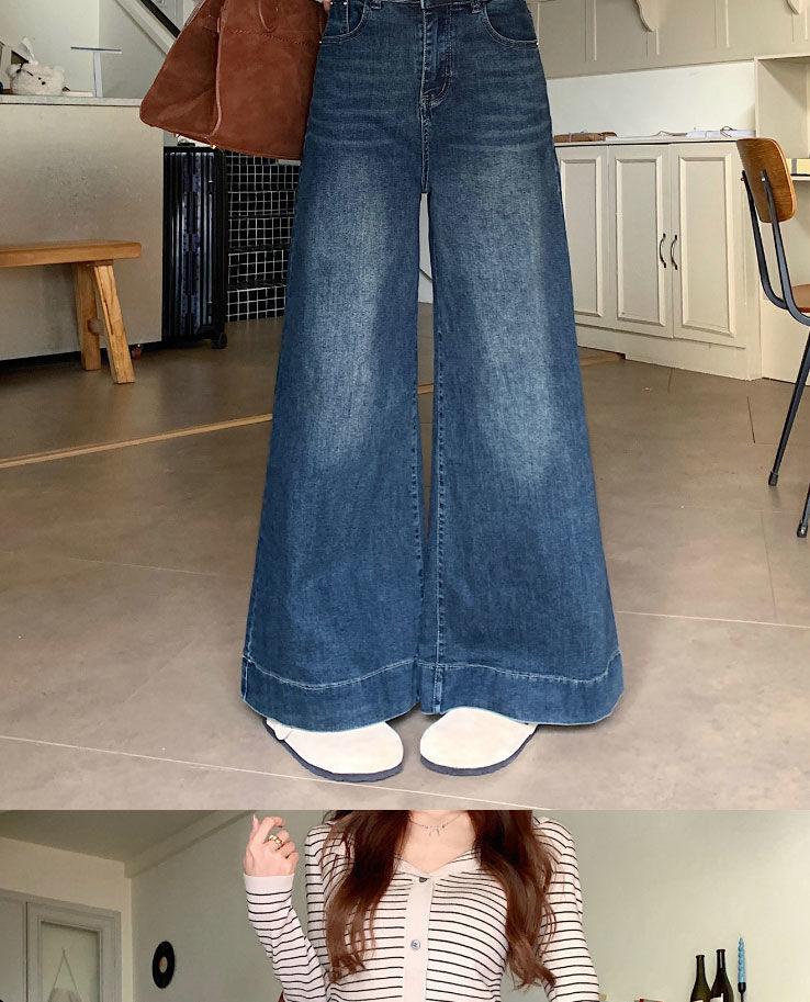 Pantalones de mezclilla de pierna ancha en forma de pera Nuevo para mujer 2024 Cintura alta pequeña Elásticos Pantalones elásticos Aspecto delgado
