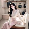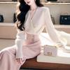 Invierno 2024 con un conjunto de ropa de mujer única y hermosa estilo pequeño suéter blanco de punto traje de falda midi