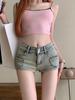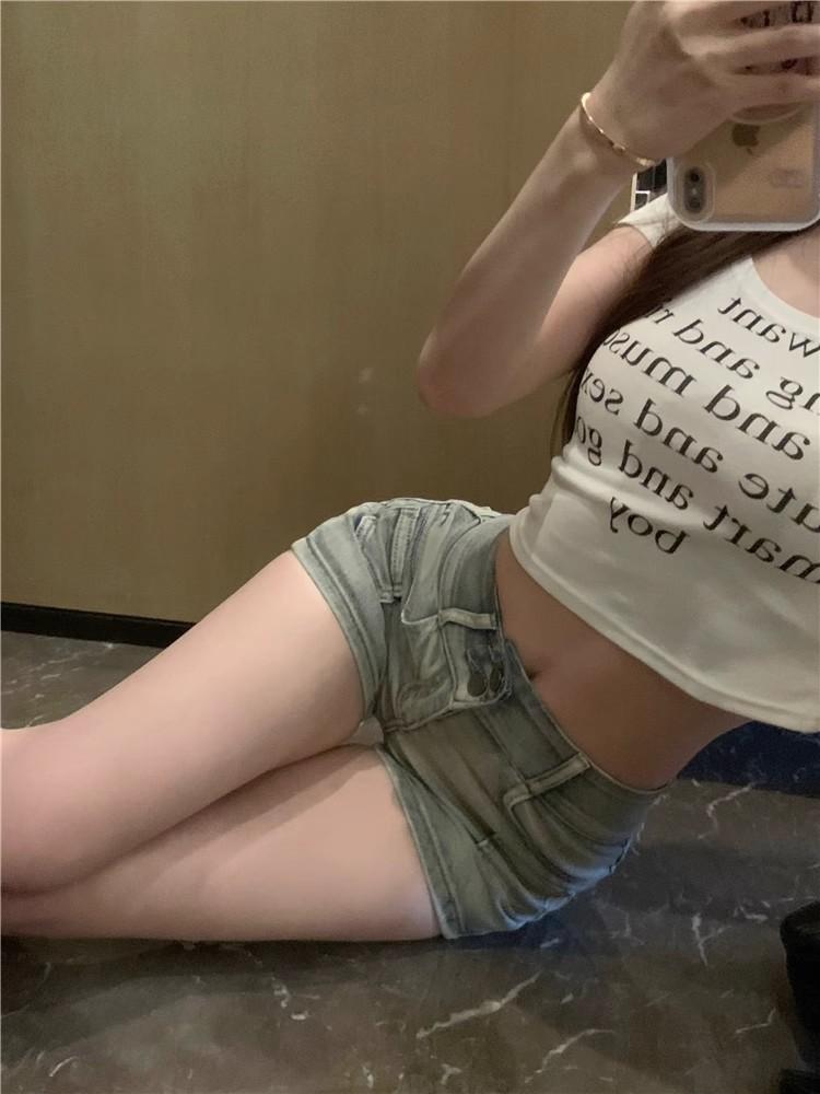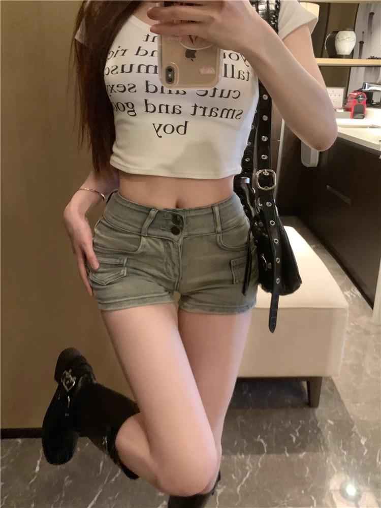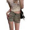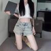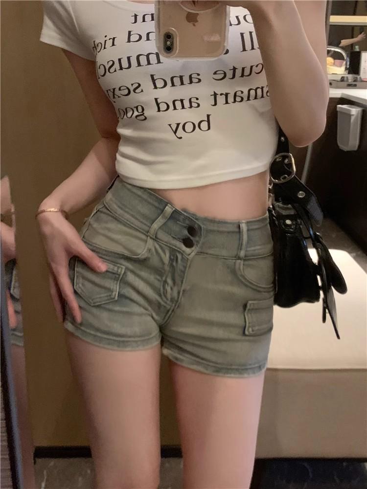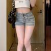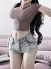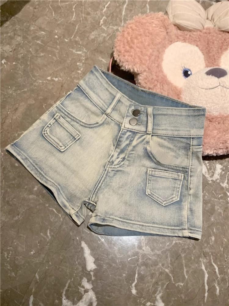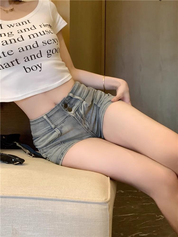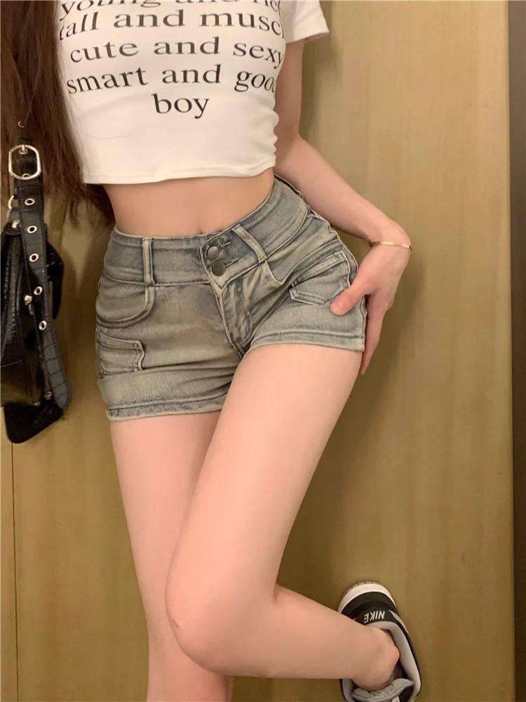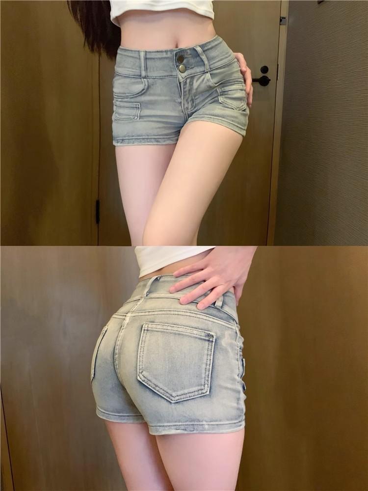 Pantalones cortos vaqueros retro elásticos para mujer, de verano, de cintura baja, ajustados, rectos y de pierna ancha.