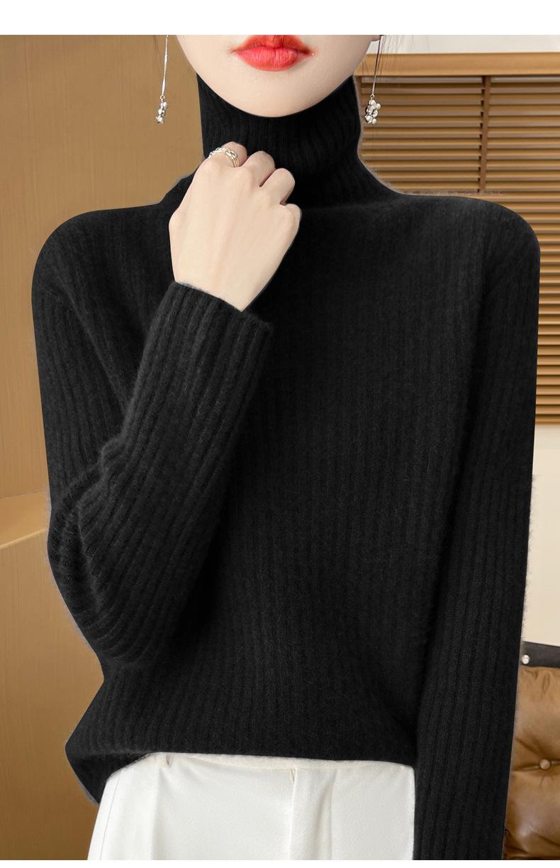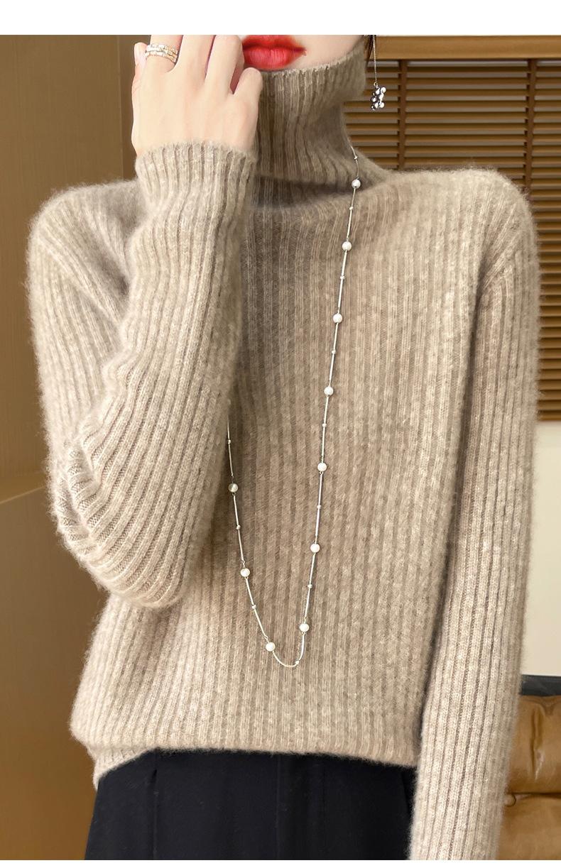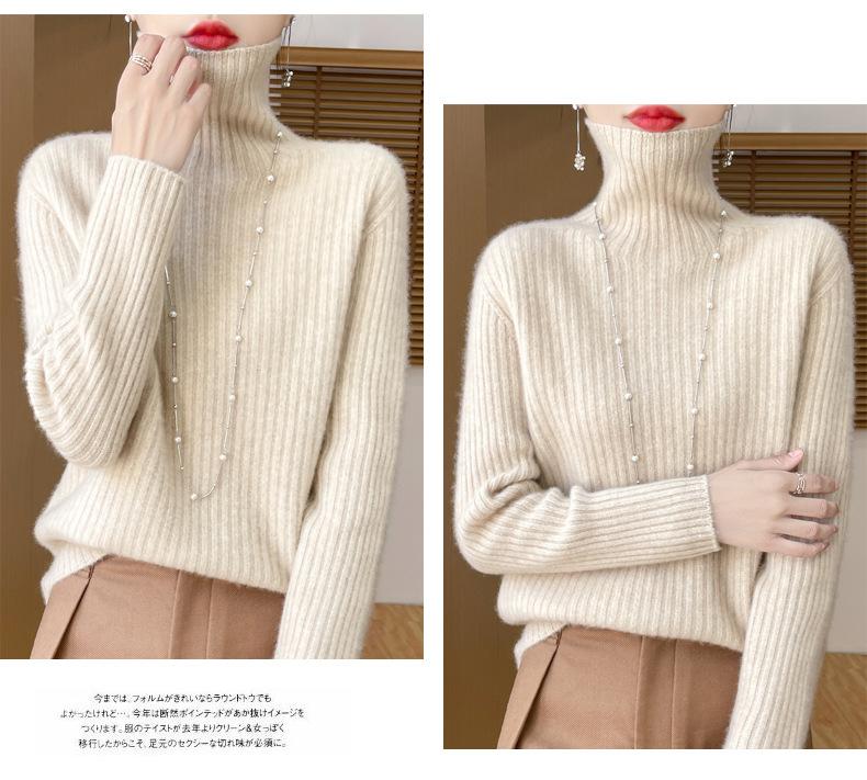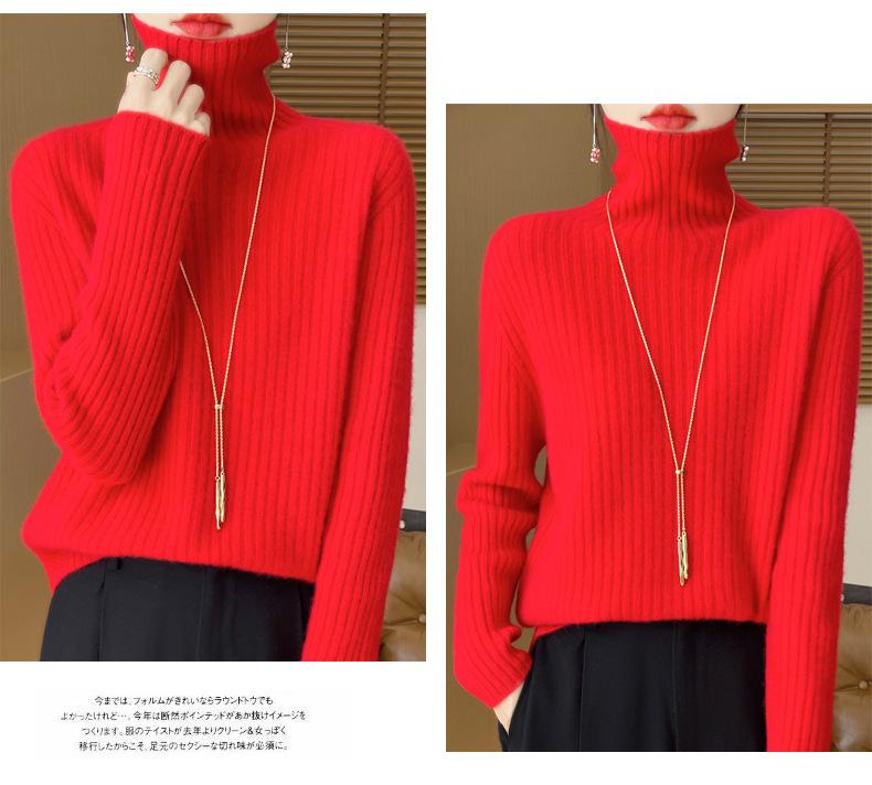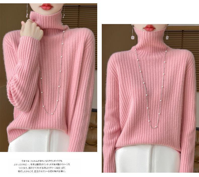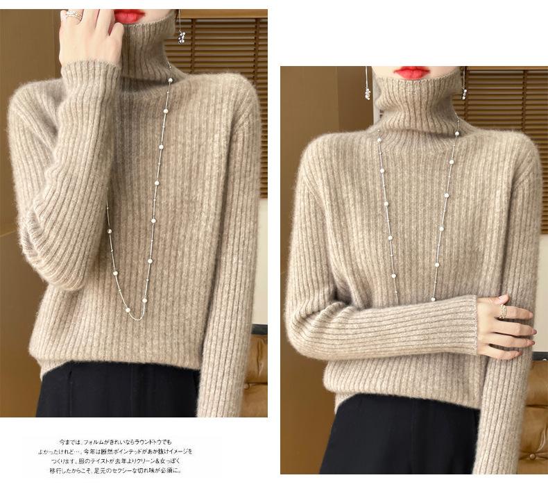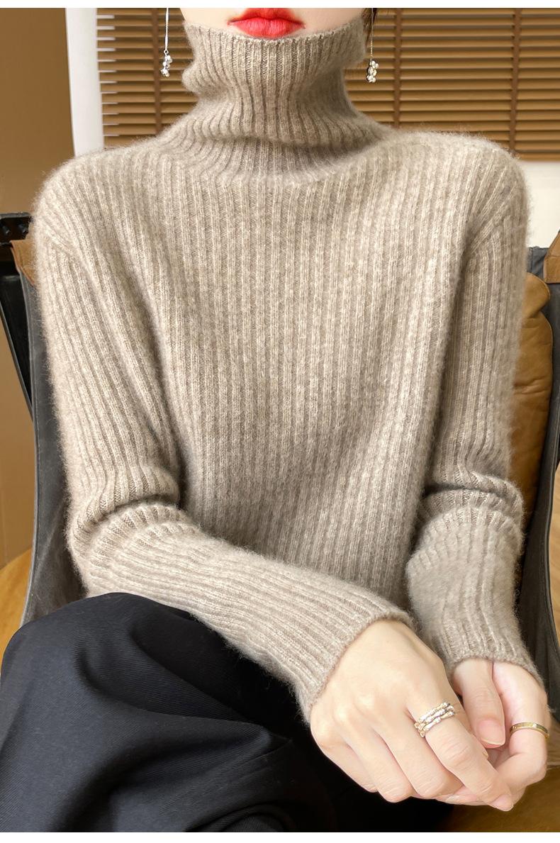 Suéter de cuello alto con dibujo de línea de color sólido nuevo de otoño e invierno, versión coreana de camisa de base de punto cálida de temperamento casual que combina con todo