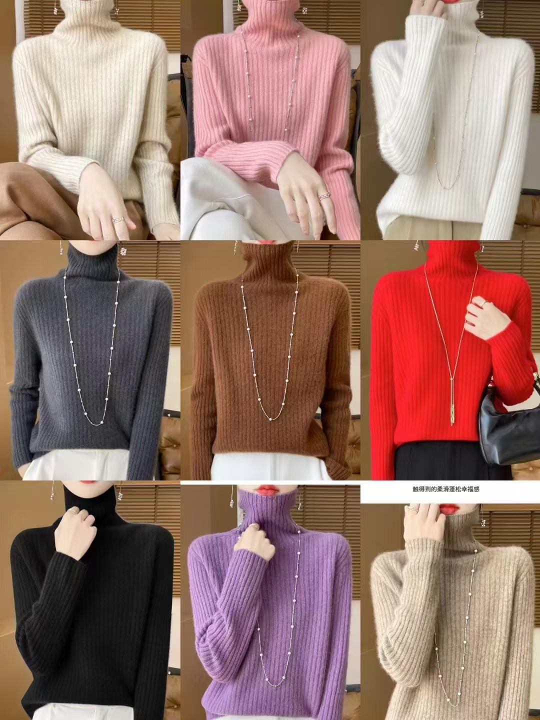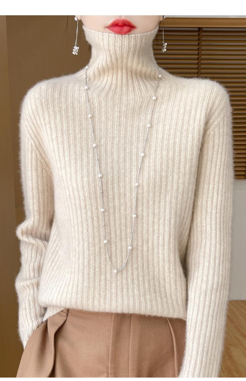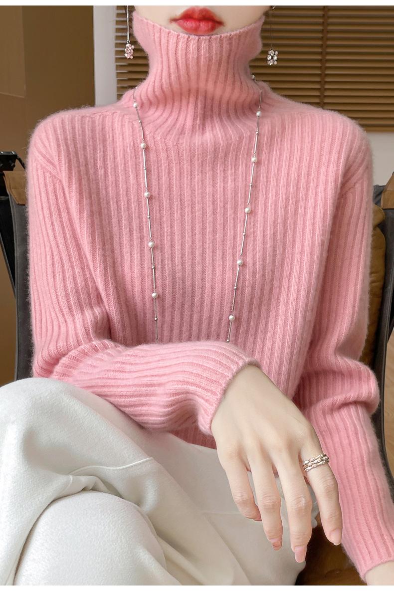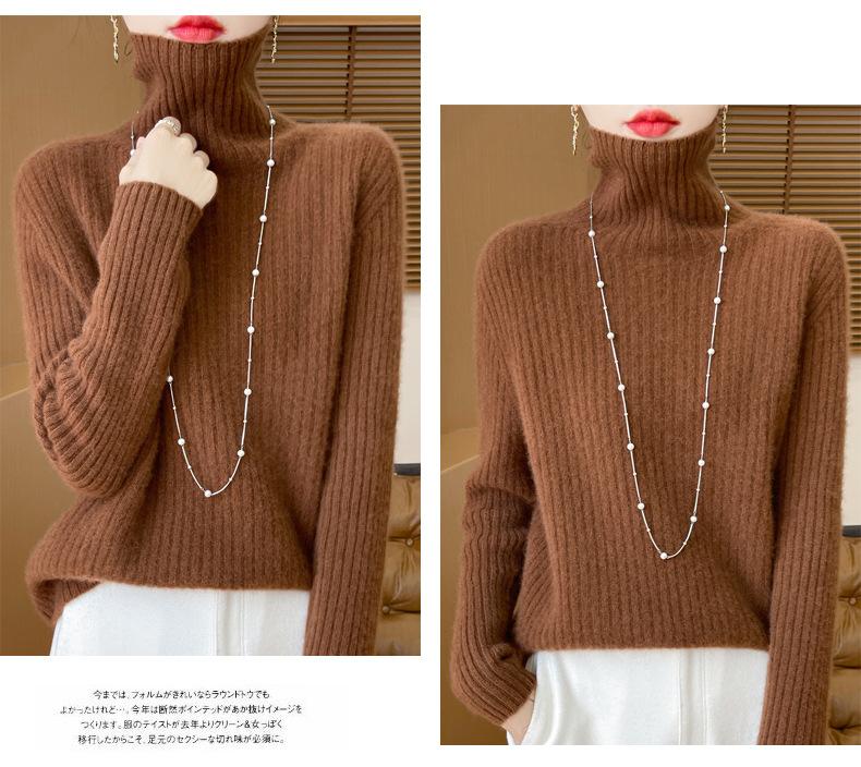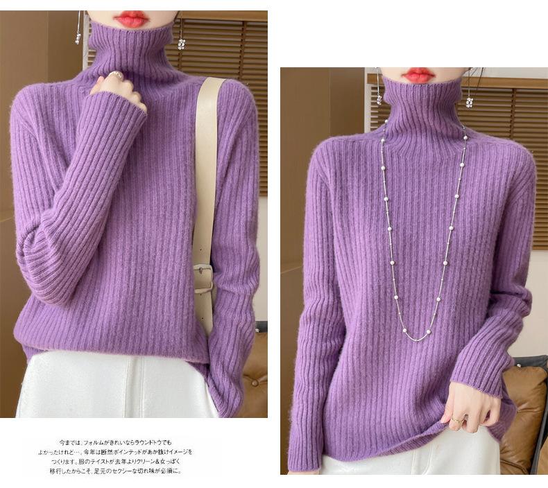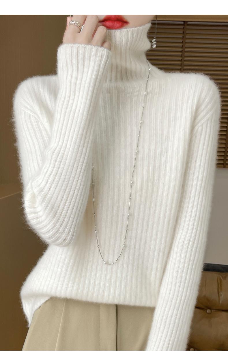 Suéter de cuello alto con dibujo de línea de color sólido nuevo de otoño e invierno, versión coreana de camisa de base de punto cálida de temperamento casual que combina con todo