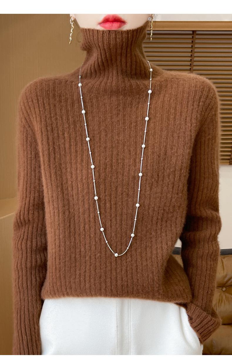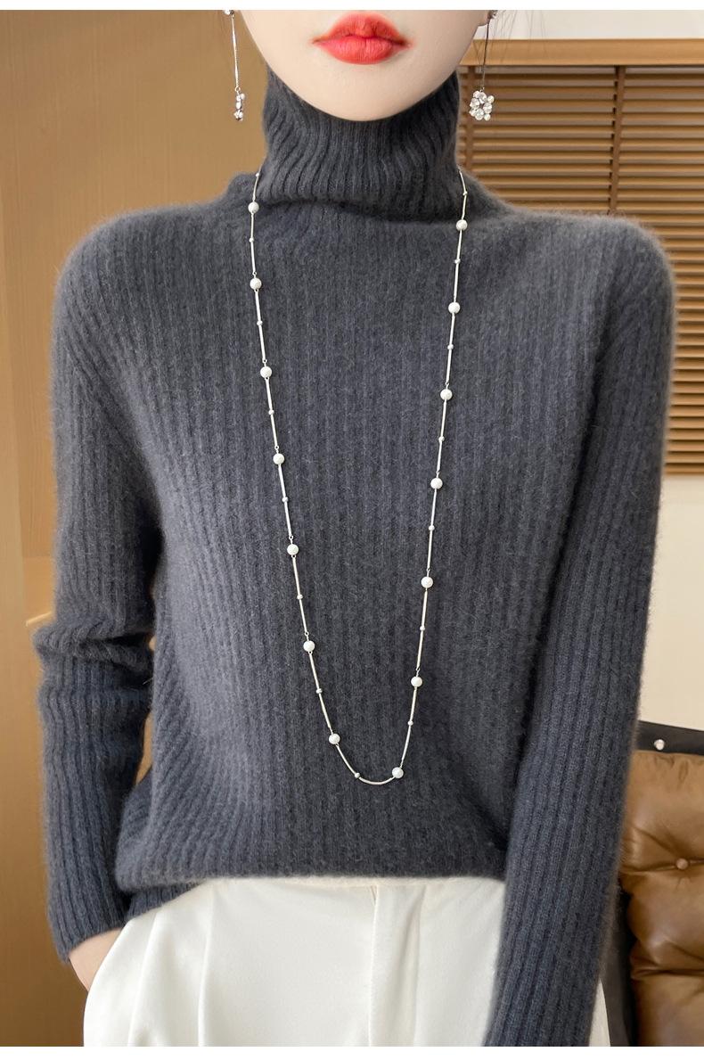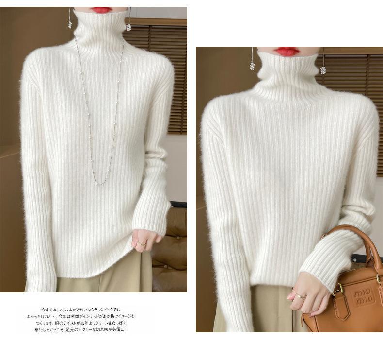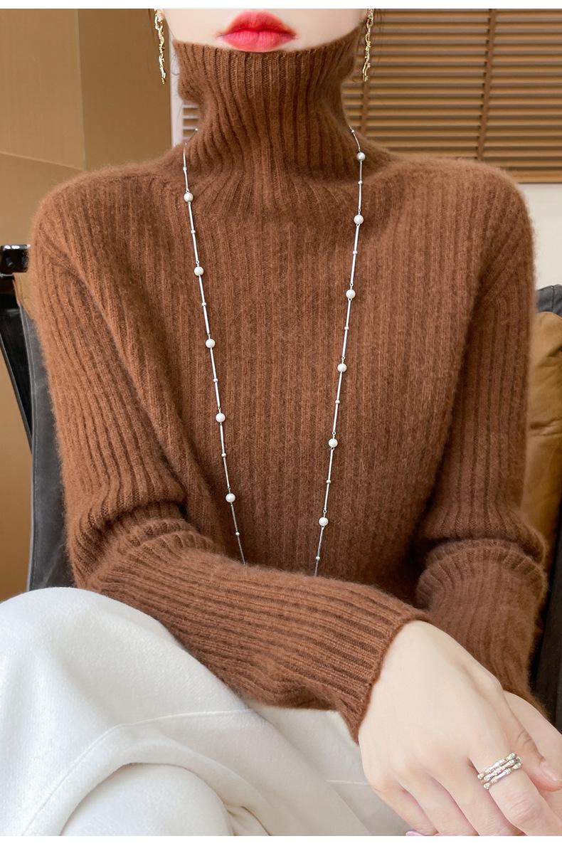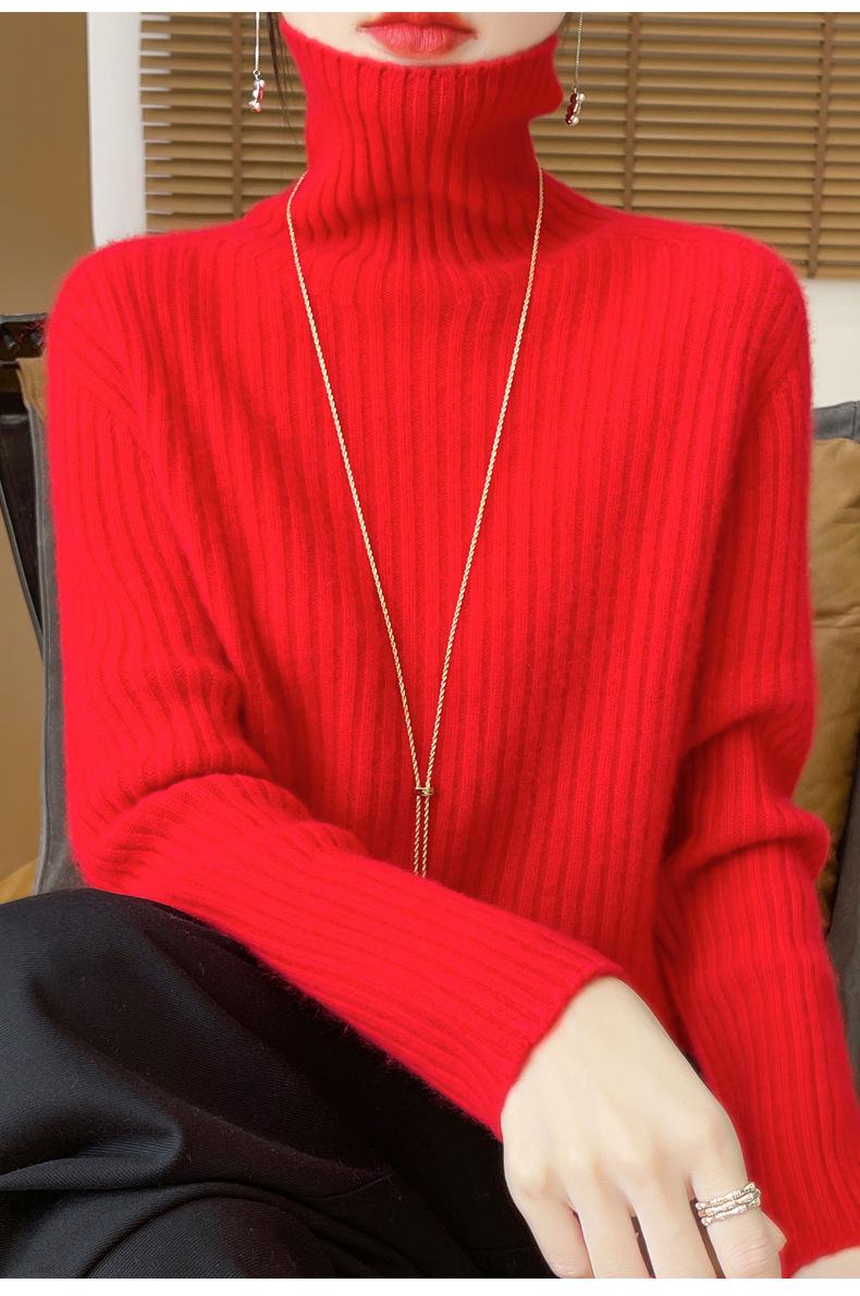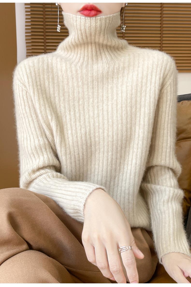 Suéter de cuello alto con dibujo de línea de color sólido nuevo de otoño e invierno, versión coreana de camisa de base de punto cálida de temperamento casual que combina con todo