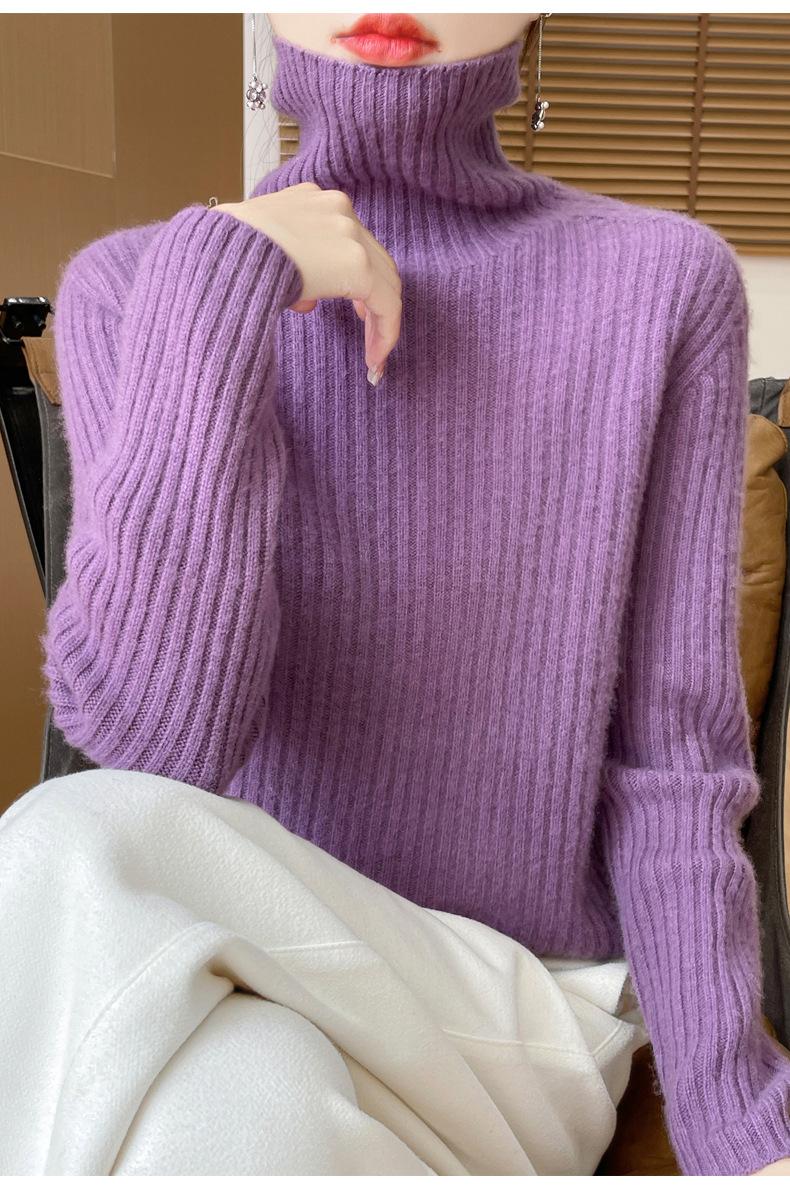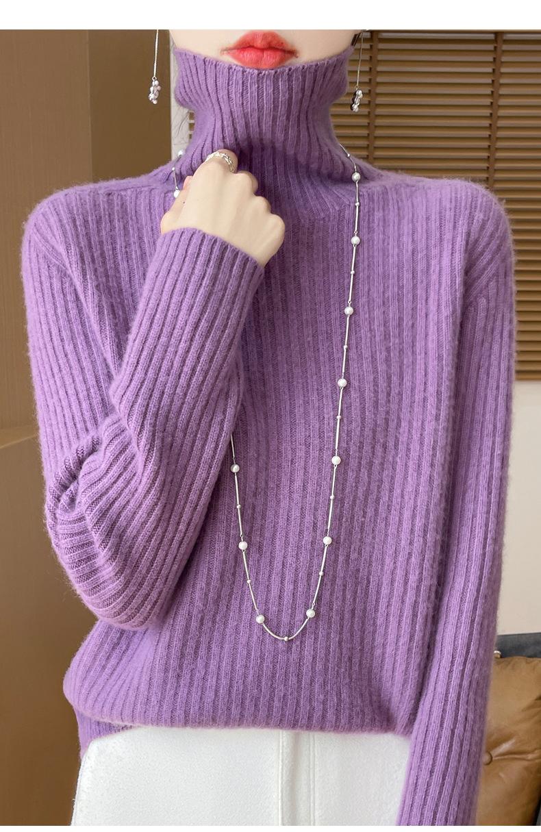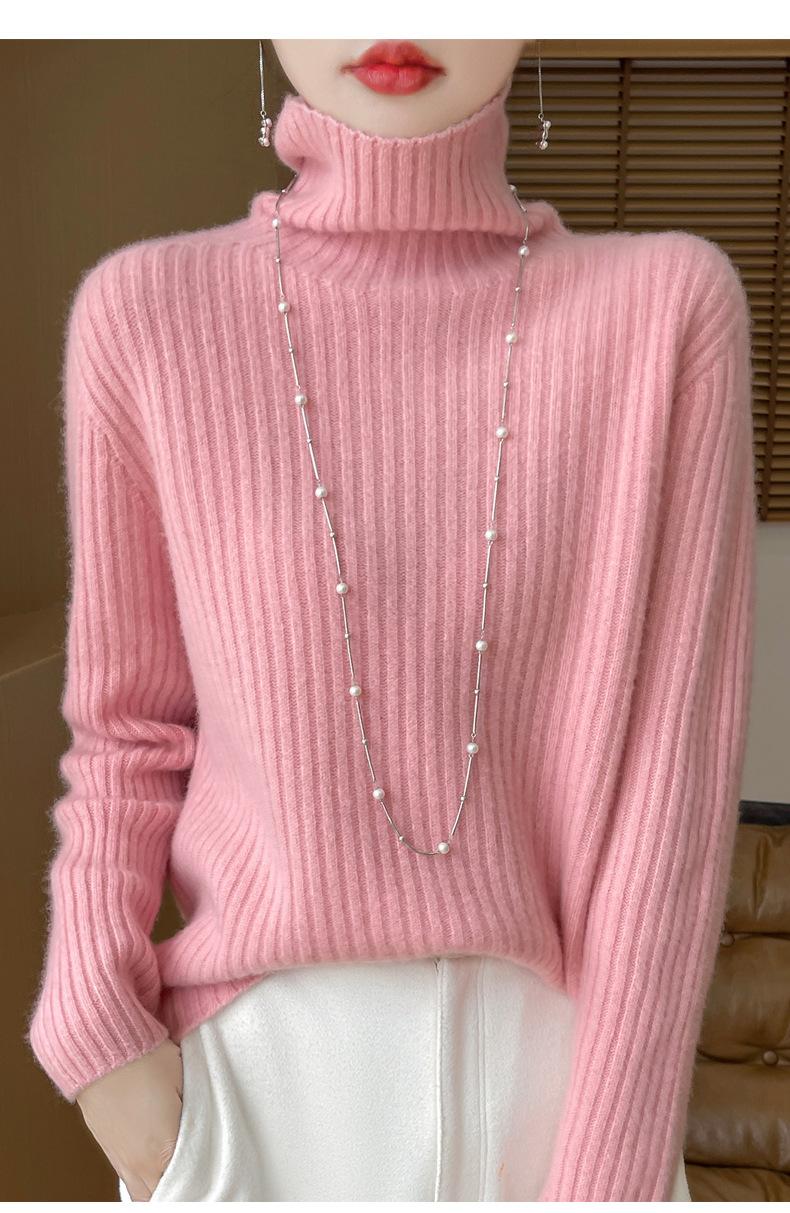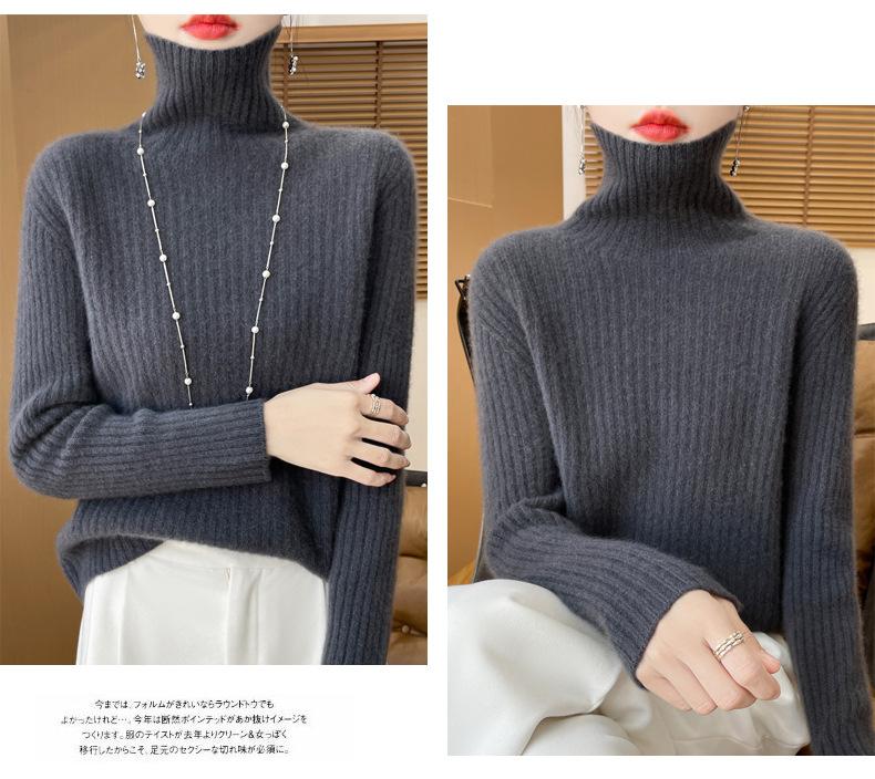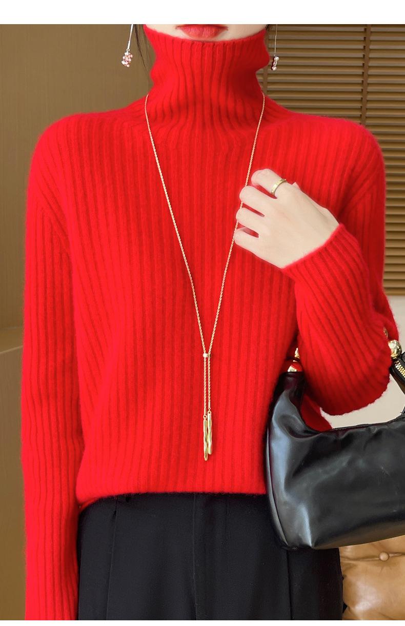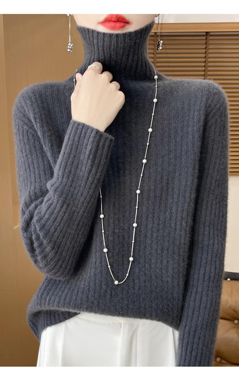 Suéter de cuello alto con dibujo de línea de color sólido nuevo de otoño e invierno, versión coreana de camisa de base de punto cálida de temperamento casual que combina con todo