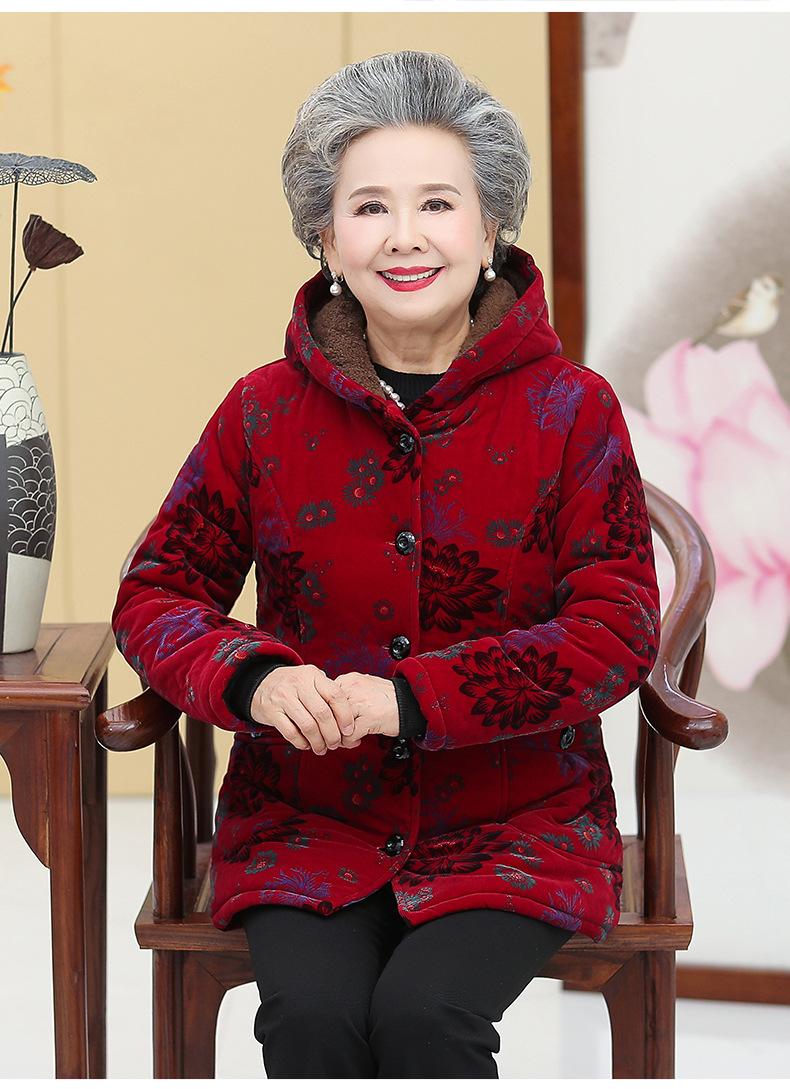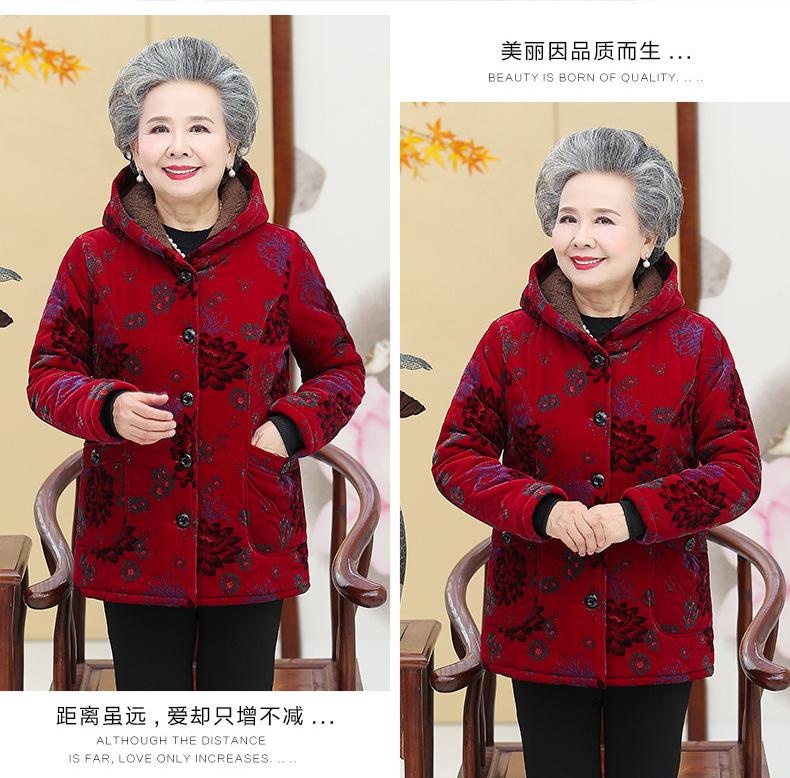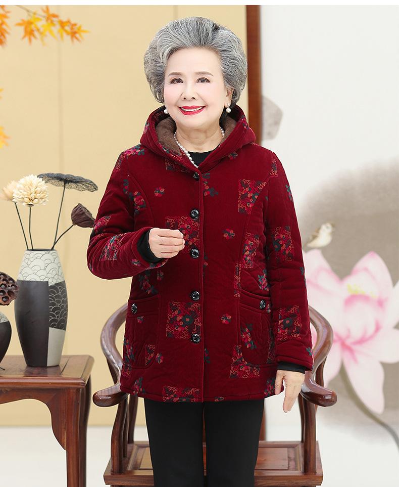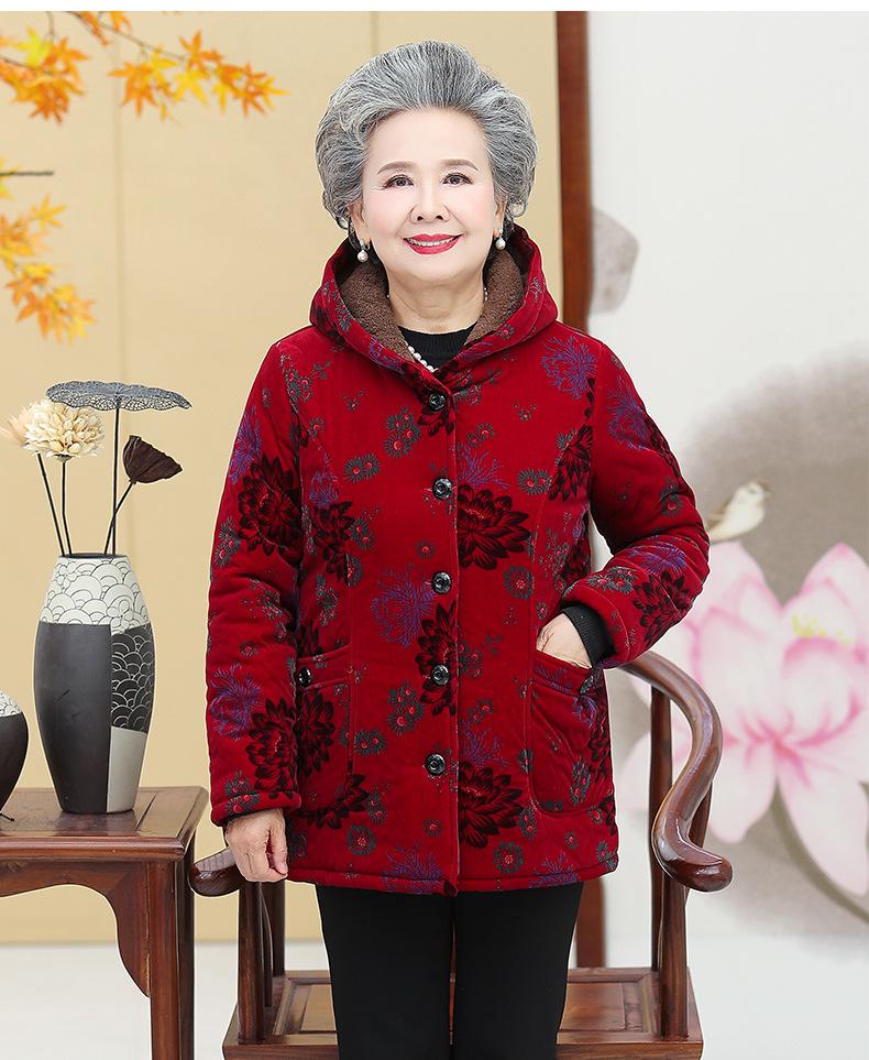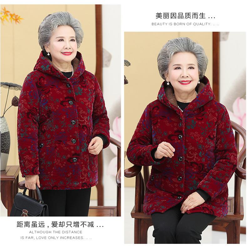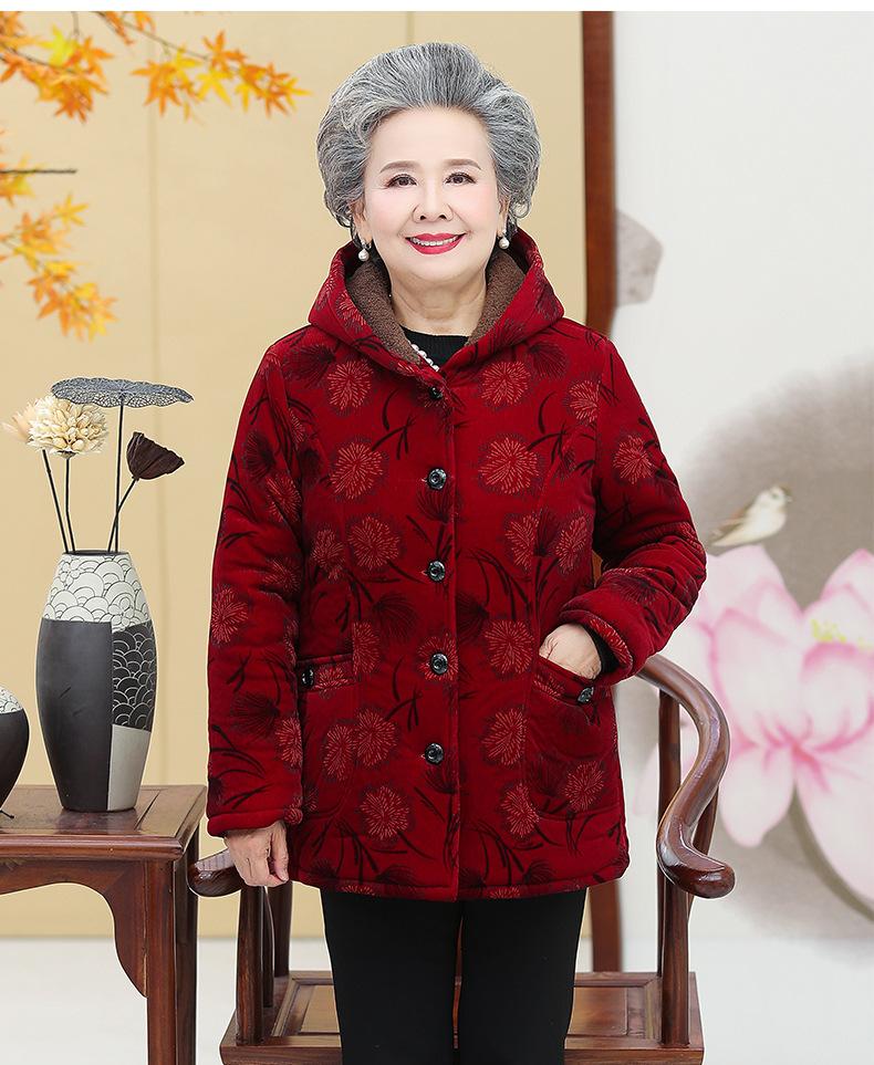 Ropa de Algodón Acolchada de la Abuela Ropa de Invierno para la Mediana Edad y Adultos Mayores Forro Polar Abrigo Grueso Ropa de Madre para Mujer Abrigo Cálido de Algodón Acolchado para Adultos Mayores Abrigo Acolchado de Algodón con Capucha