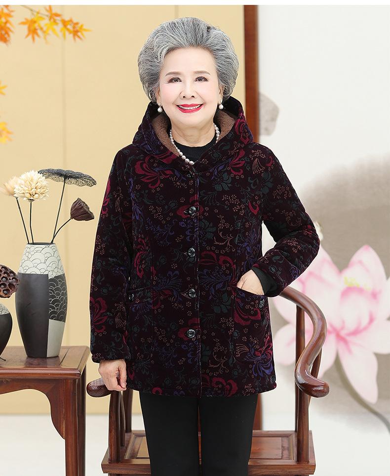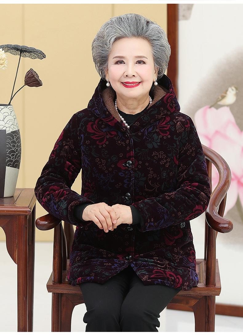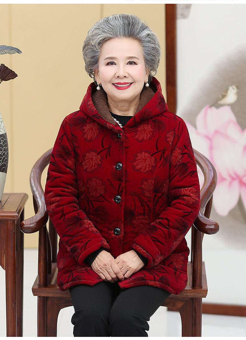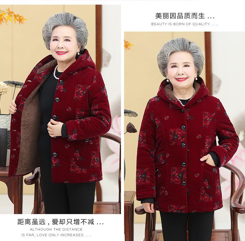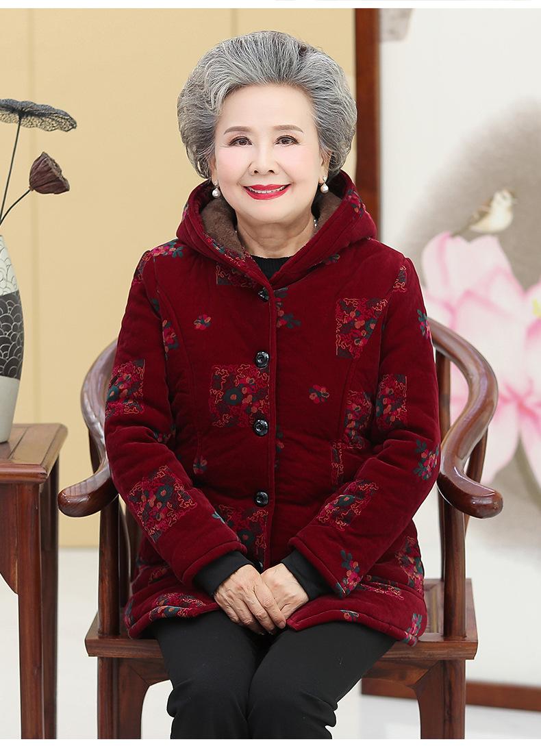 Ropa de Algodón Acolchada de la Abuela Ropa de Invierno para la Mediana Edad y Adultos Mayores Forro Polar Abrigo Grueso Ropa de Madre para Mujer Abrigo Cálido de Algodón Acolchado para Adultos Mayores Abrigo Acolchado de Algodón con Capucha