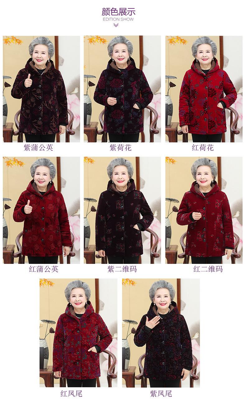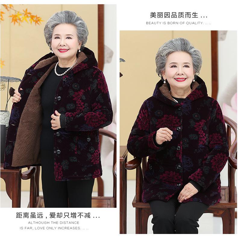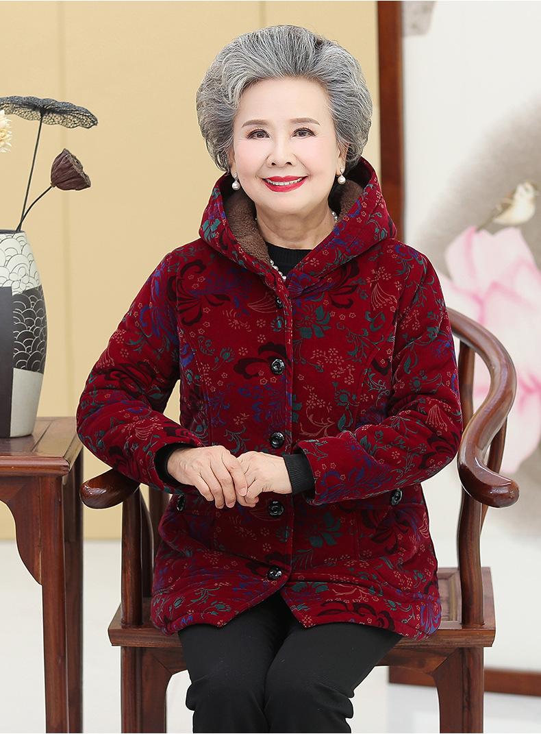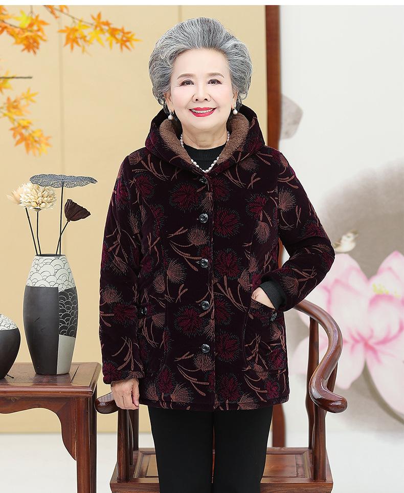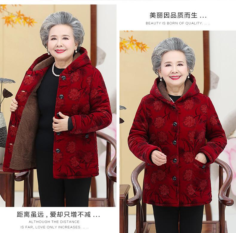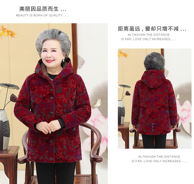 Ropa de Algodón Acolchada de la Abuela Ropa de Invierno para la Mediana Edad y Adultos Mayores Forro Polar Abrigo Grueso Ropa de Madre para Mujer Abrigo Cálido de Algodón Acolchado para Adultos Mayores Abrigo Acolchado de Algodón con Capucha