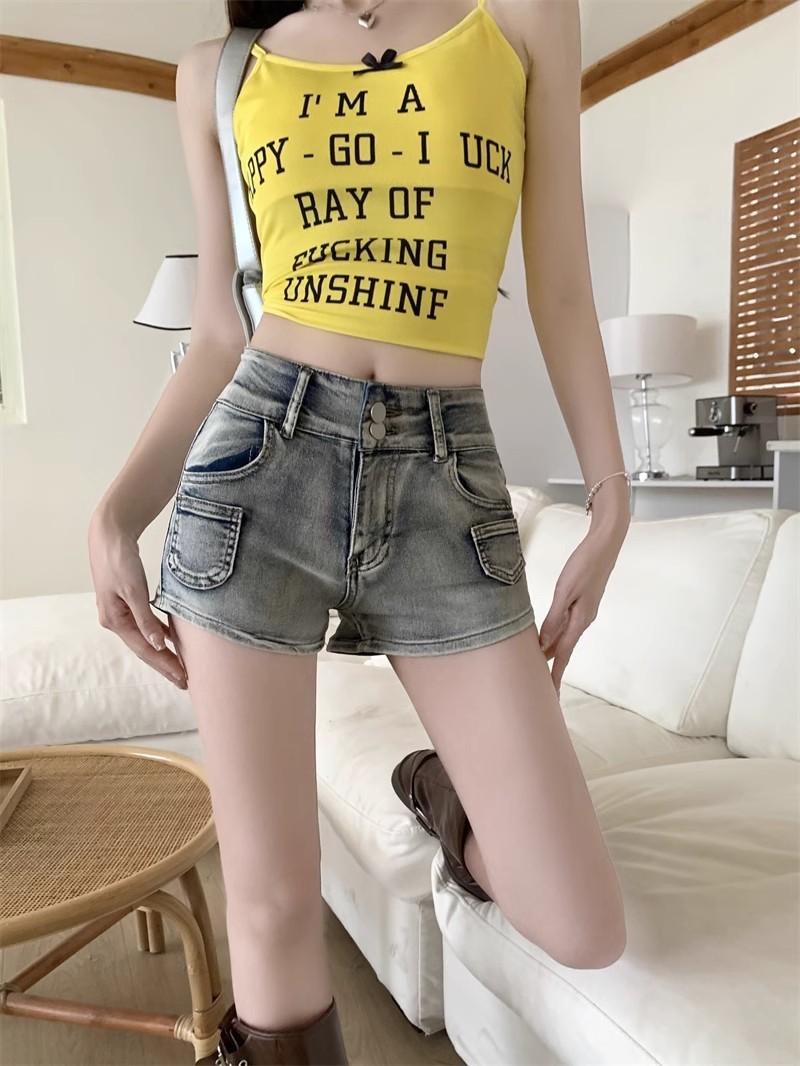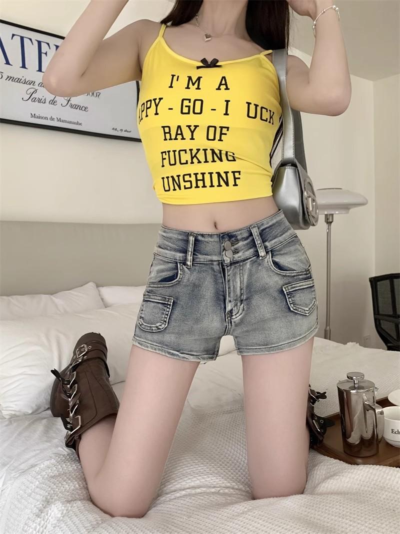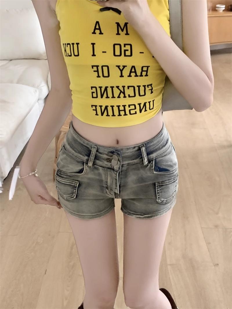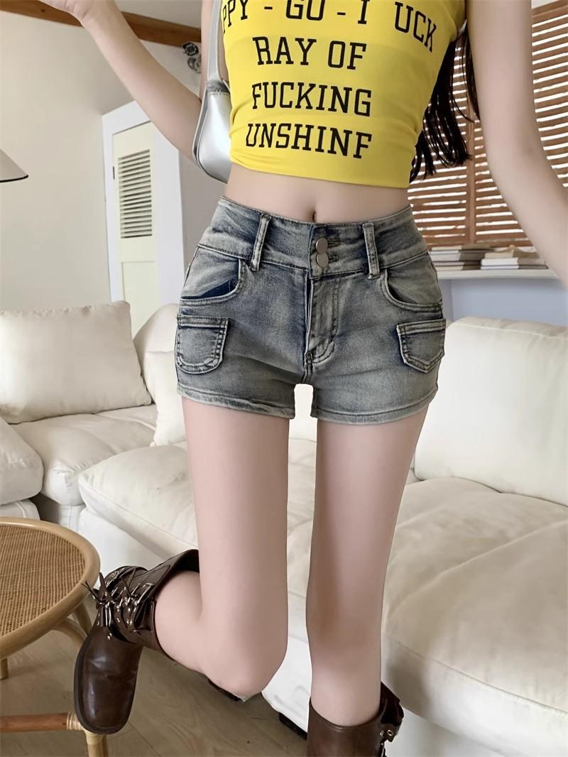 Pantalones cortos vaqueros retro elásticos para mujer, de verano, de cintura baja, ajustados, rectos y de pierna ancha.