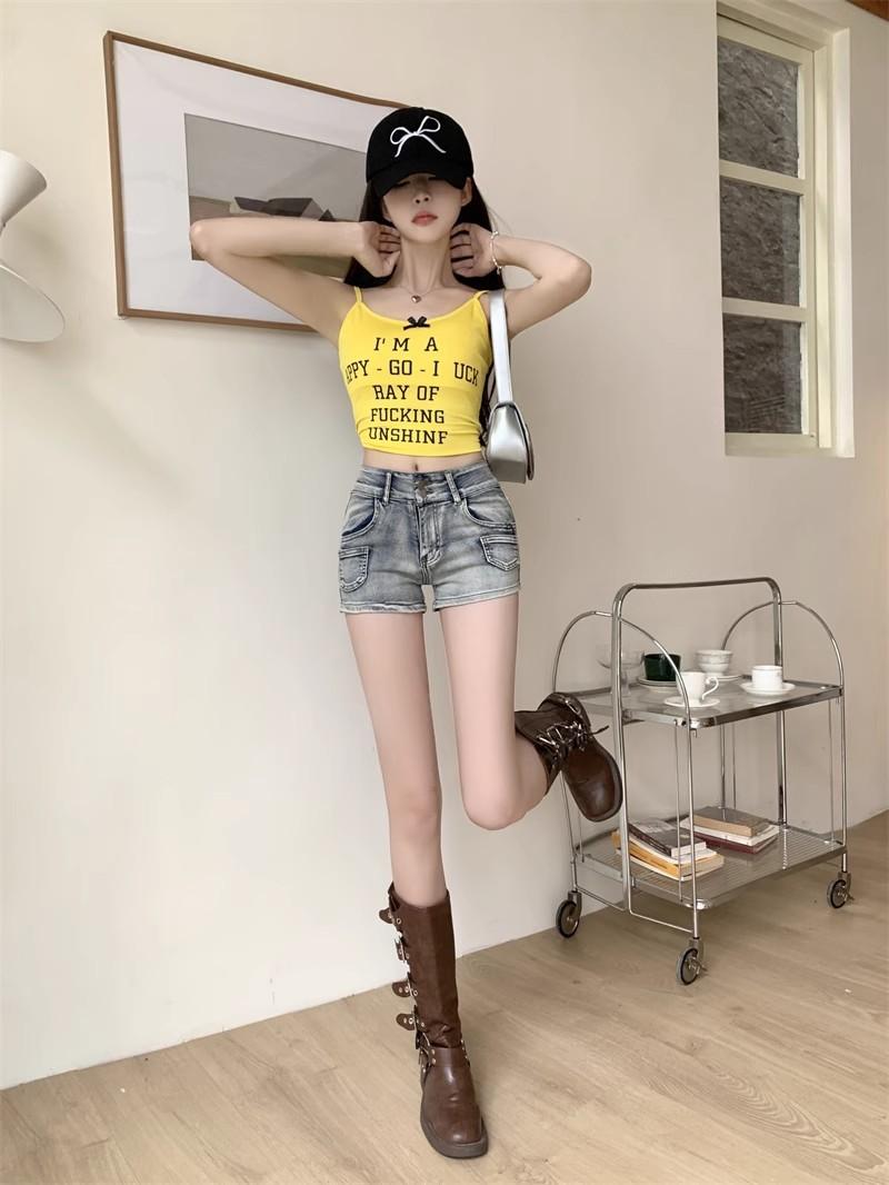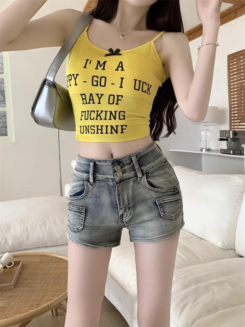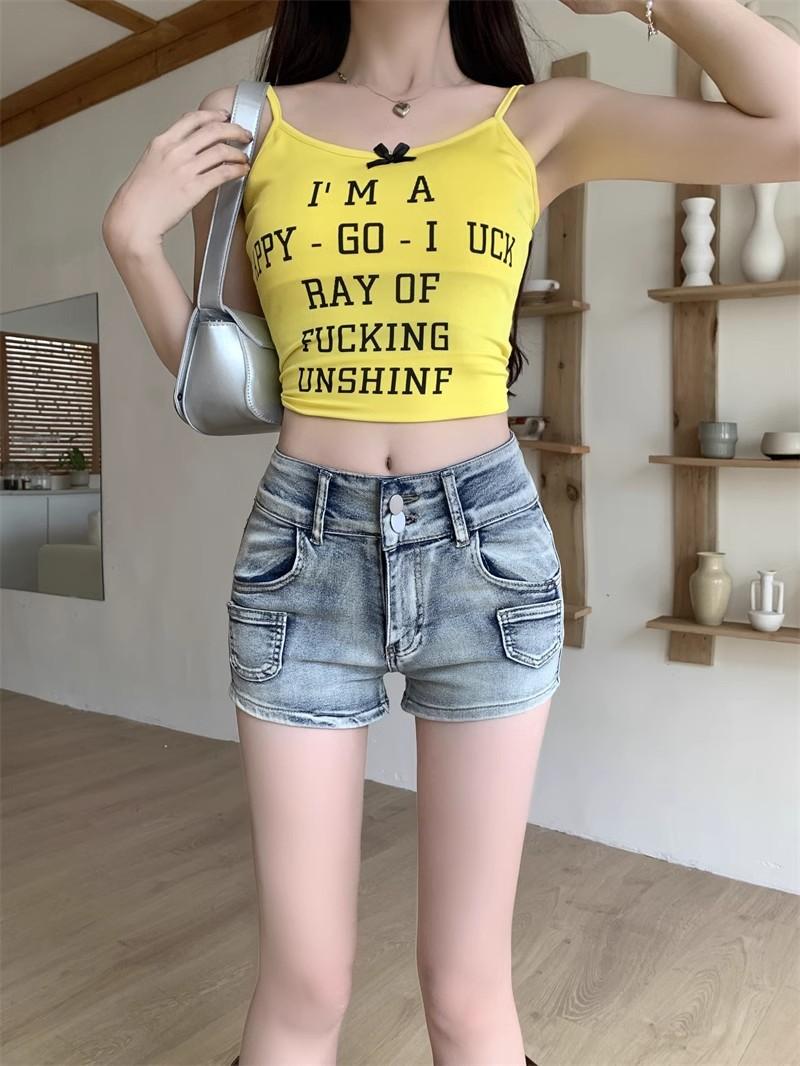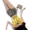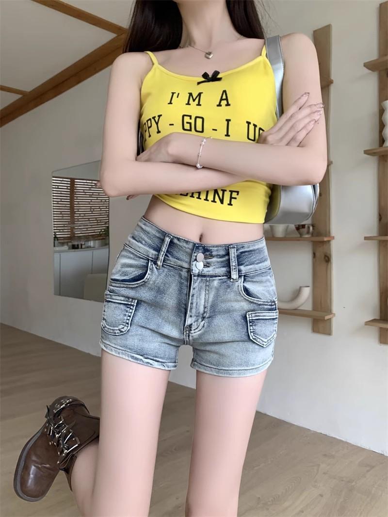 Pantalones cortos vaqueros retro elásticos para mujer, de verano, de cintura baja, ajustados, rectos y de pierna ancha.