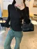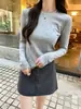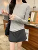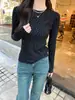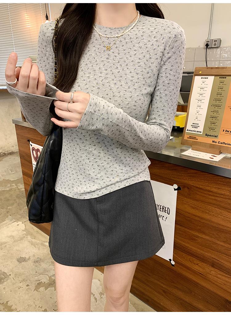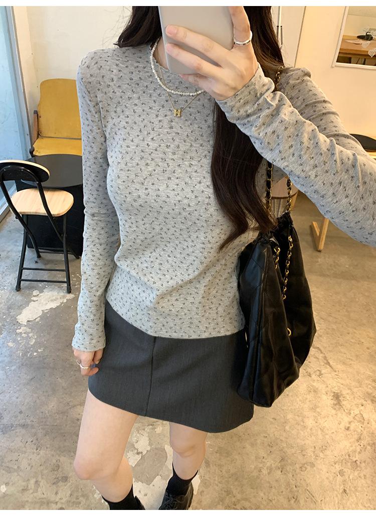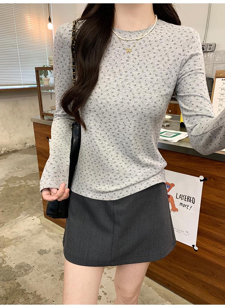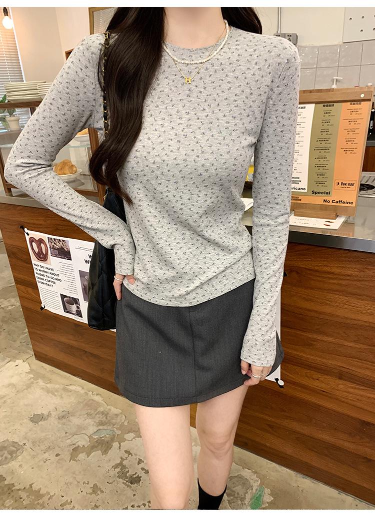 Camiseta de algodón ajustada con hombros descubiertos y estampado floral pequeño estilo coreano, nueva camiseta de manga larga con cuello redondo para mujer, otoño 2024
