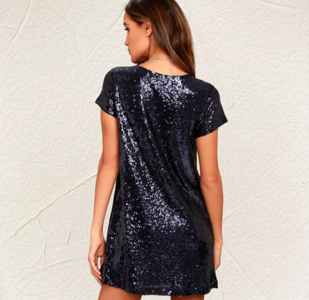 Falda corta informal de fiesta con lentejuelas y cuello en V para mujer, ajustada, linda y divertida, de moda, 2023