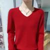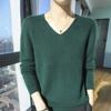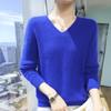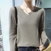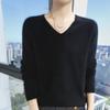 Suéter de cachemira de punto con base de lana y cuello en V para mujer, jersey corto de color liso sin costuras de visón, holgado, para otoño e invierno.