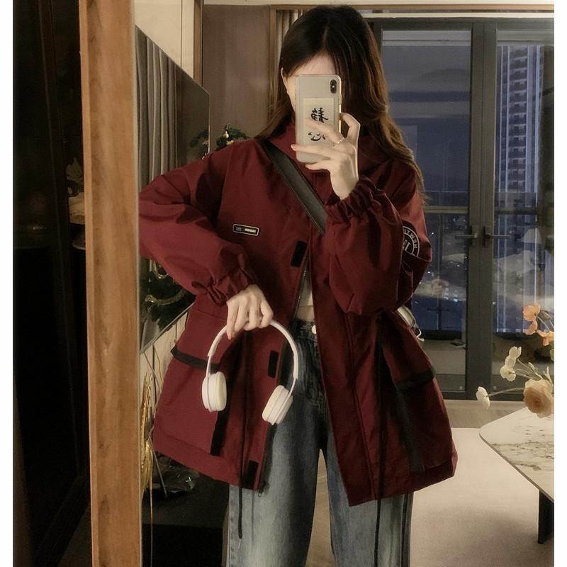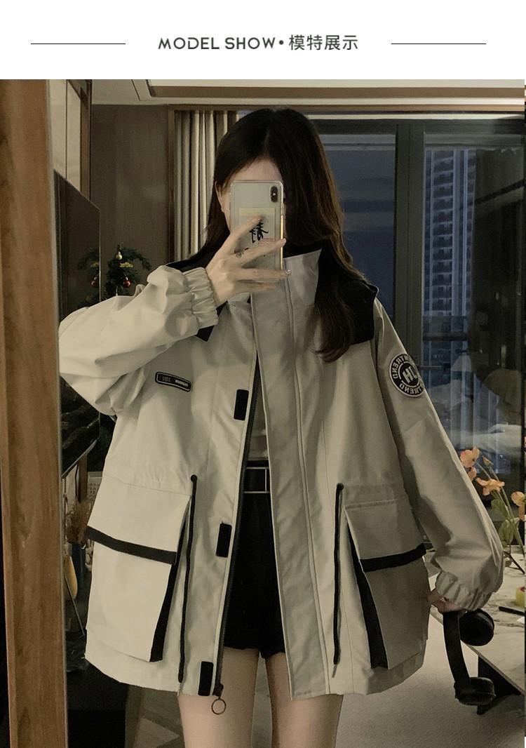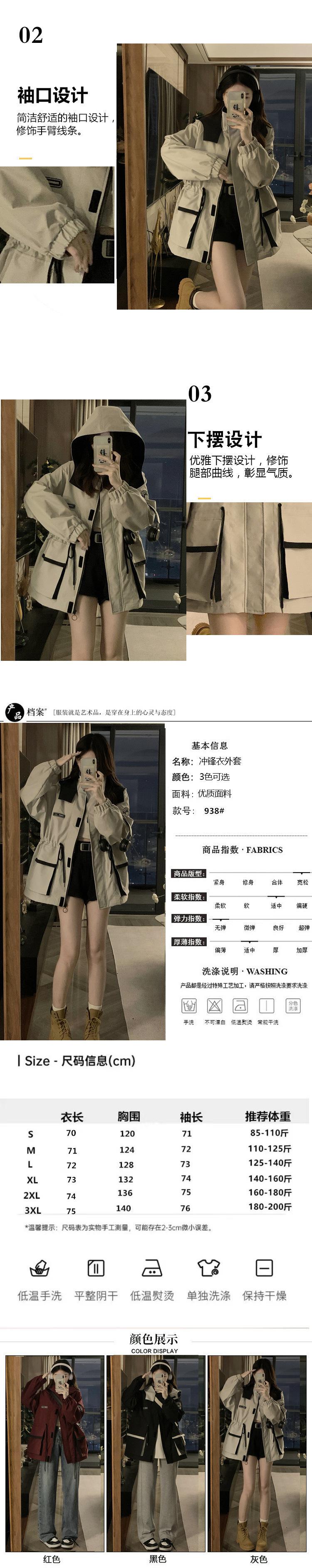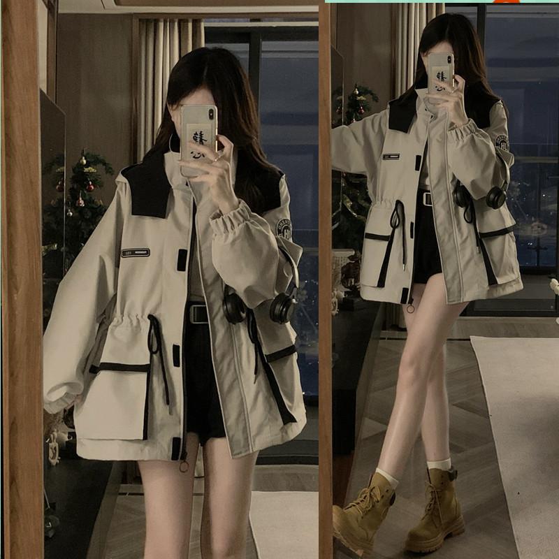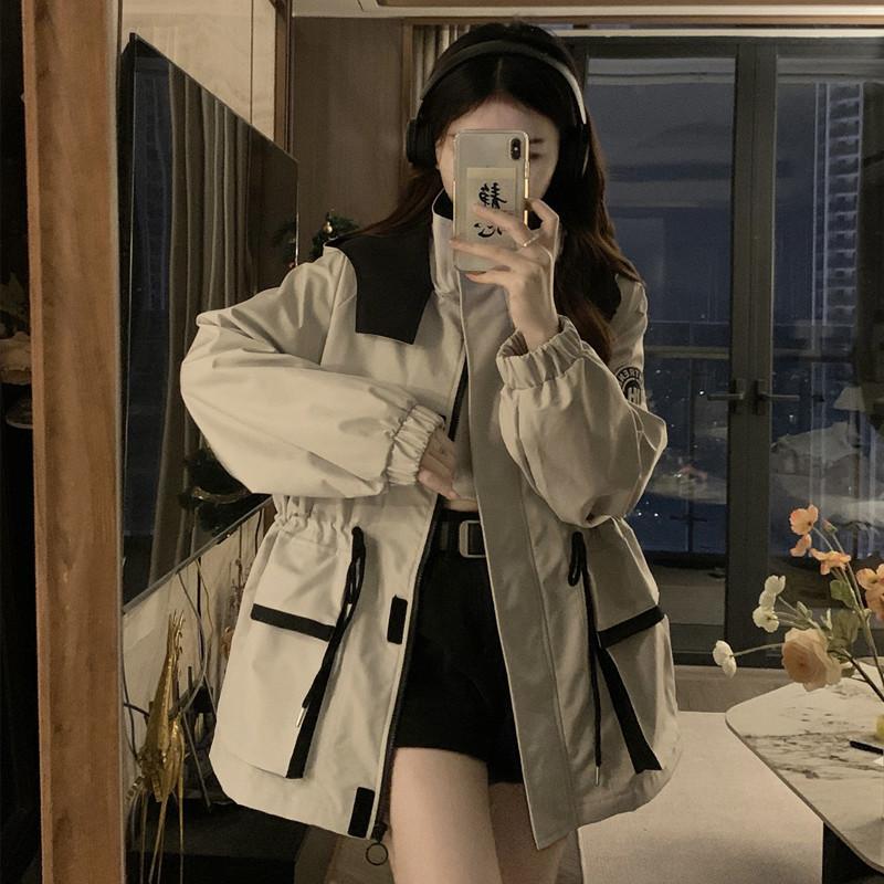 Rompevientos de Largo Medio para Mujer Cintura Ajustada Primavera y Otoño Nuevo Chaqueta Holgada Casual con Bloques de Color para Mujeres Pequeñas Chaqueta Impermeable