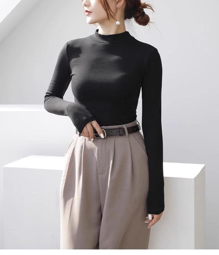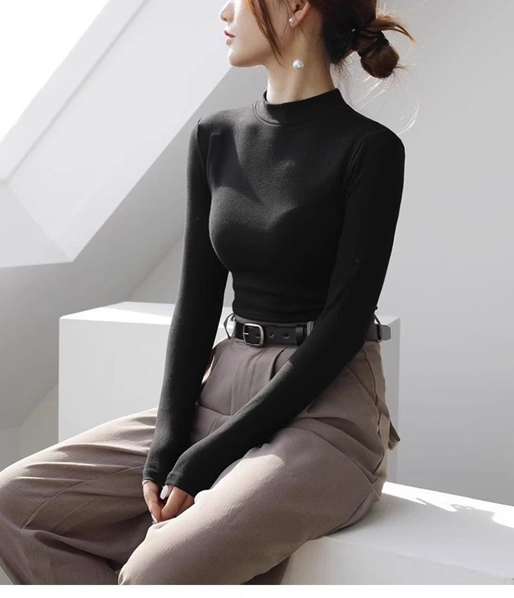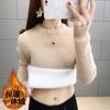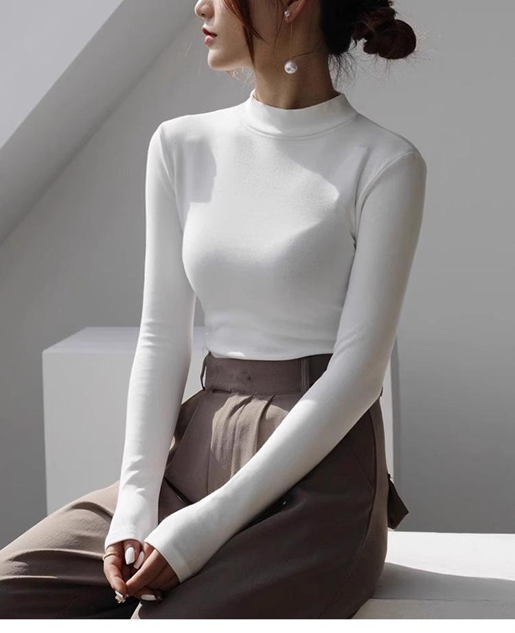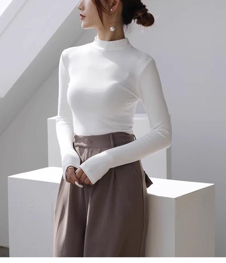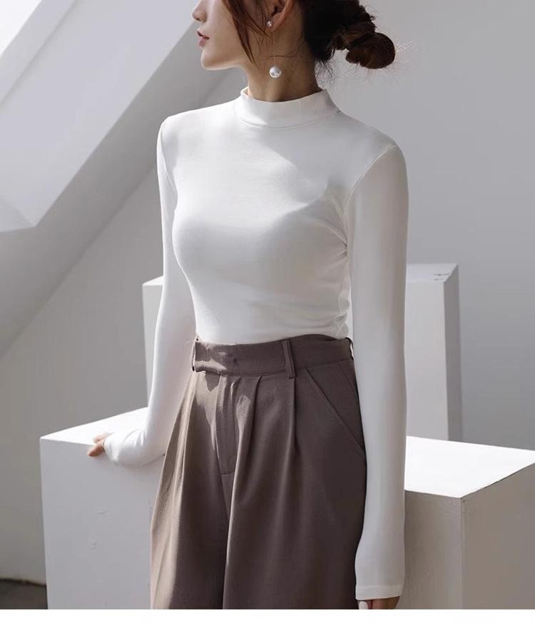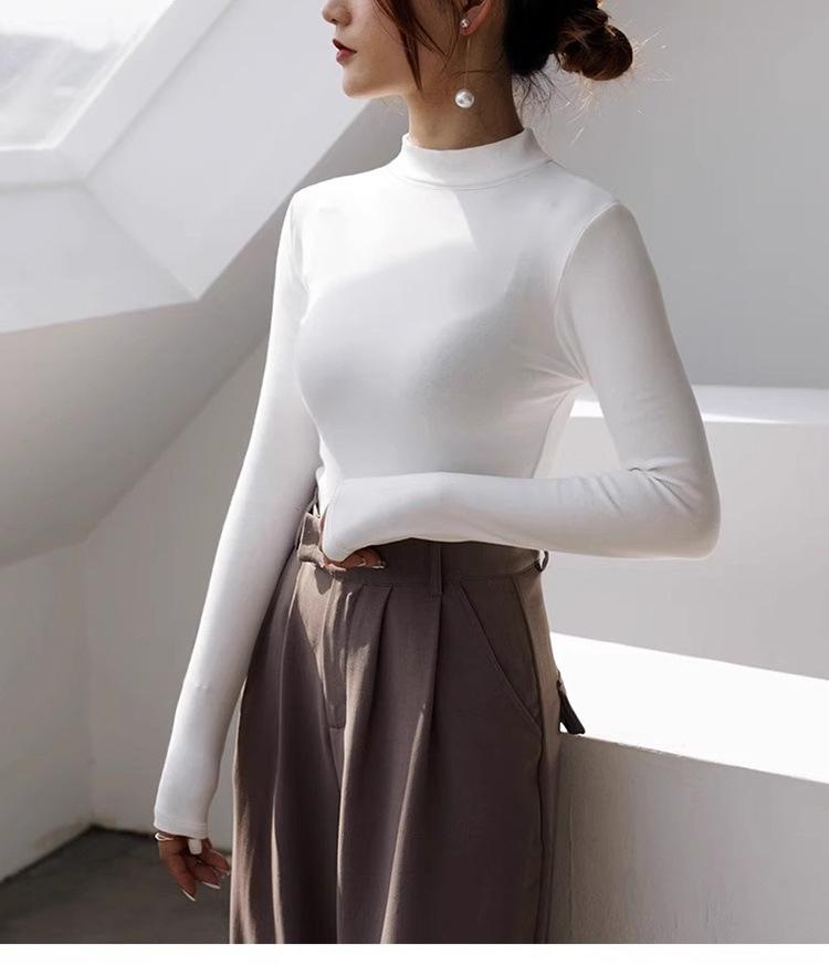 Camisa de terciopelo para mujer, otoño e invierno, blanca, con forro polar interior, gruesa, de alta gama, de manga larga, cuello medio alto, corte entallado.