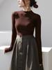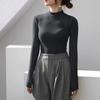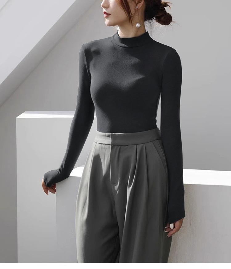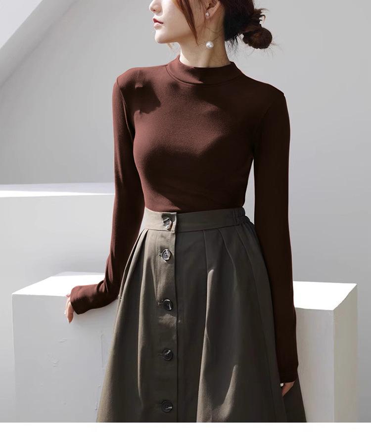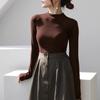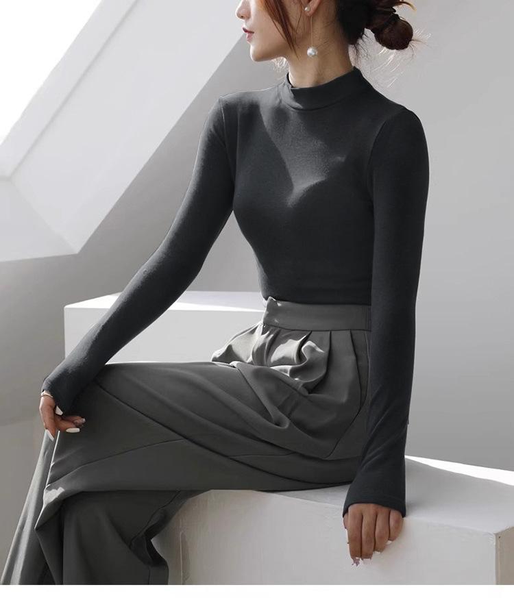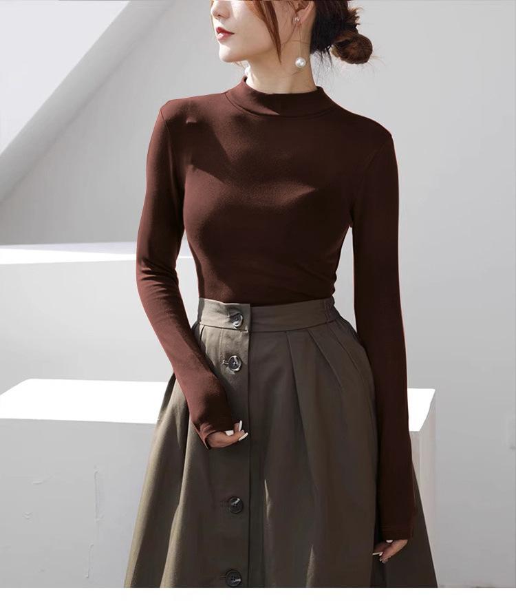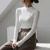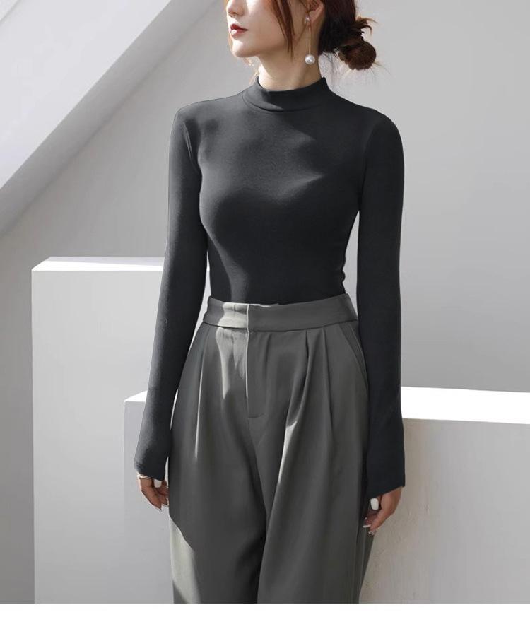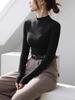 Camisa de terciopelo para mujer, otoño e invierno, blanca, con forro polar interior, gruesa, de alta gama, de manga larga, cuello medio alto, corte entallado.