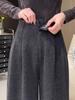 Pantalones casuales grises para mujer, otoño e invierno 2024, nuevos pantalones adelgazantes de cintura alta con forro polar, holgados, rectos, estrechos y de pierna ancha.