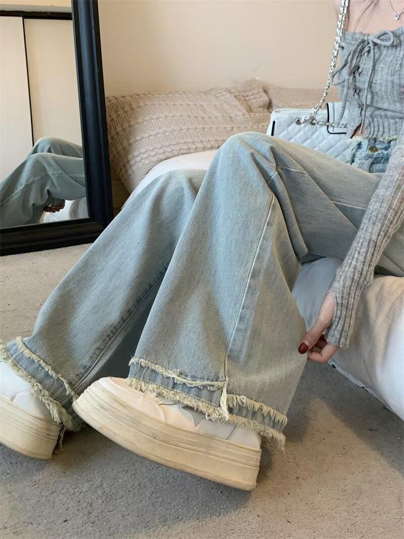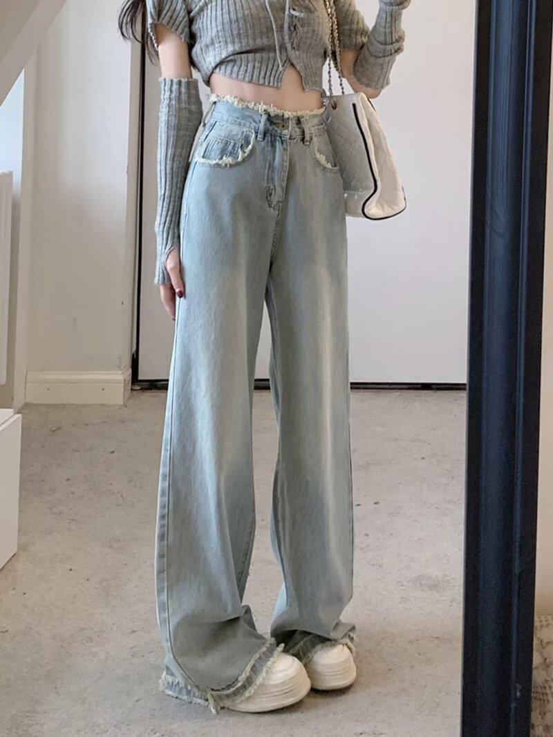 Pantalones vaqueros de pierna ancha y cintura alta de color claro para mujer 2024, rectos, sueltos, nuevos, de primavera y otoño, de aspecto ajustado, pantalones pequeños