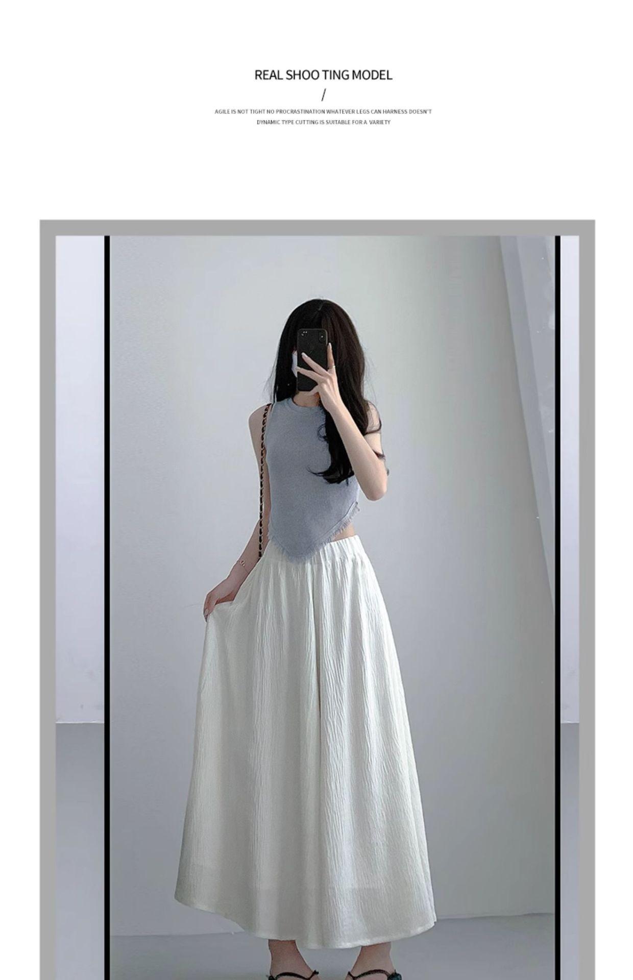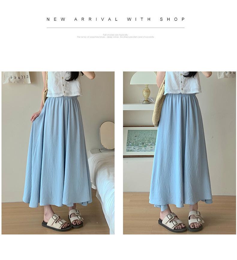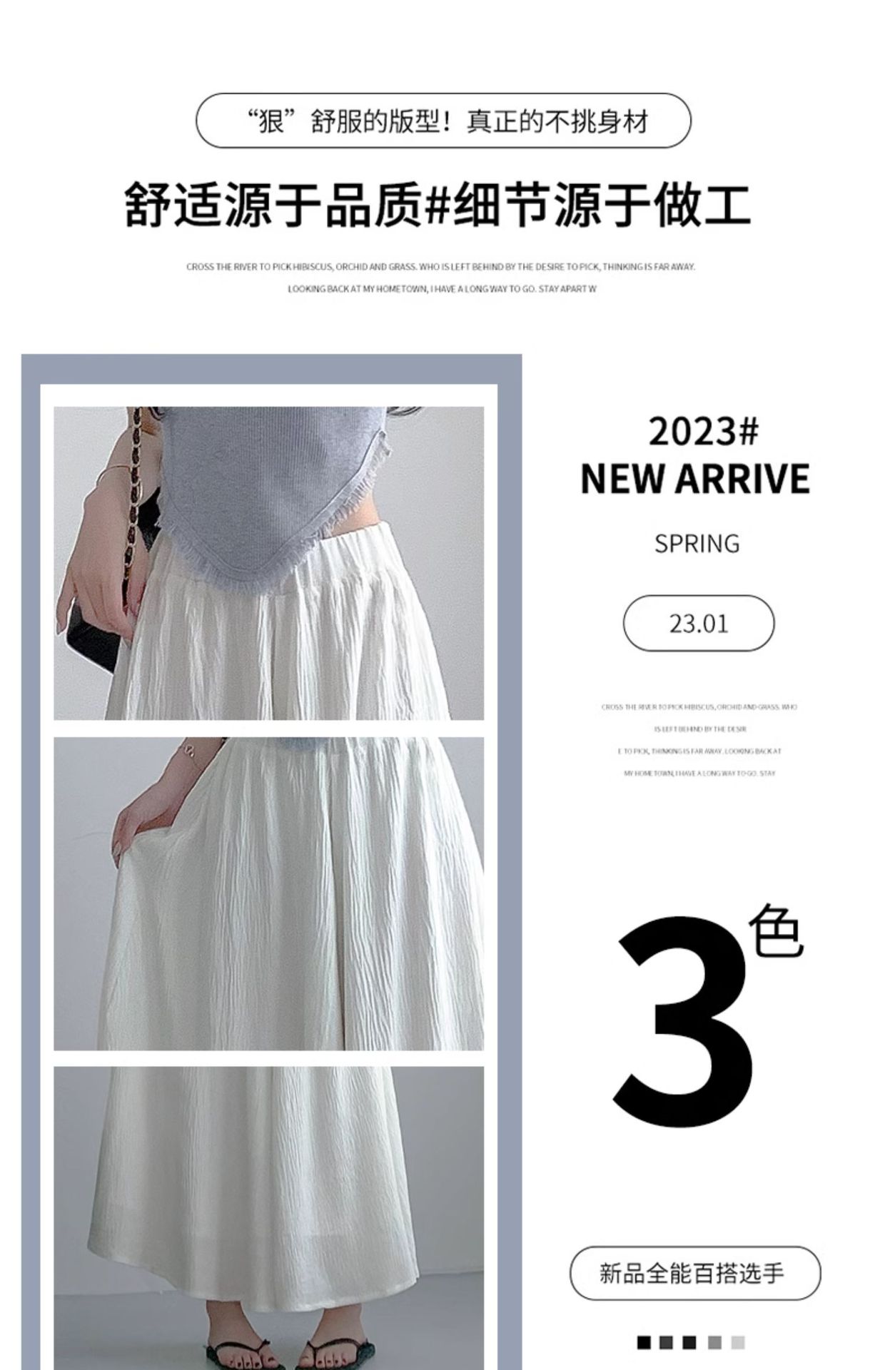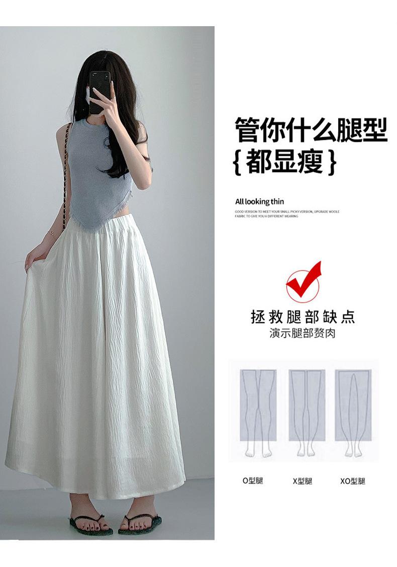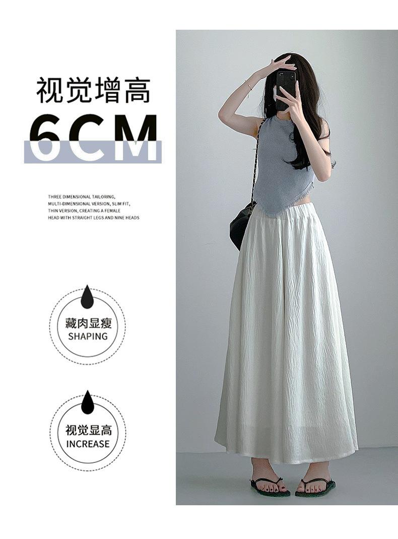 Falda plisada de seda de hielo para mujer, verano 2023, nueva llegada, plisada, corte A, media longitud, informal, combinable, cintura alta, drapeada, pierna ancha.