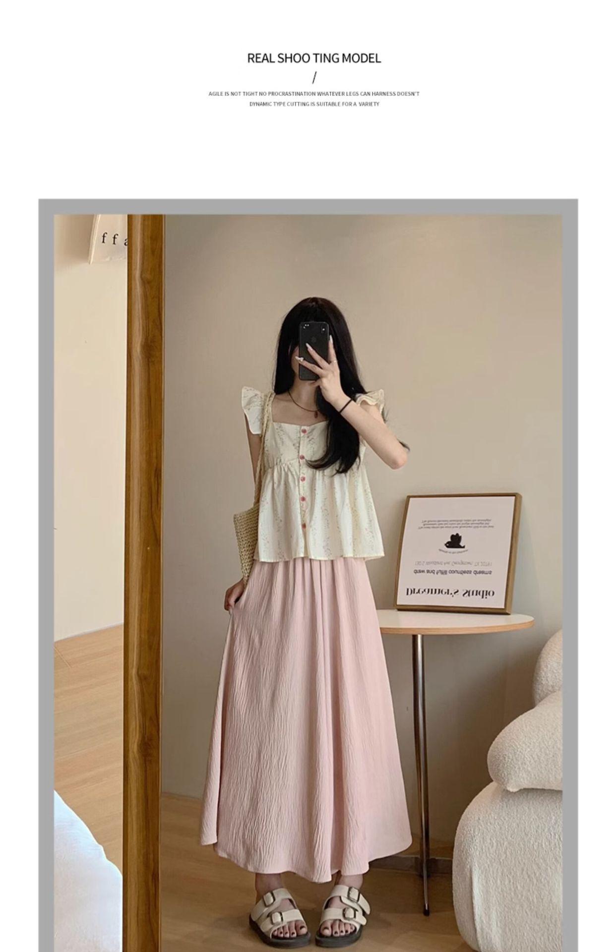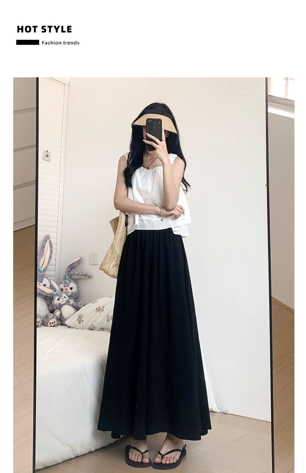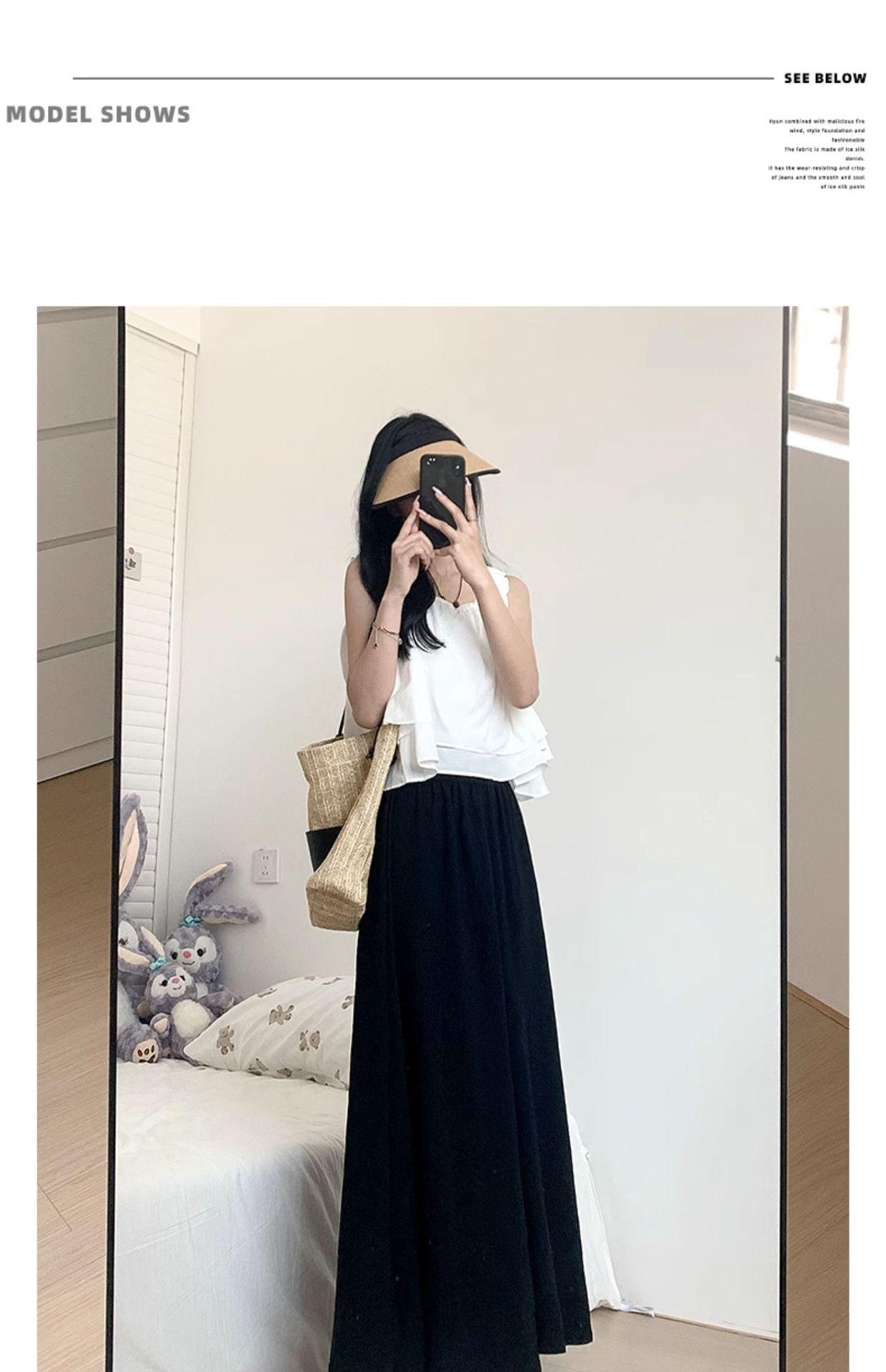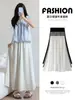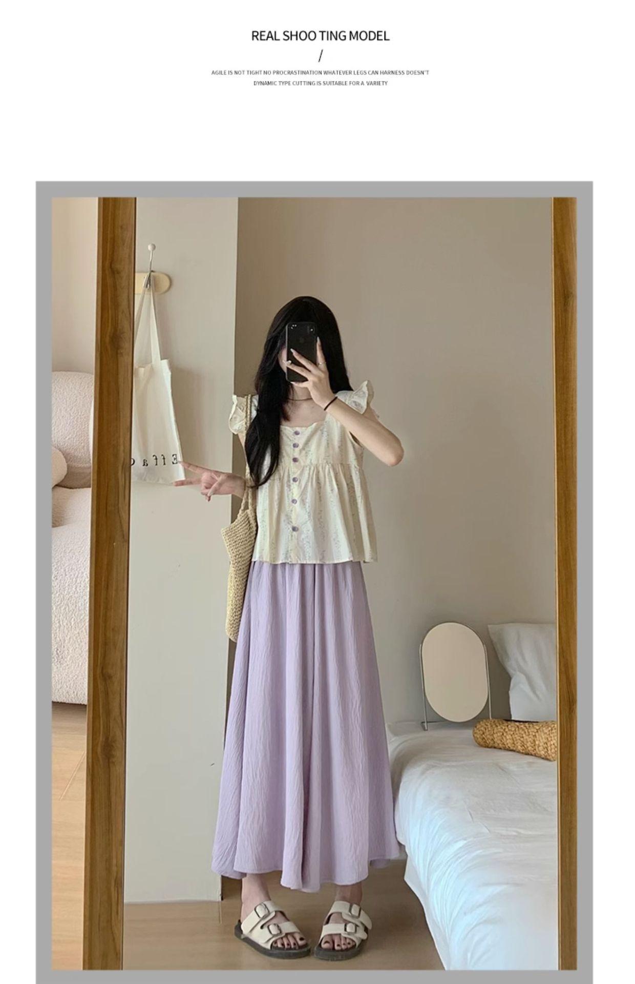 Falda plisada de seda de hielo para mujer, verano 2023, nueva llegada, plisada, corte A, media longitud, informal, combinable, cintura alta, drapeada, pierna ancha.