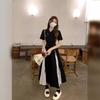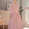 Nuevo vestido chino de punto rosa con costuras, temperamento suave, retro, de alta gama, estilo nacional, con hebilla y cintura ajustada.