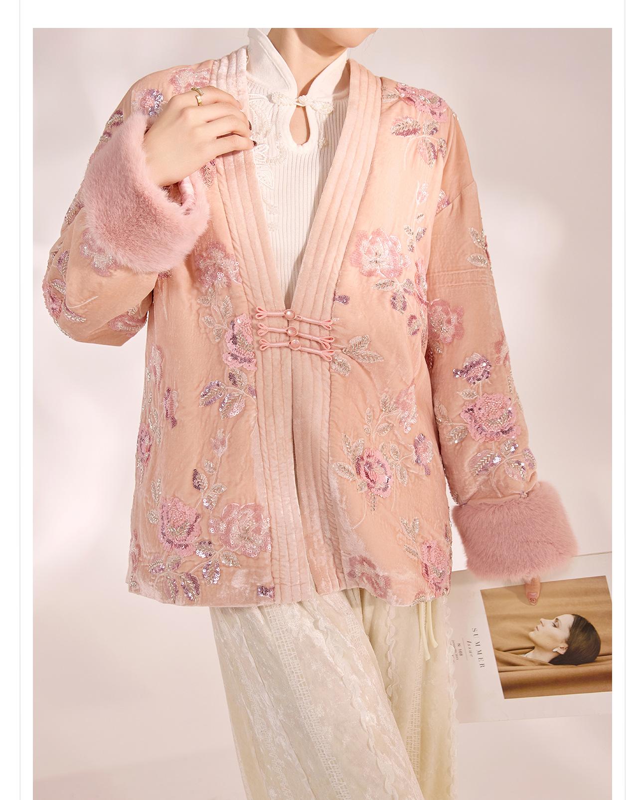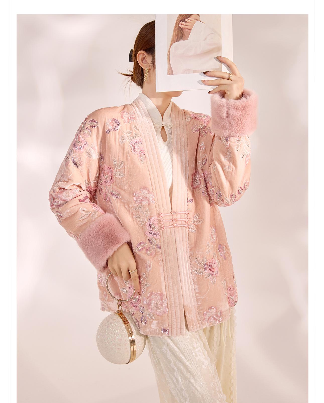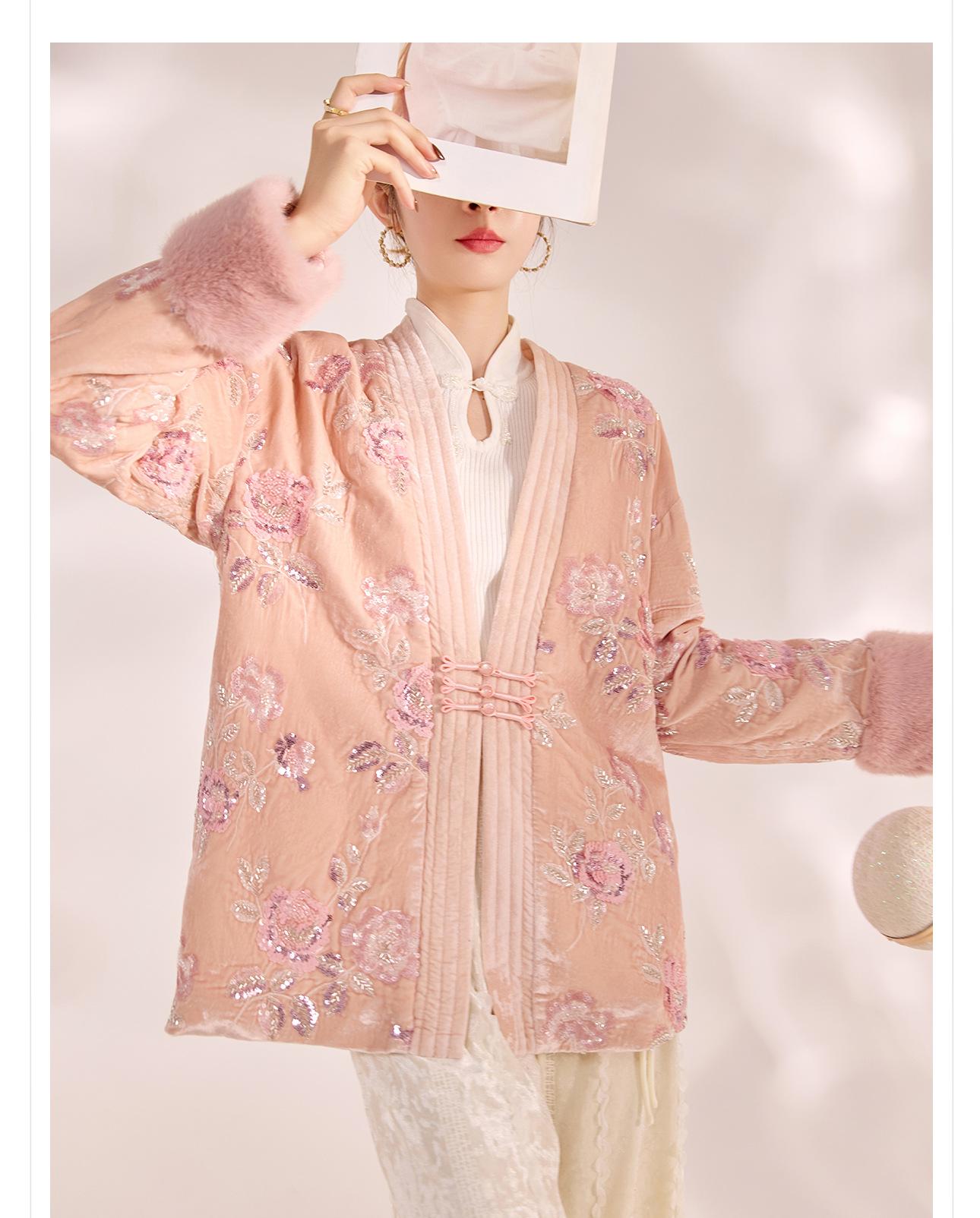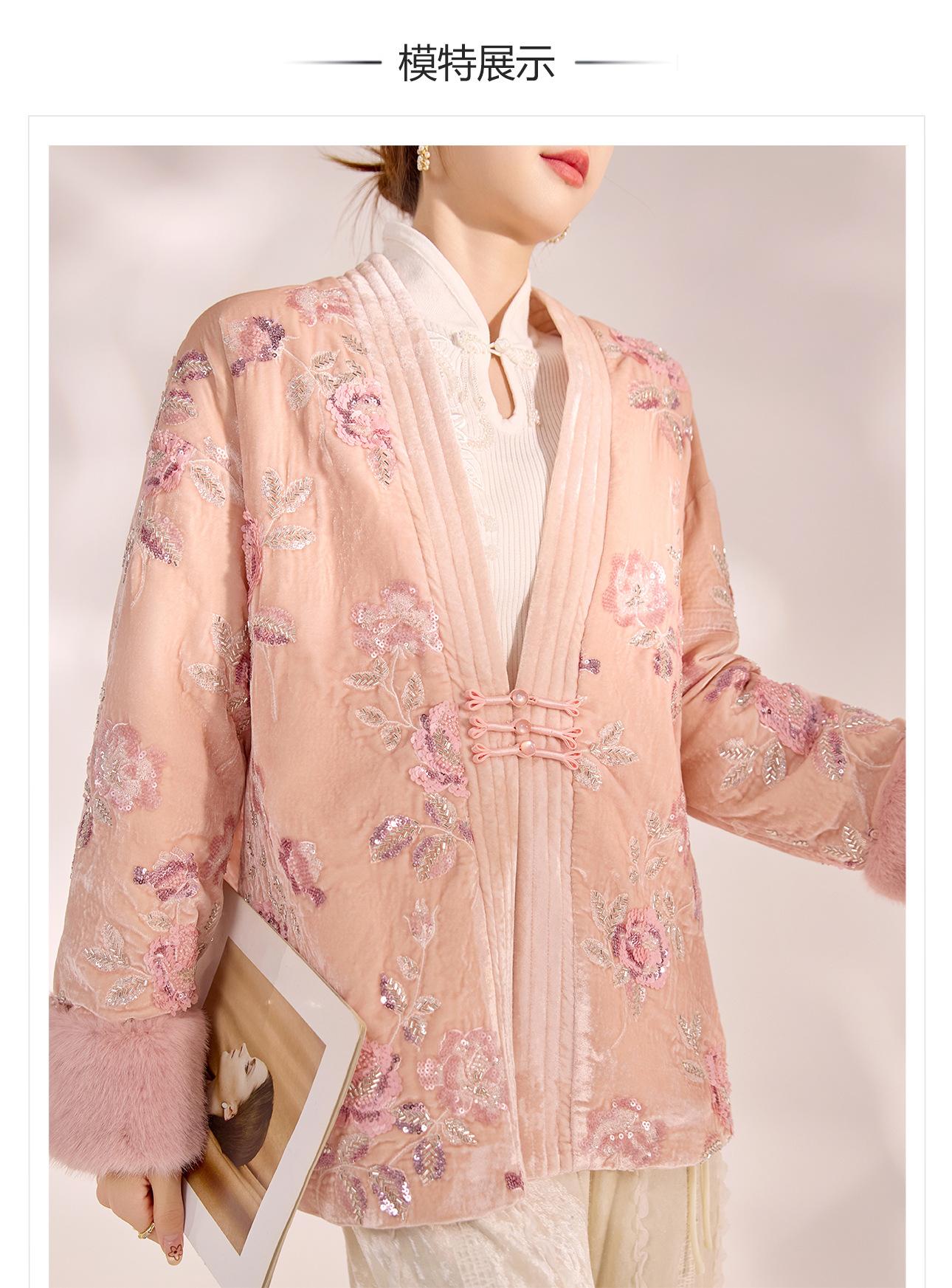Chaqueta de invierno nueva, elegante y elegante, con bordado de lentejuelas y algodón acolchado, para mujer, con puños y costuras Maomao MX079
