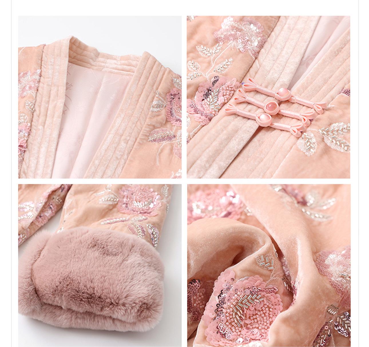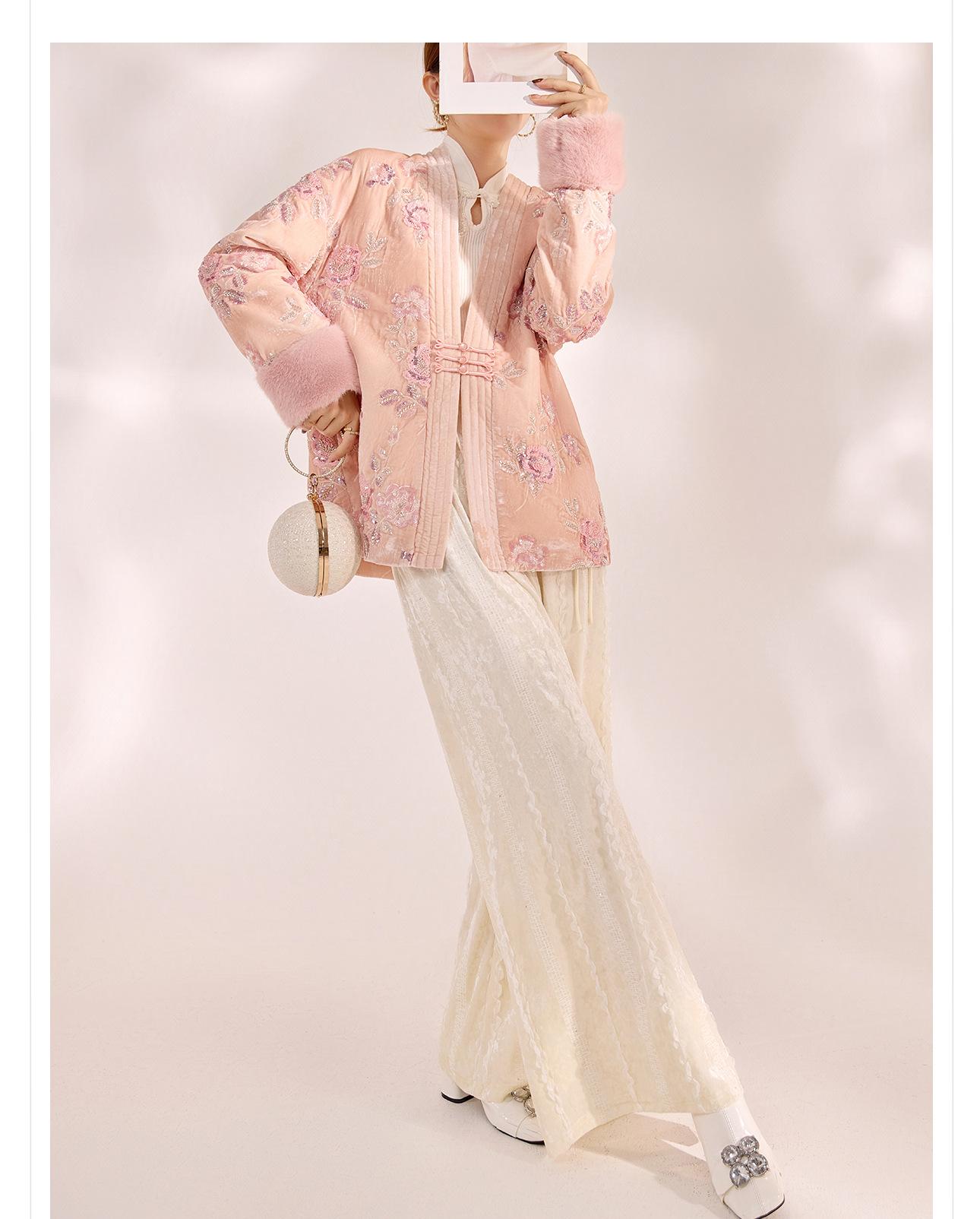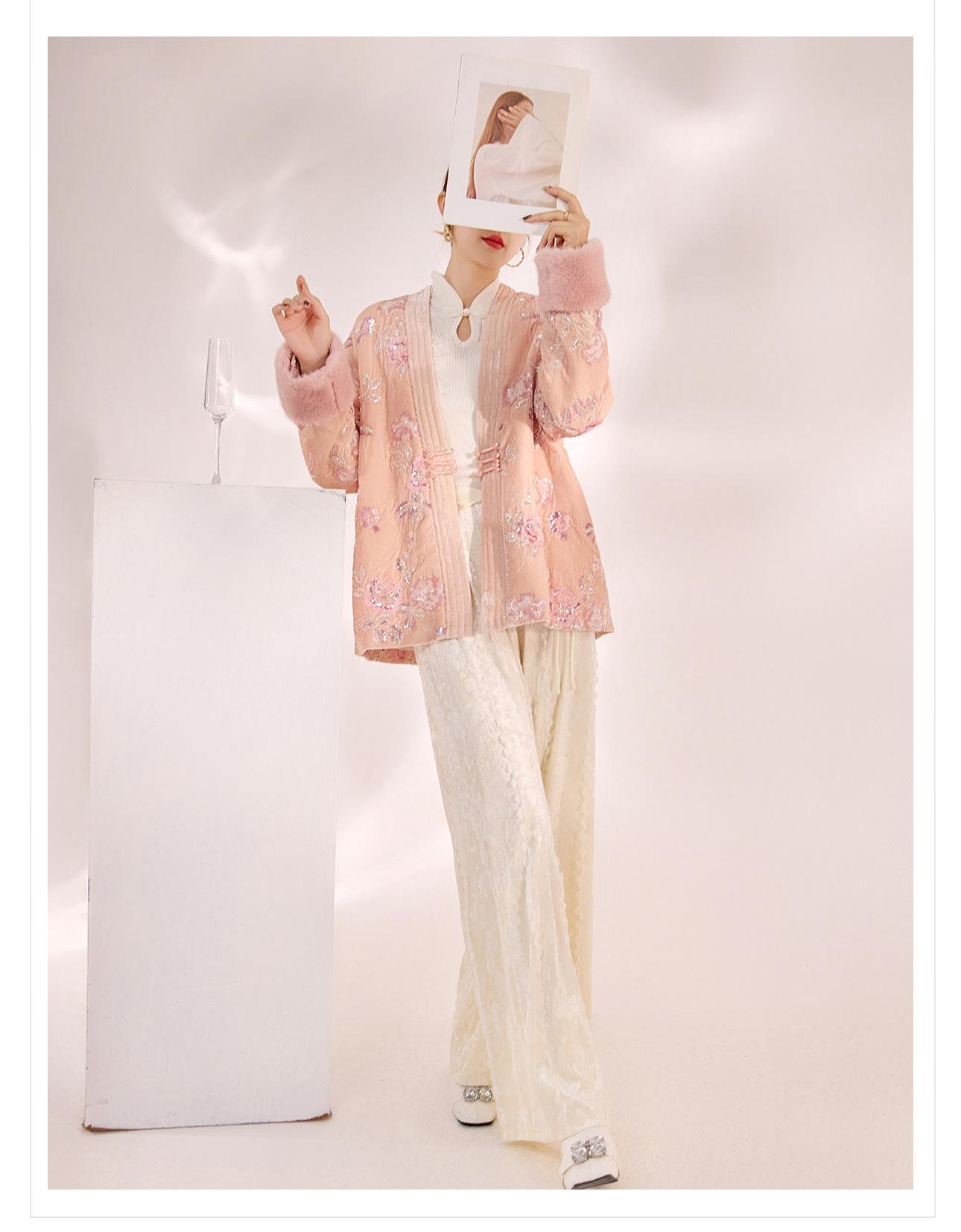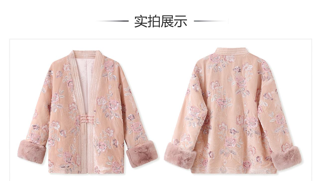 Chaqueta de invierno nueva, elegante y elegante, con bordado de lentejuelas y algodón acolchado, para mujer, con puños y costuras Maomao MX079