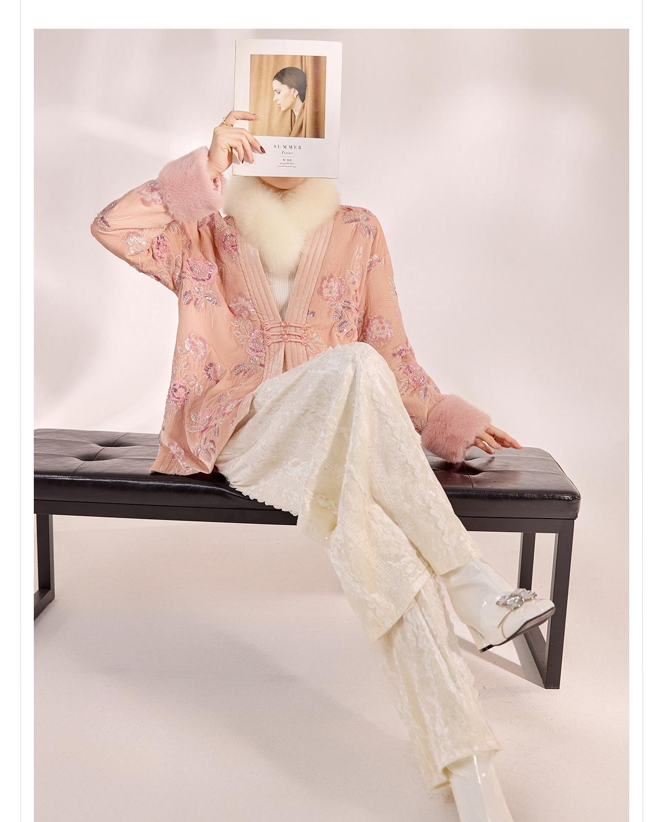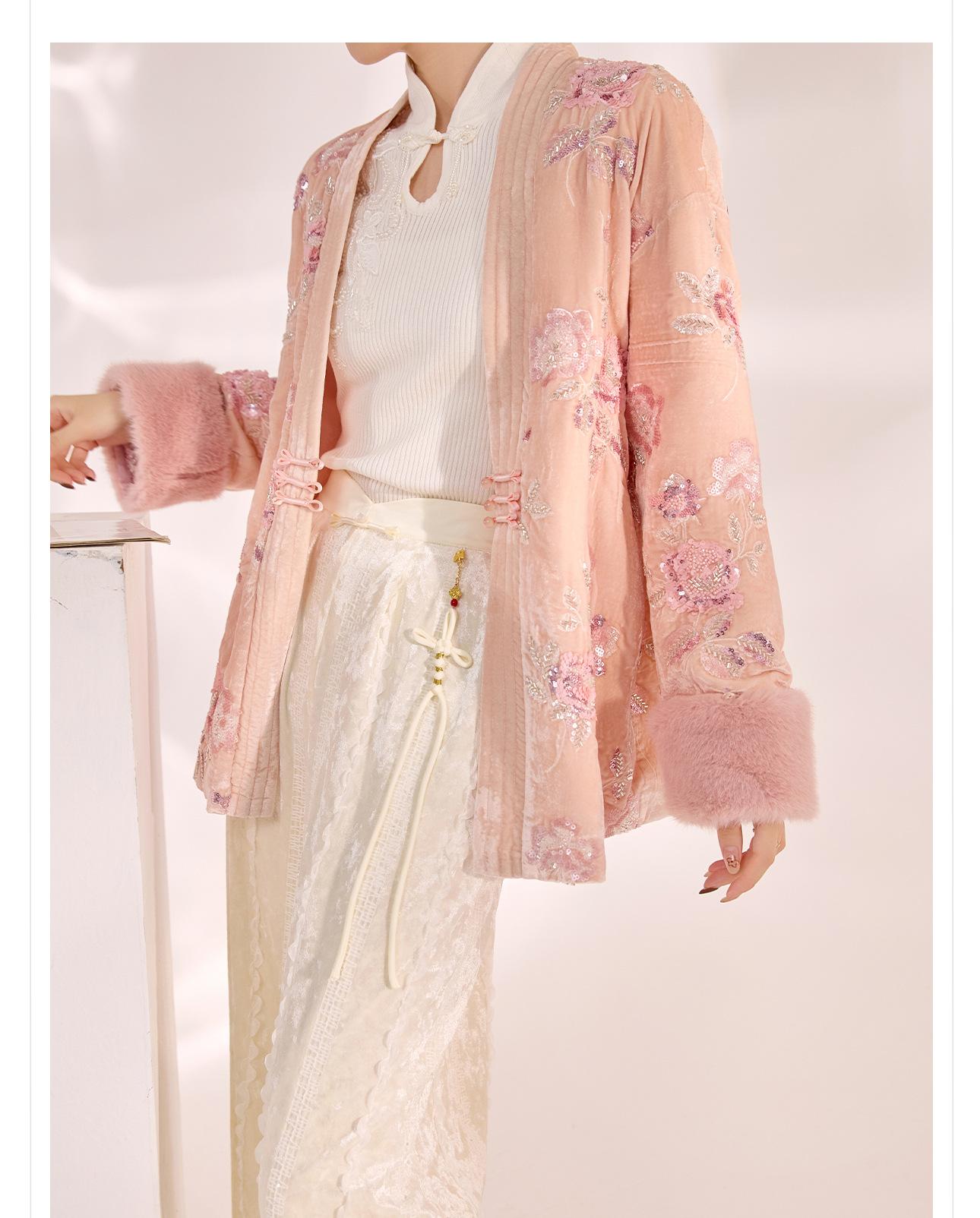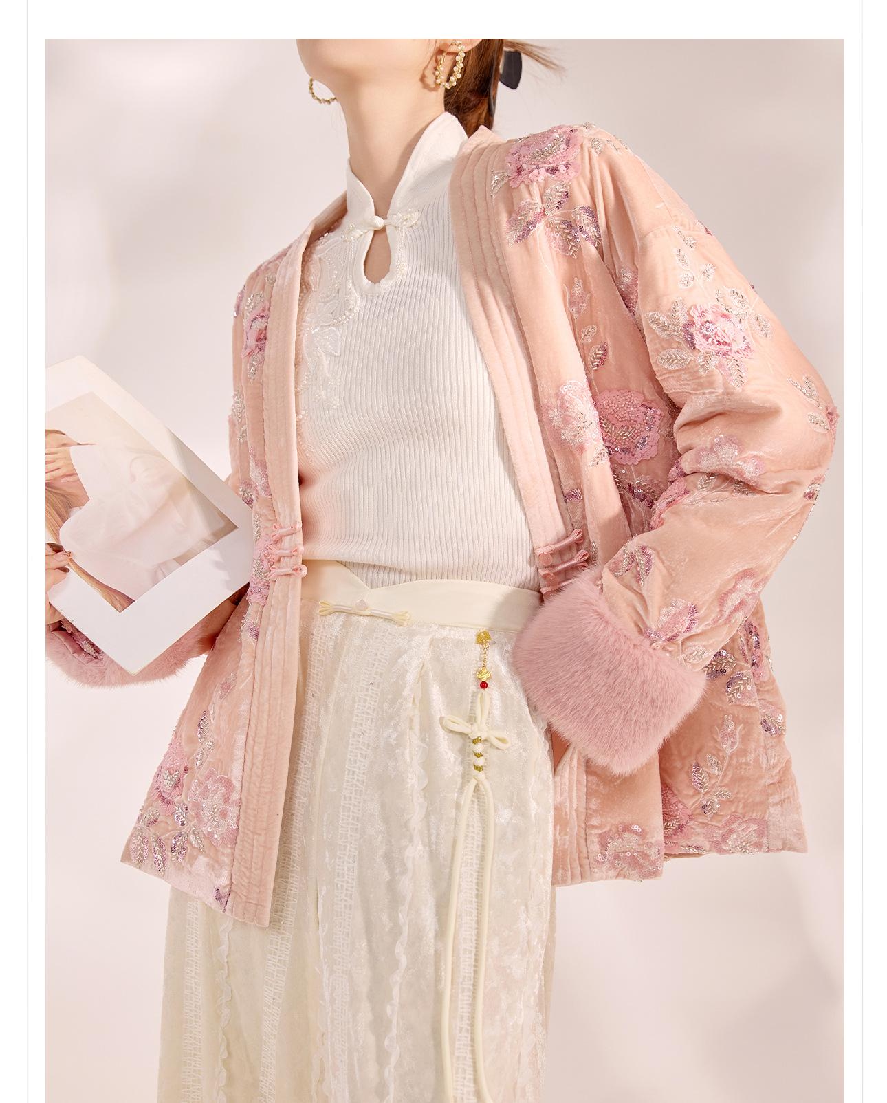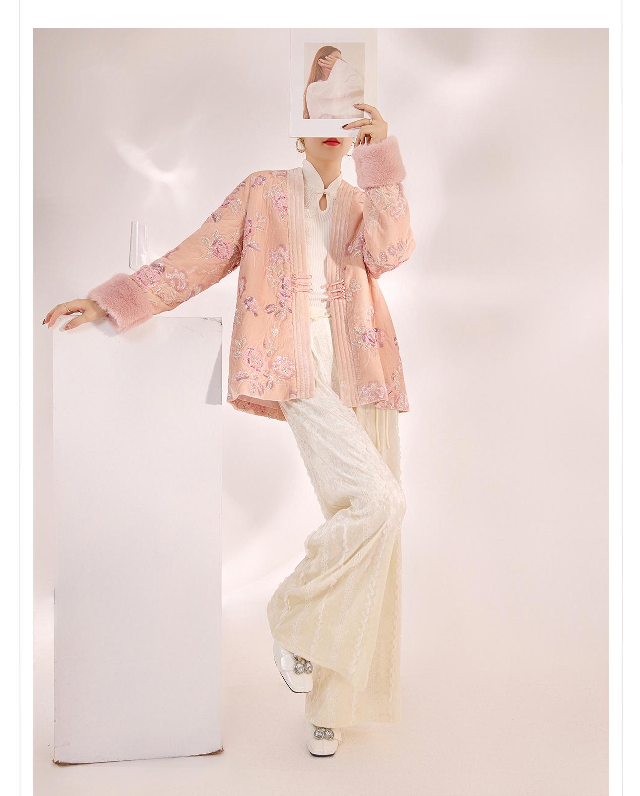Chaqueta de invierno nueva, elegante y elegante, con bordado de lentejuelas y algodón acolchado, para mujer, con puños y costuras Maomao MX079
