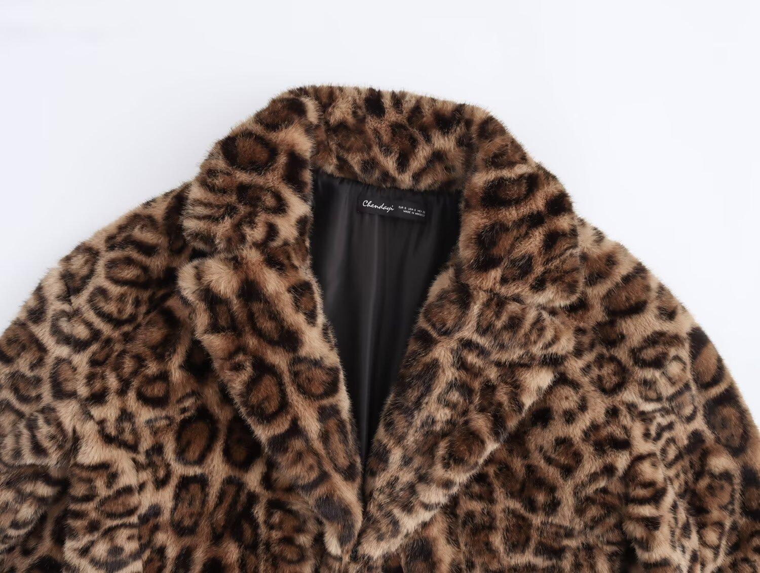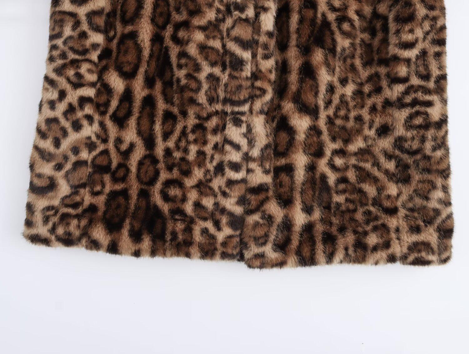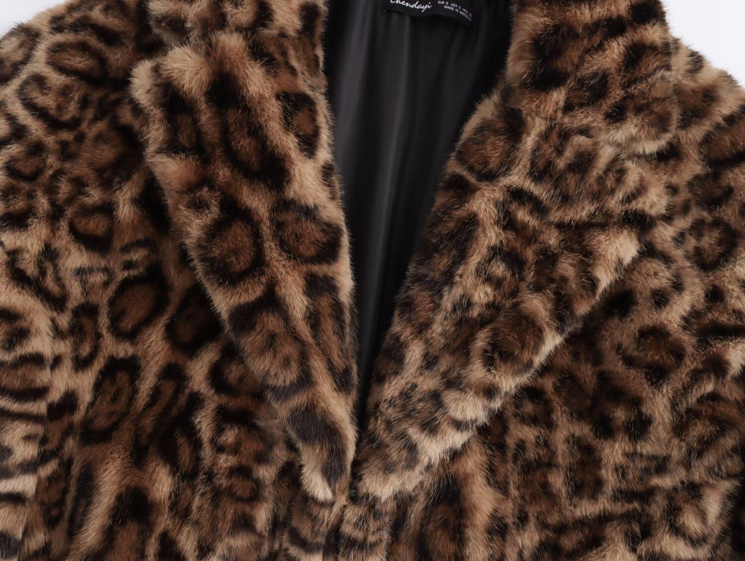 Abrigo de solapa de piel con estampado animal para mujer, otoño e invierno 2024, comercio exterior transfronterizo de Amazon, Europa y América