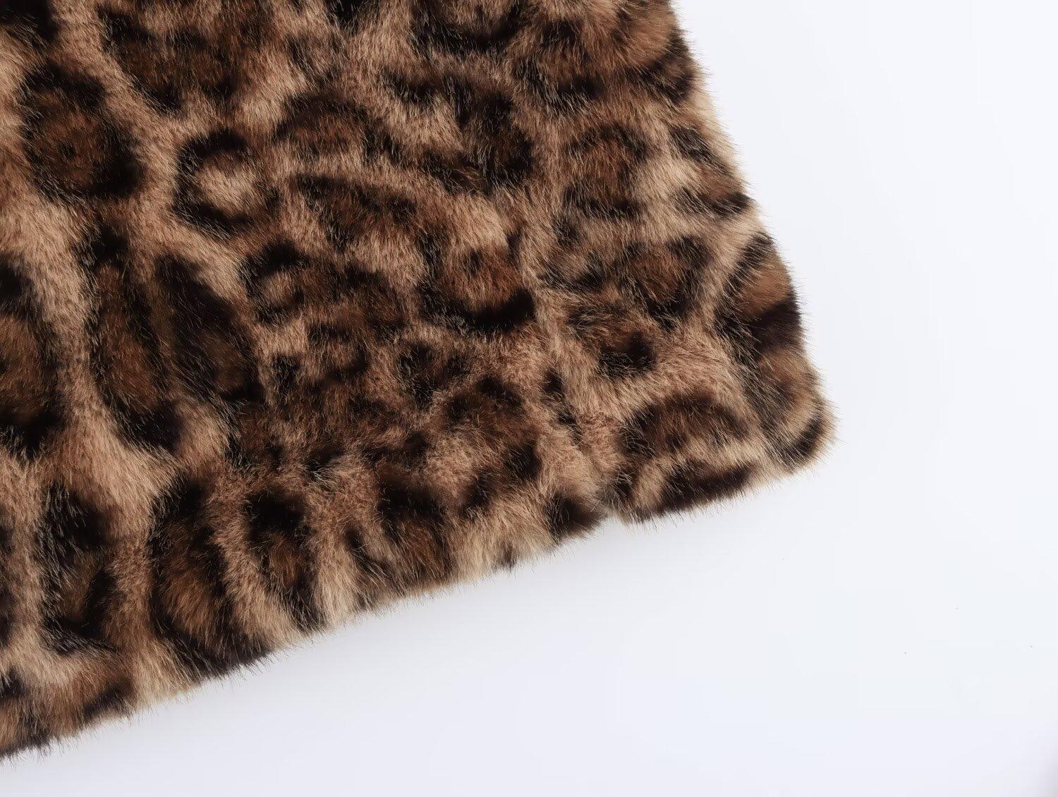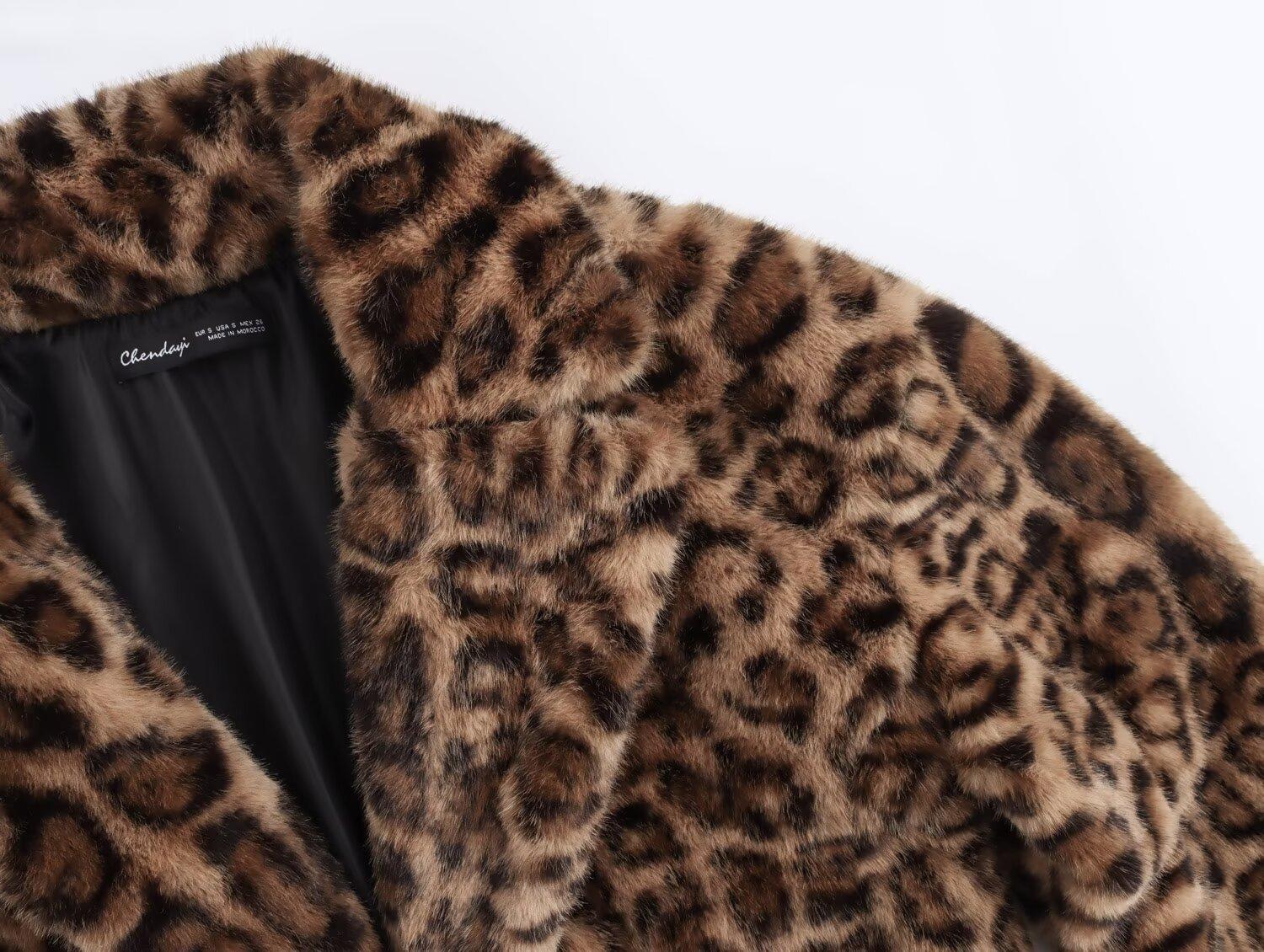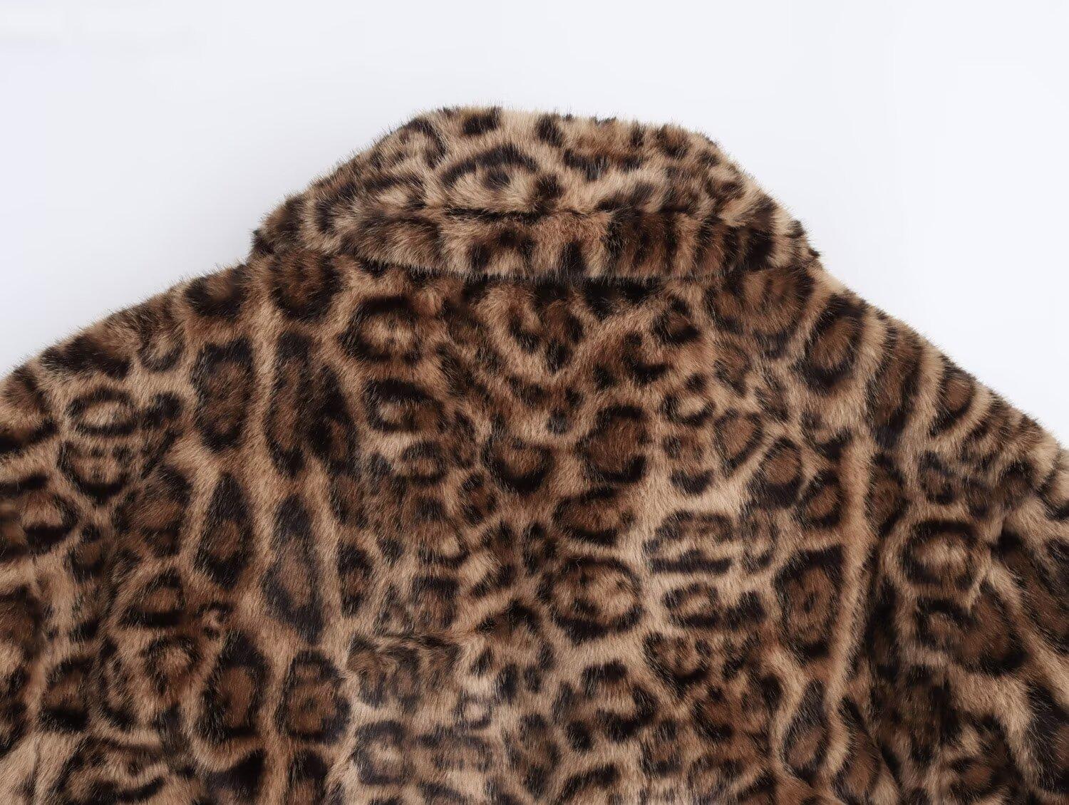 Abrigo de solapa de piel con estampado animal para mujer, otoño e invierno 2024, comercio exterior transfronterizo de Amazon, Europa y América