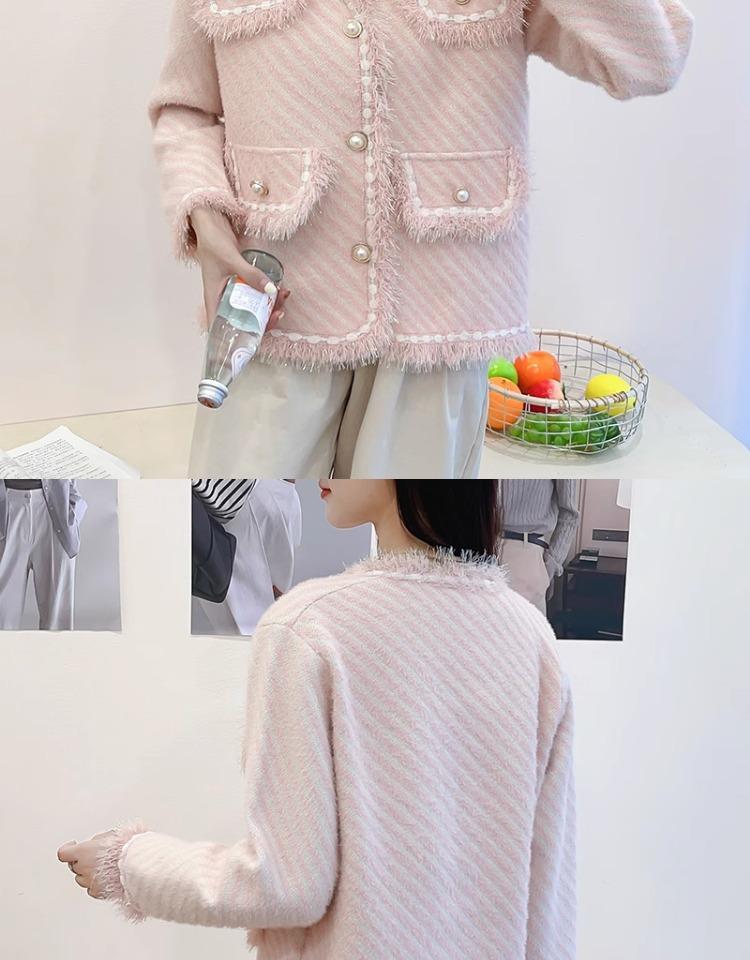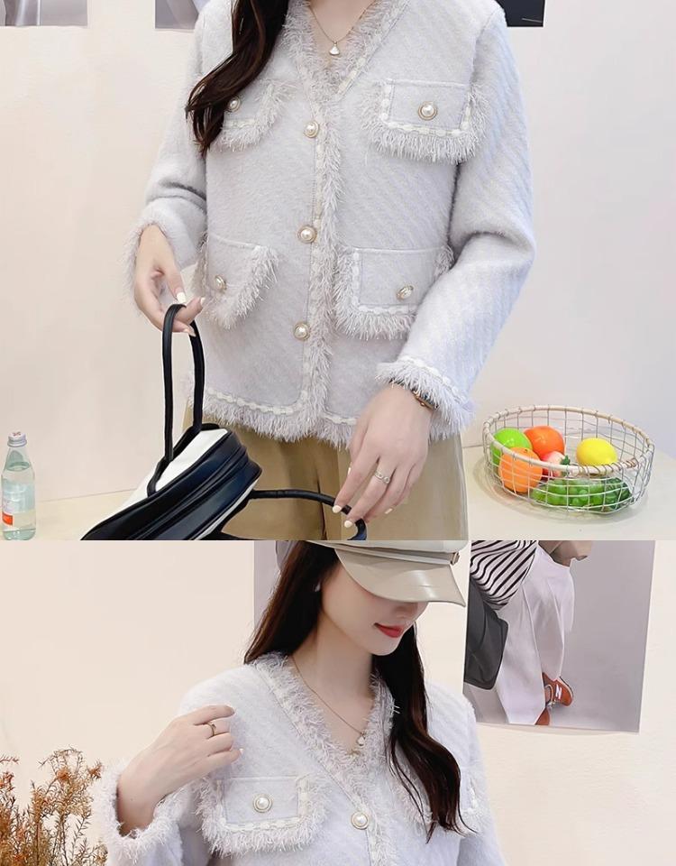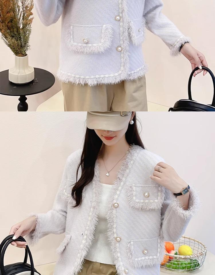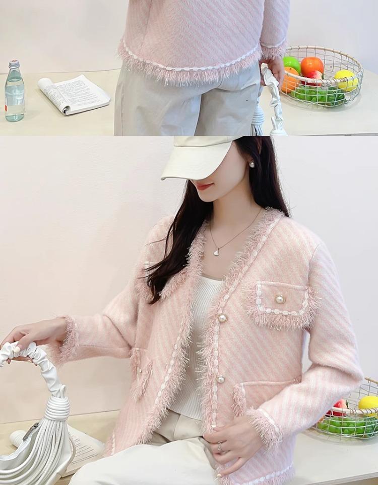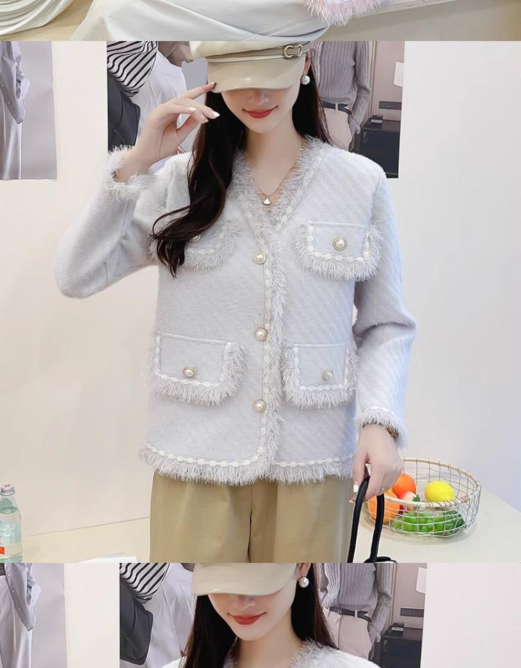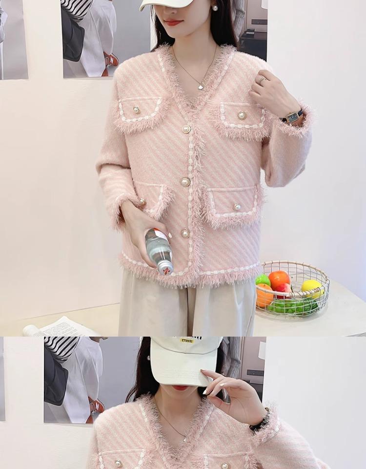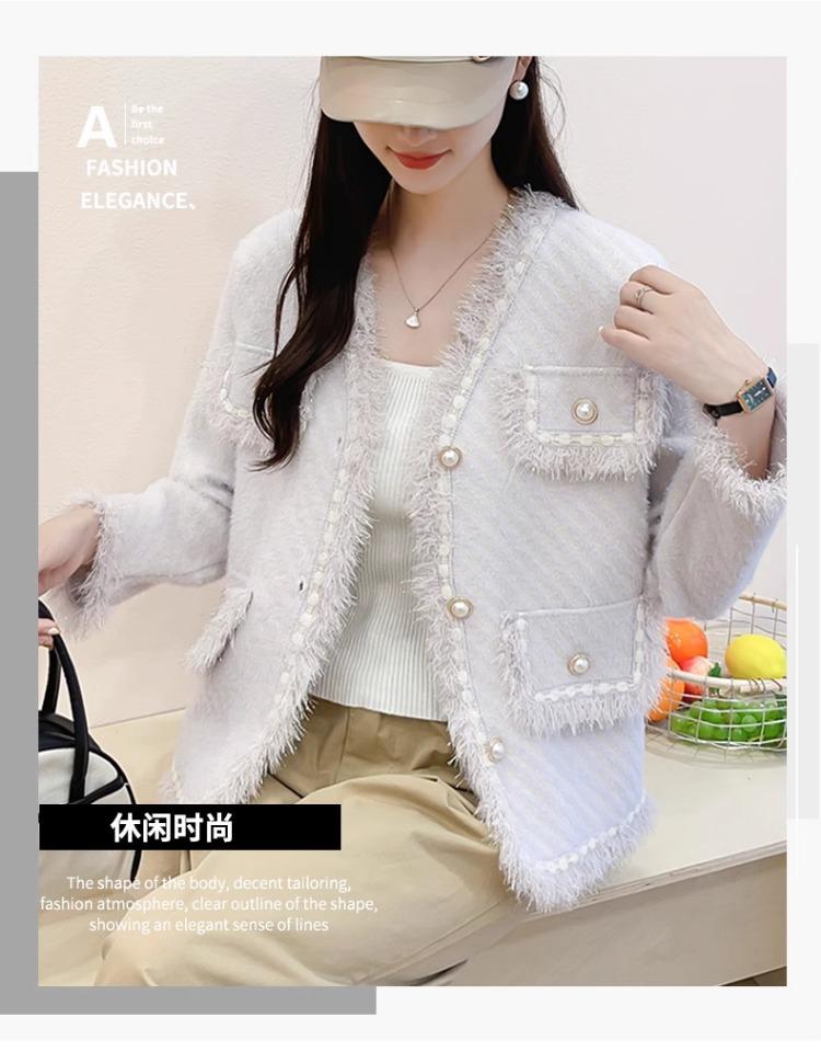 Cárdigan de punto de terciopelo de visón, abrigo de suéter para mujer, otoño e invierno, nuevo estilo suave con borlas, top exterior corto y elegante