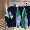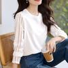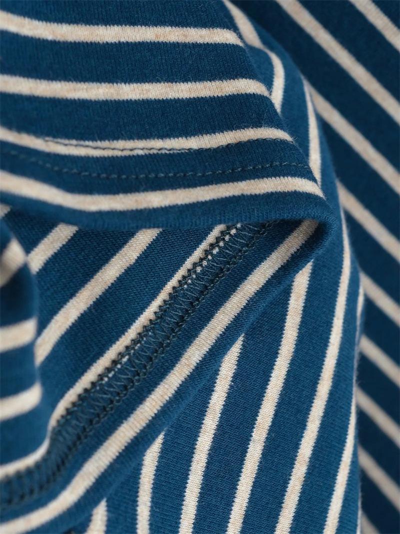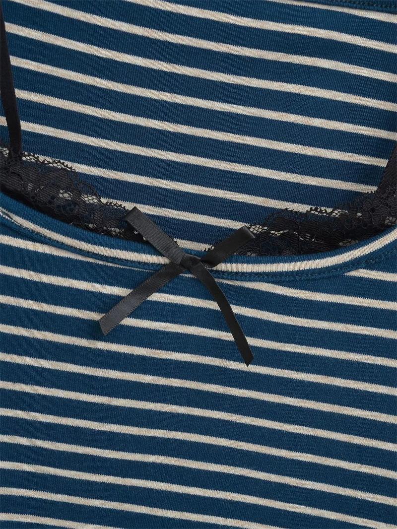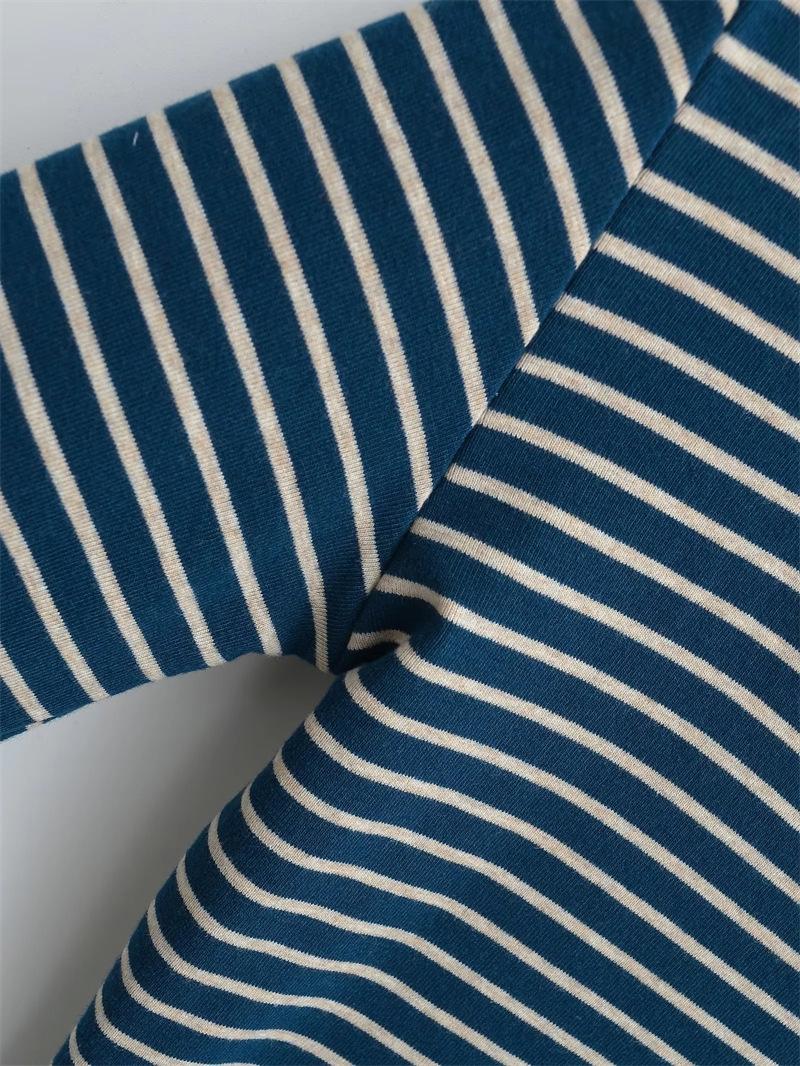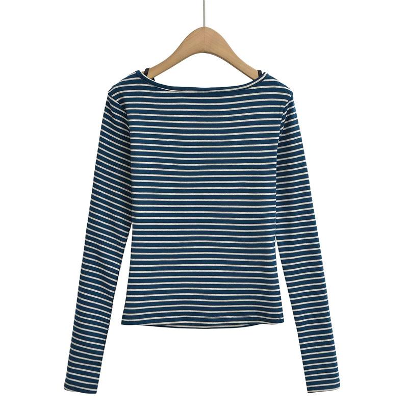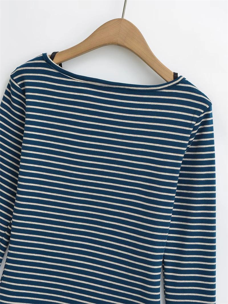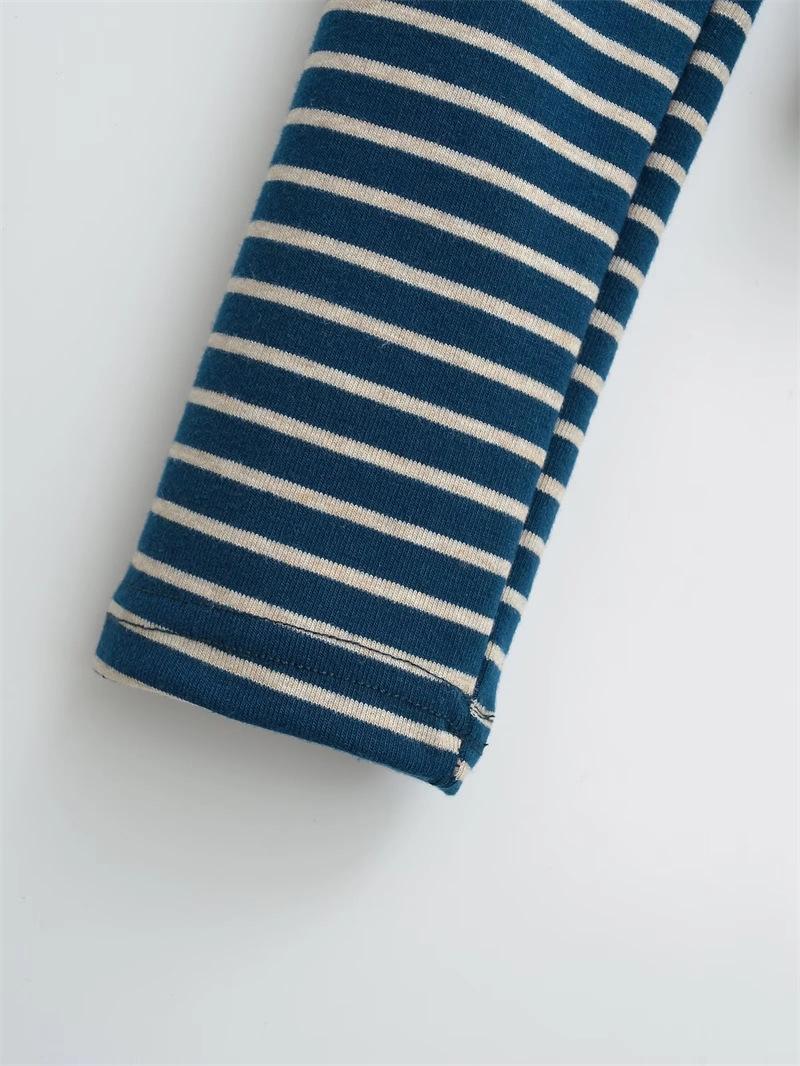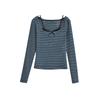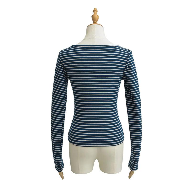 Camiseta de manga larga de dos piezas con diseño de nicho, estilo americano, con costuras de encaje retro, a rayas y corte entallado.